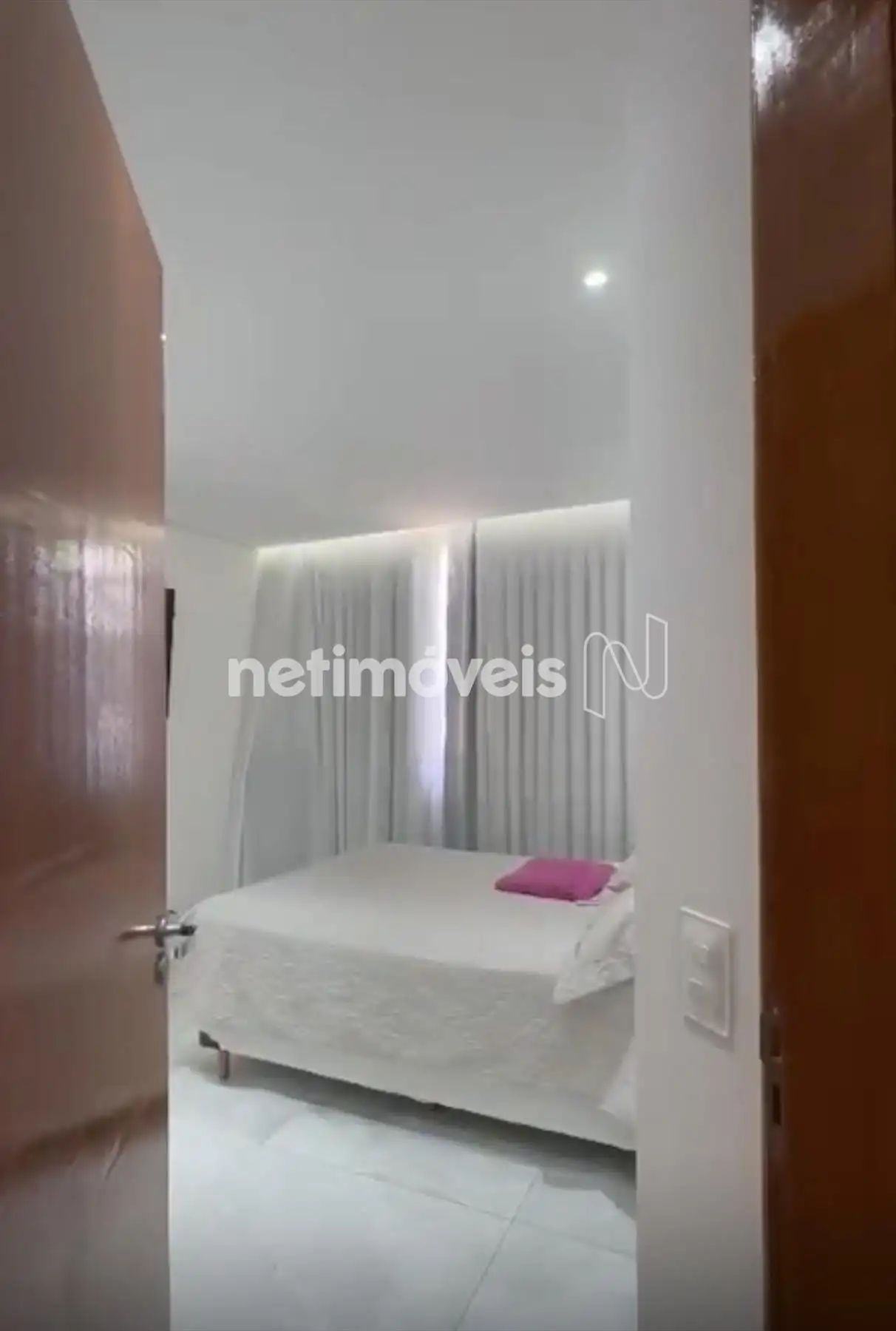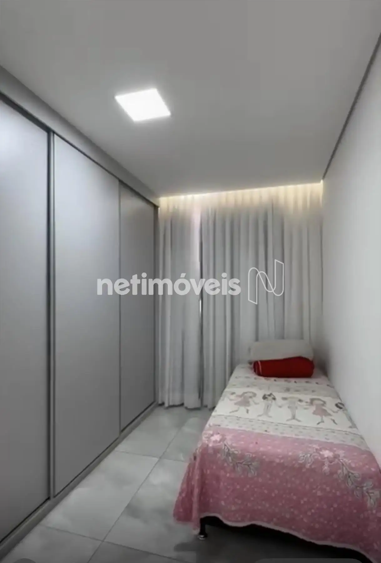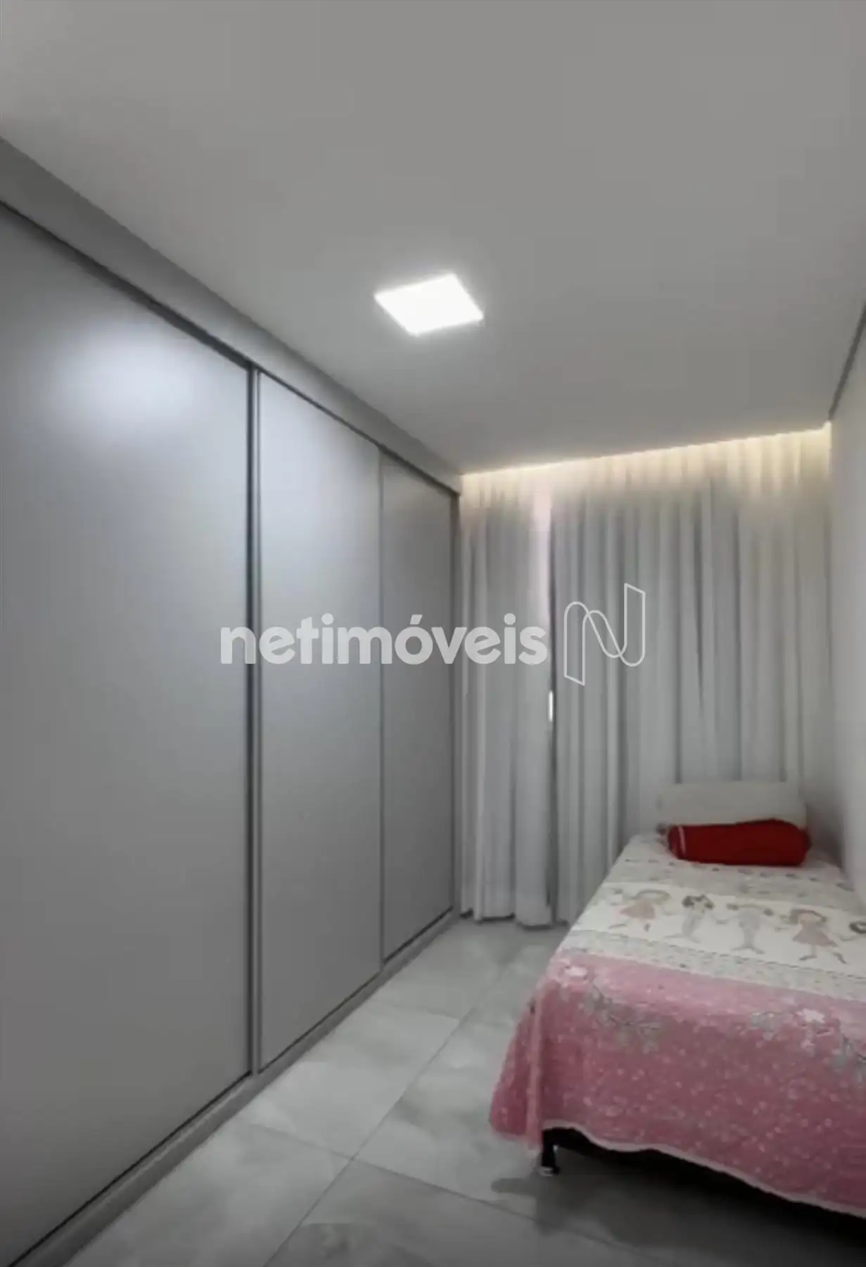 Dois quartos com piso em porcelanato, sendo um com armário;