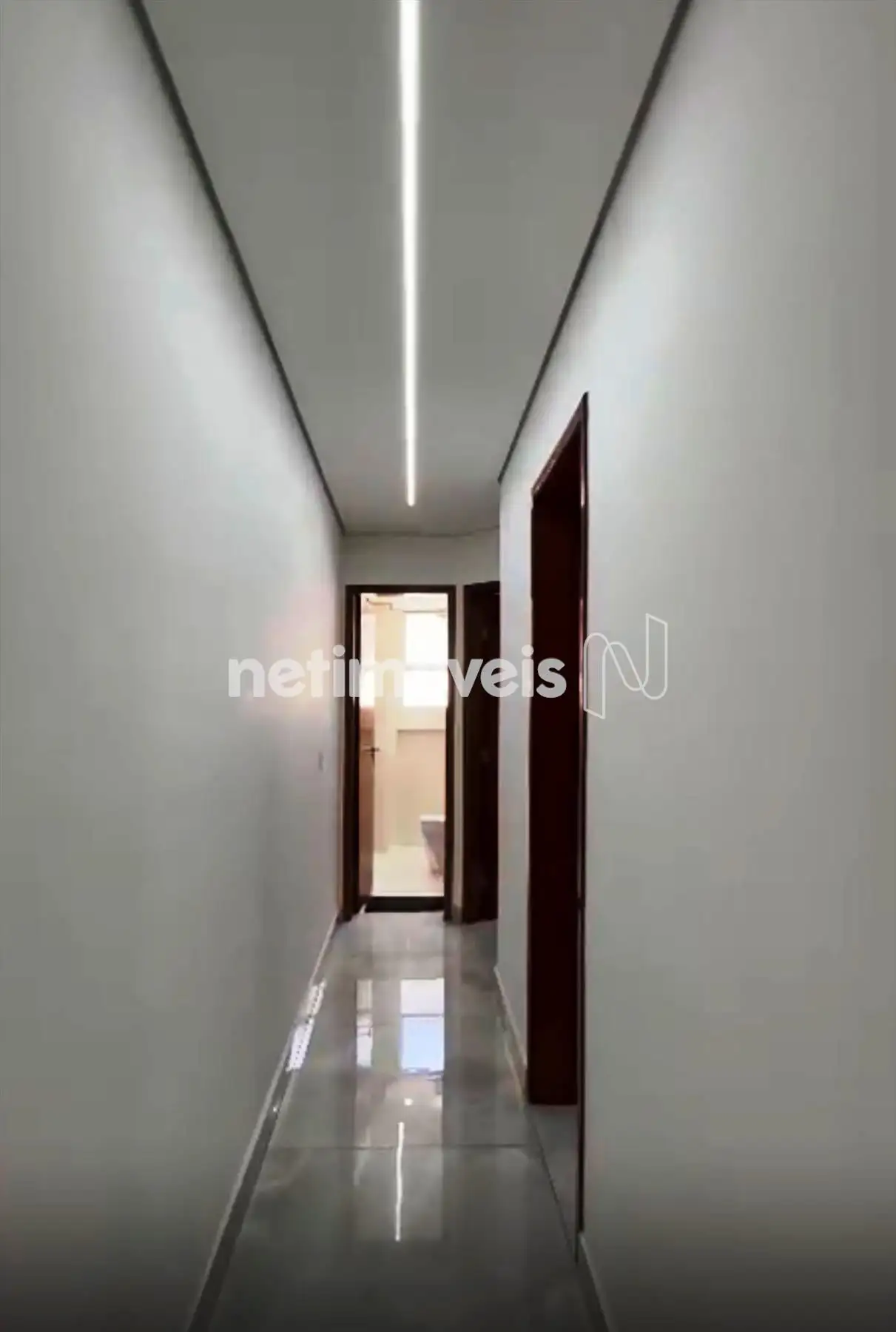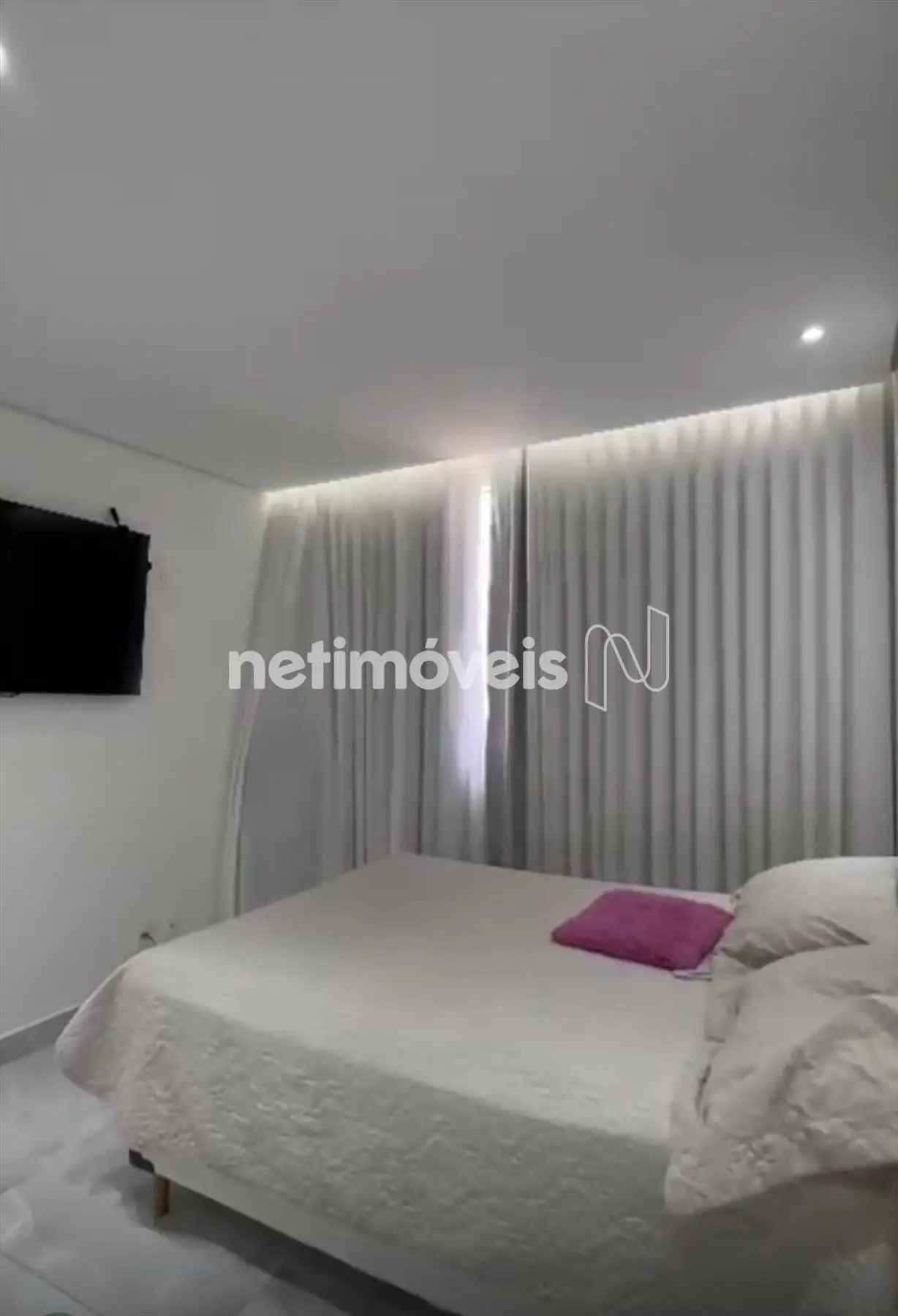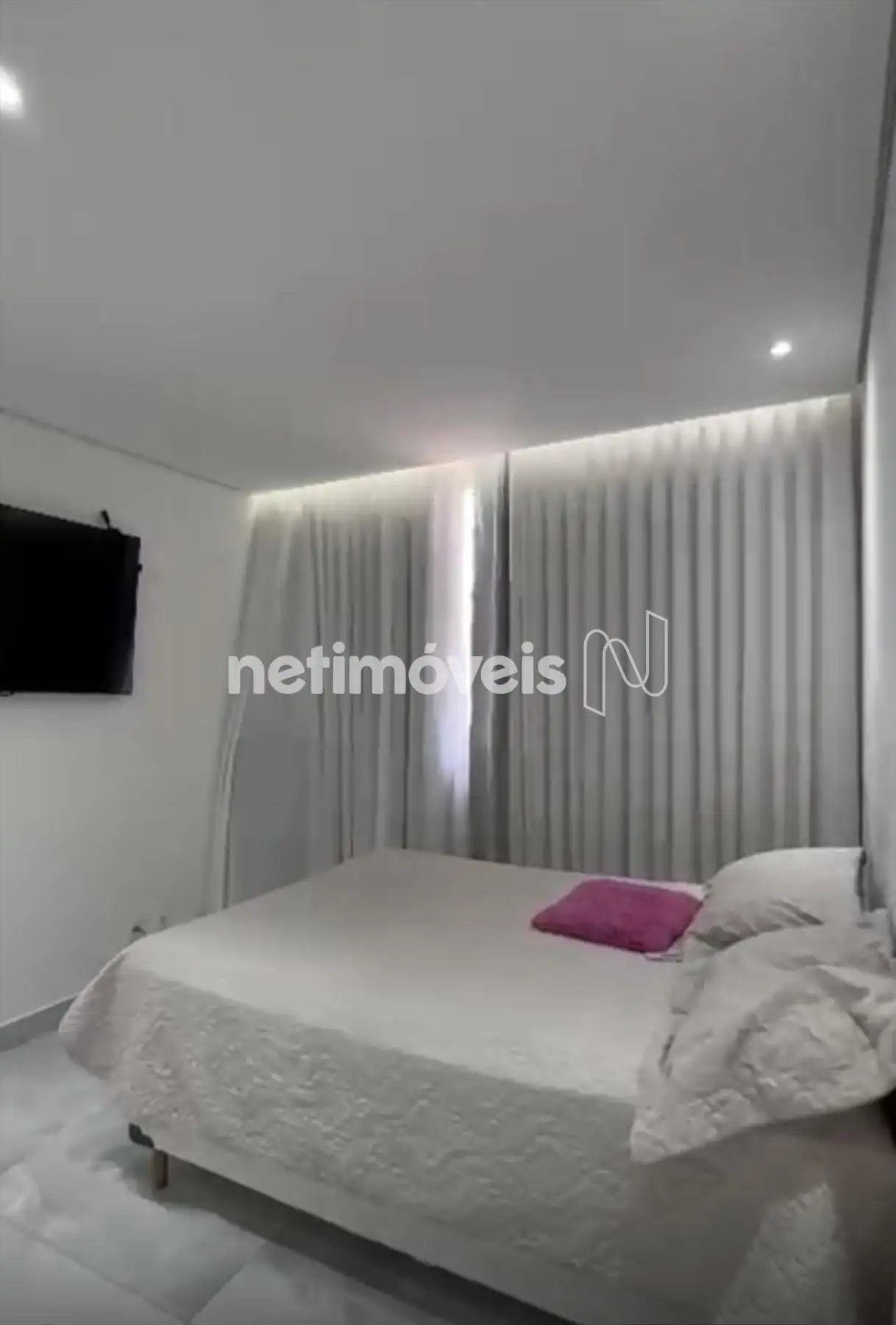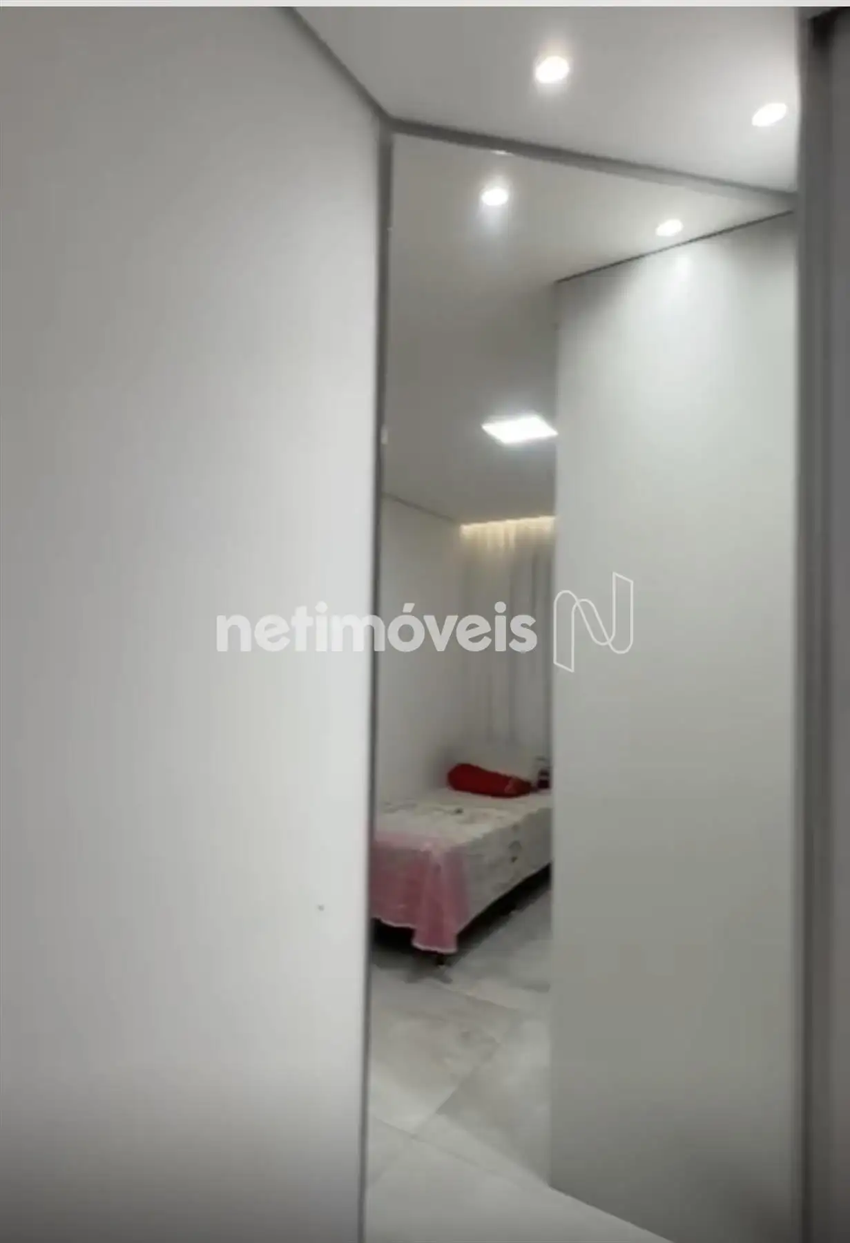 Dois quartos com piso em porcelanato, sendo um com armário;