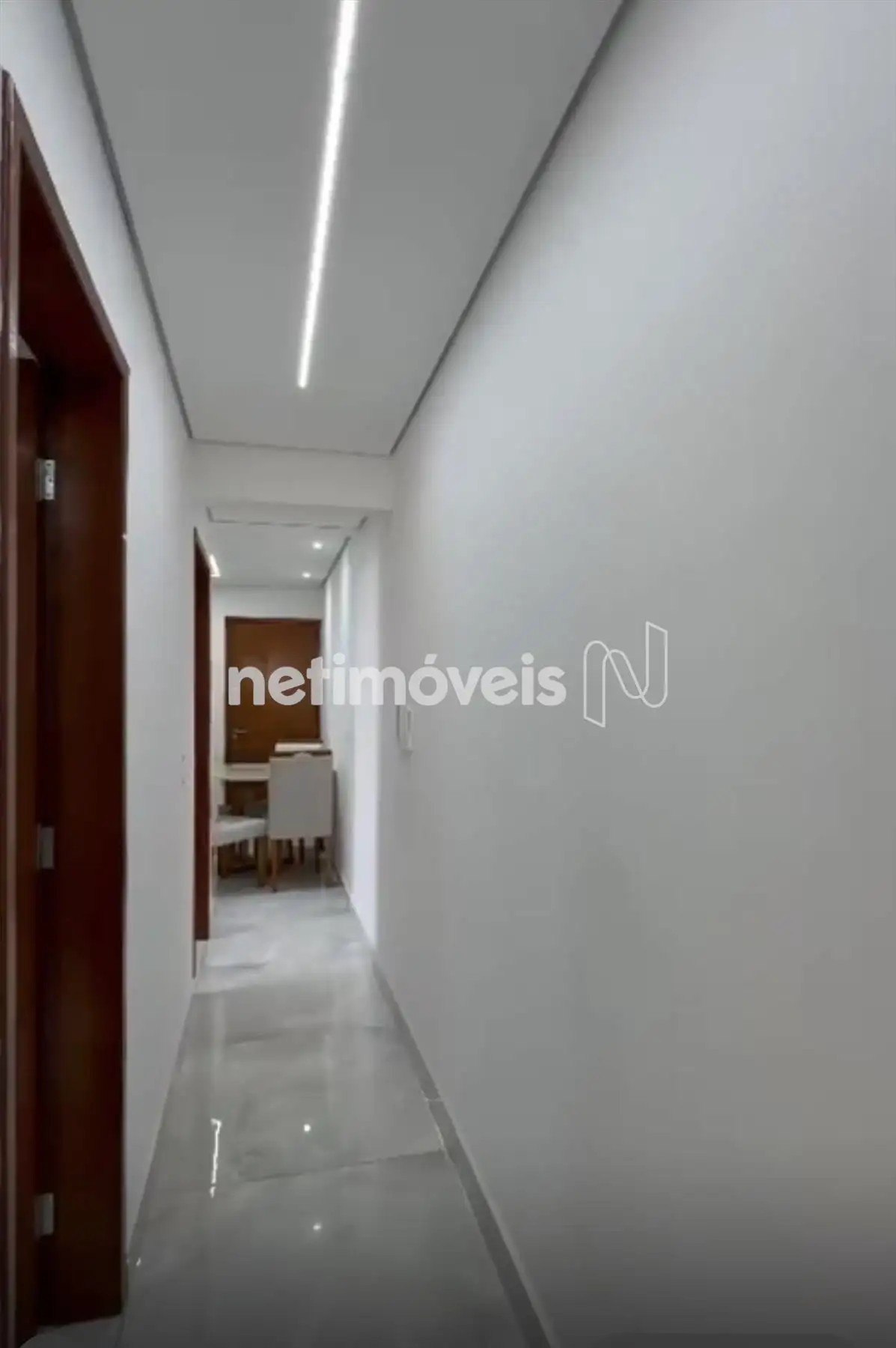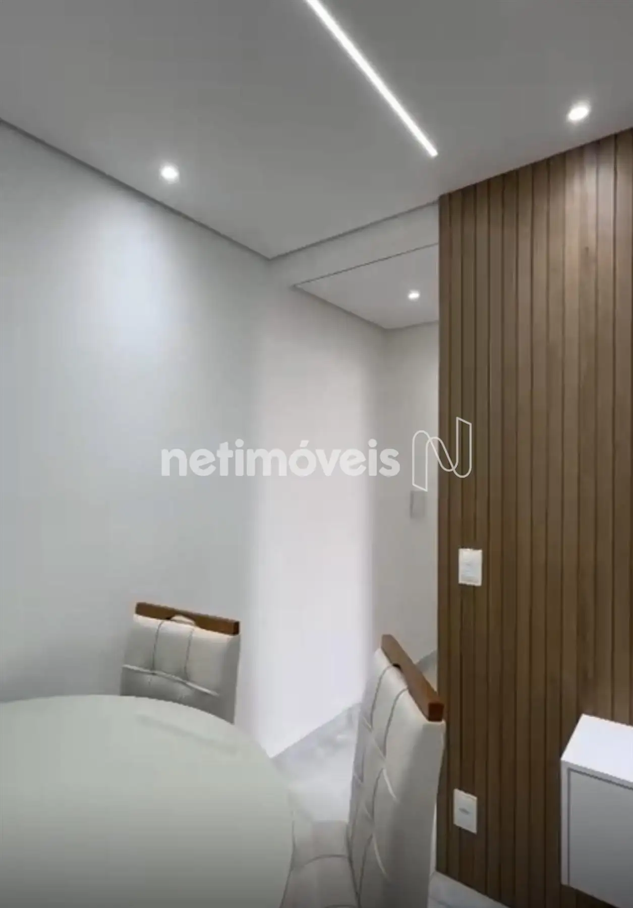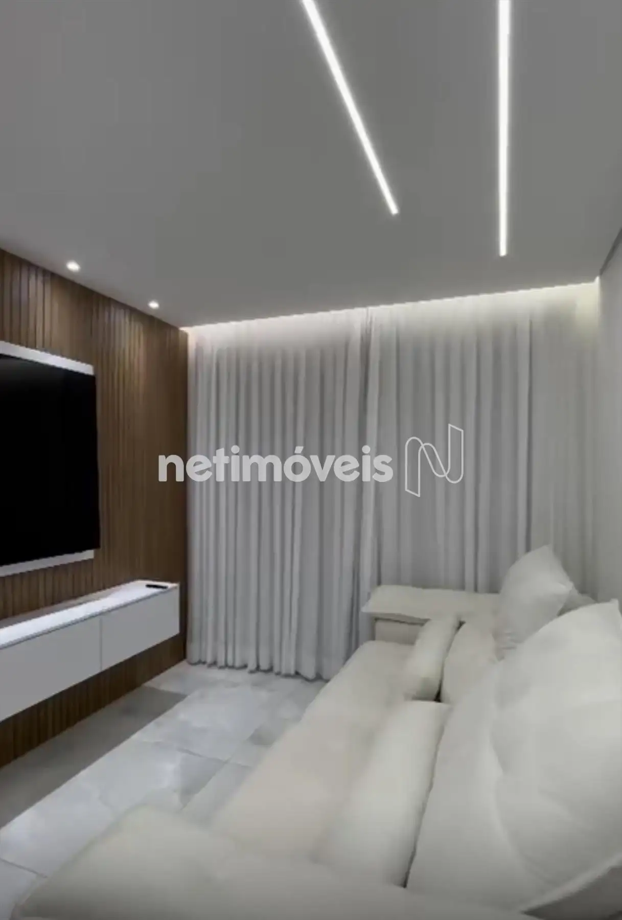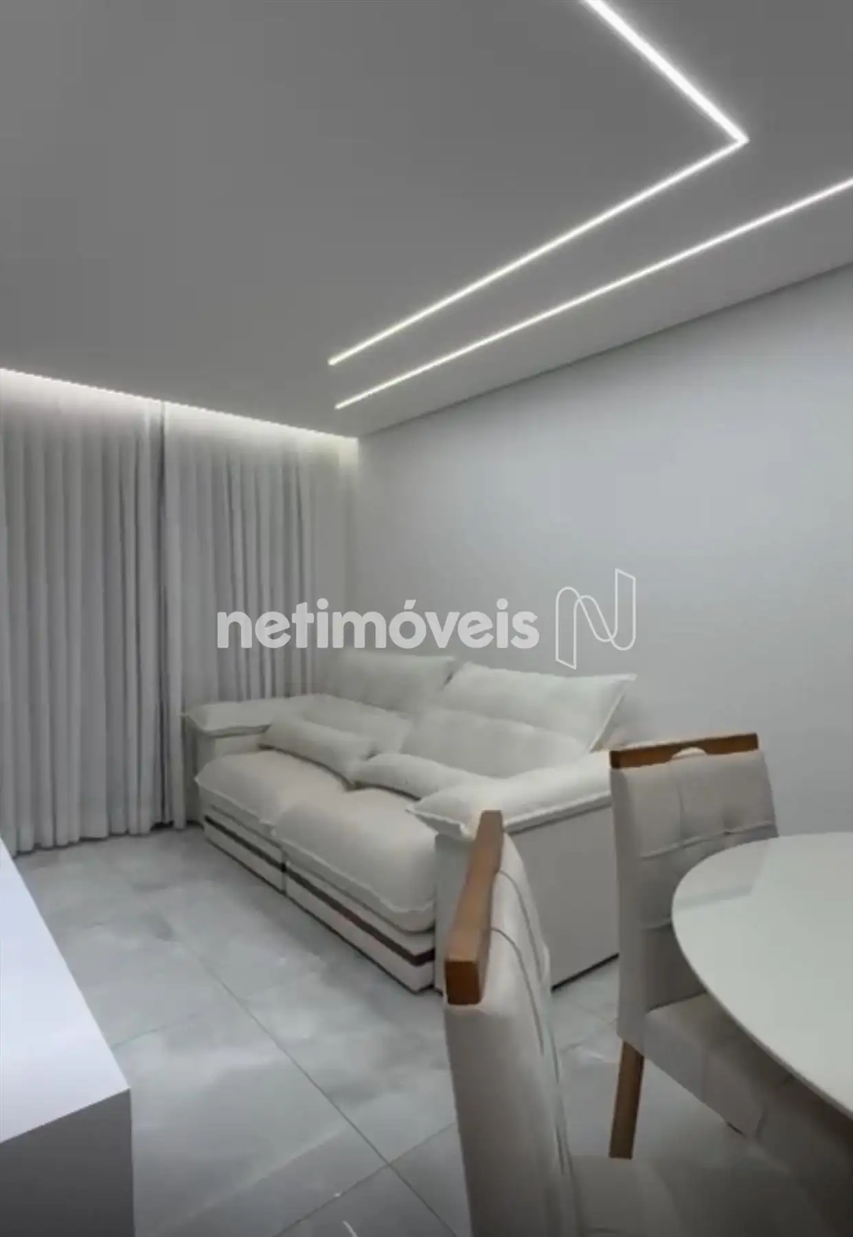 Sala para dois ambientes, com piso em porcelanato, teto com projeto luminotécnico;