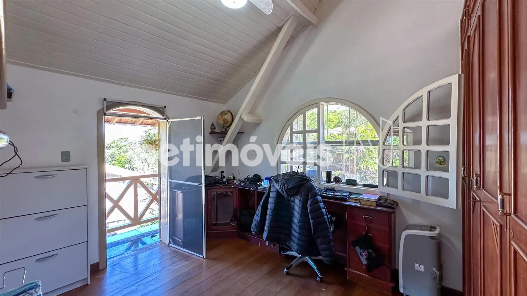 2º quarto: Quarto de solteiro c varanda, piso em tábua corrida,armários.