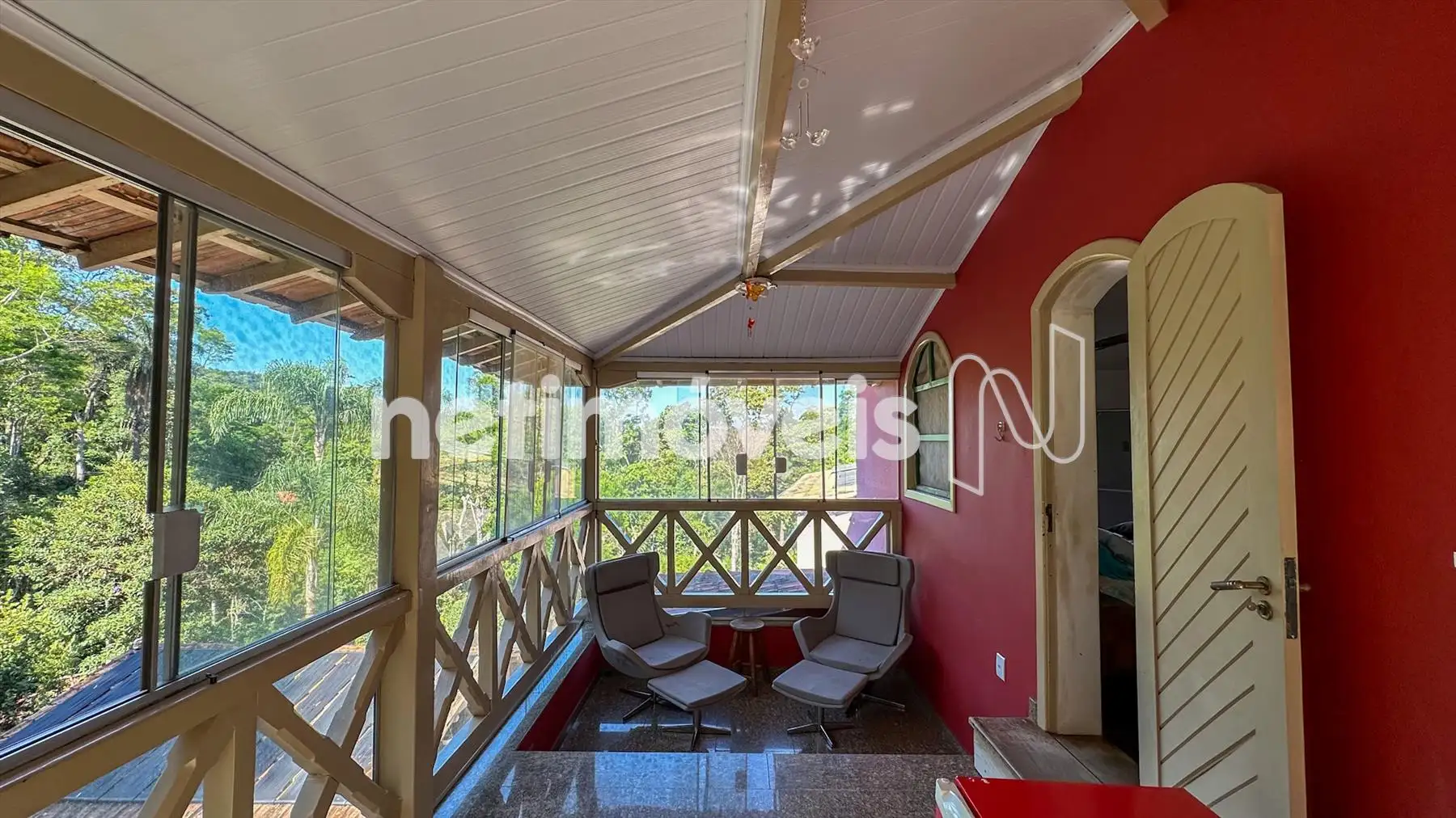 Sala colareira e varanda grande c vidro temperado, possuindo uma linda vista p o lazer e para a vegetação da região, tornando um ambiente muito agradável tanto nos dias frios, quarto nos dias quentes.