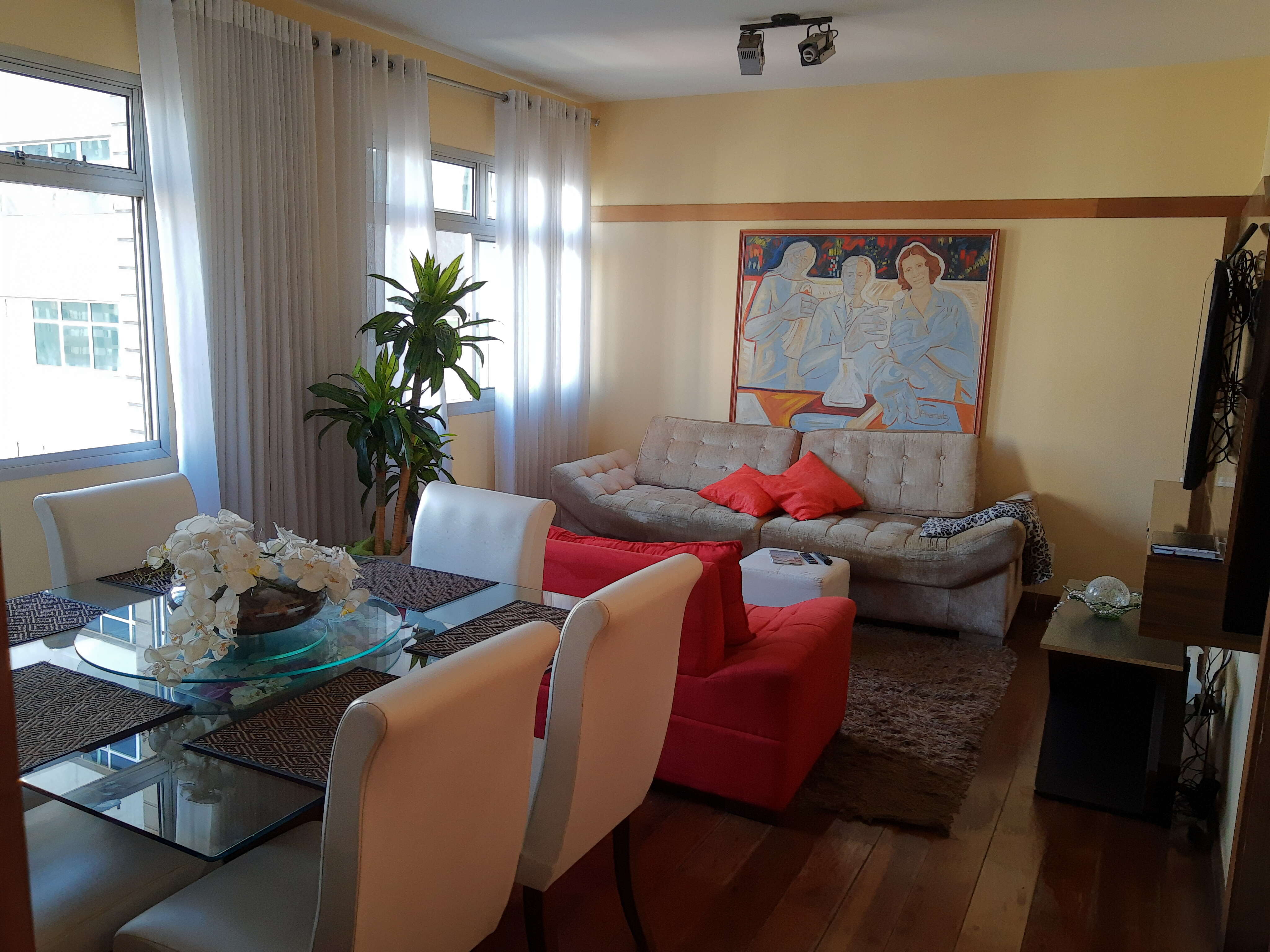 * Sala p/ 02 ambientes, piso em tábua corrida, 02 janelas p/ ventilação.