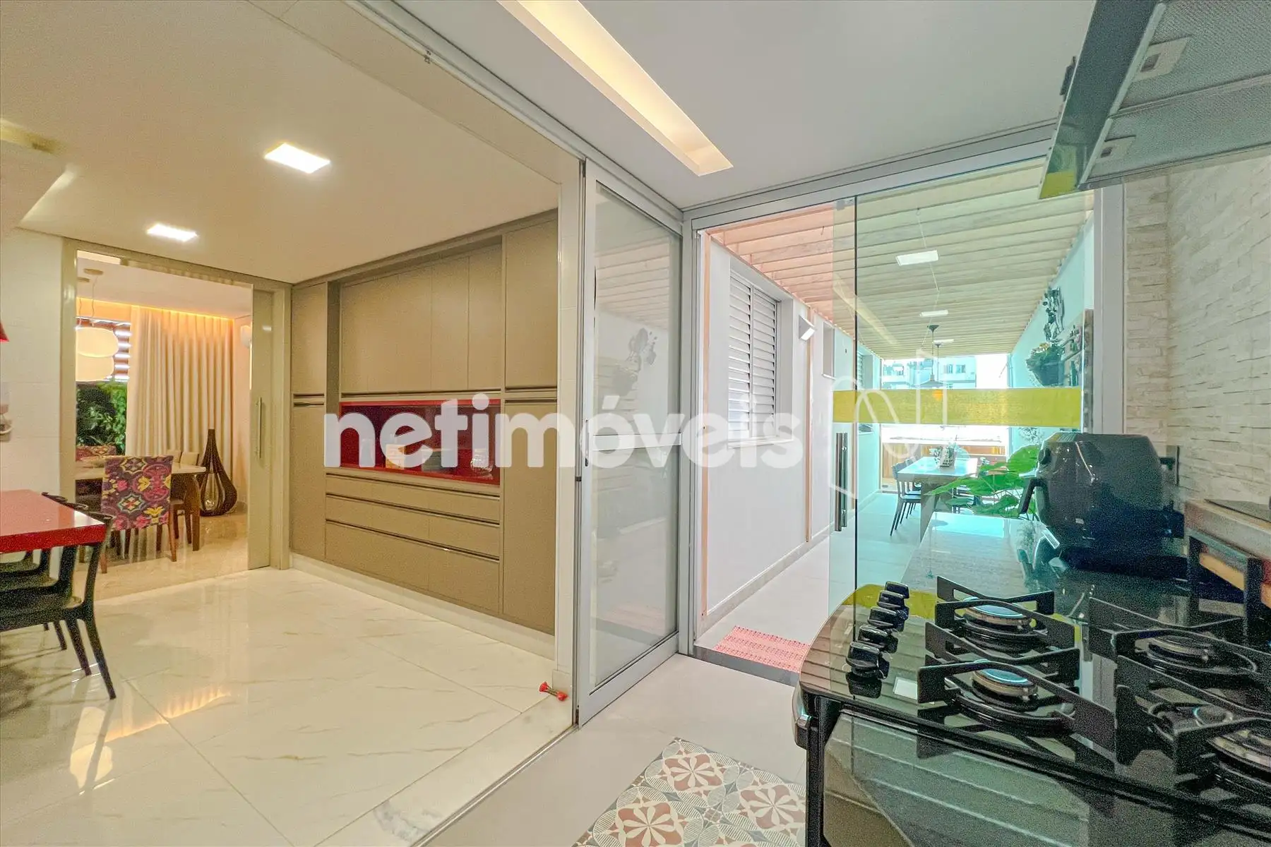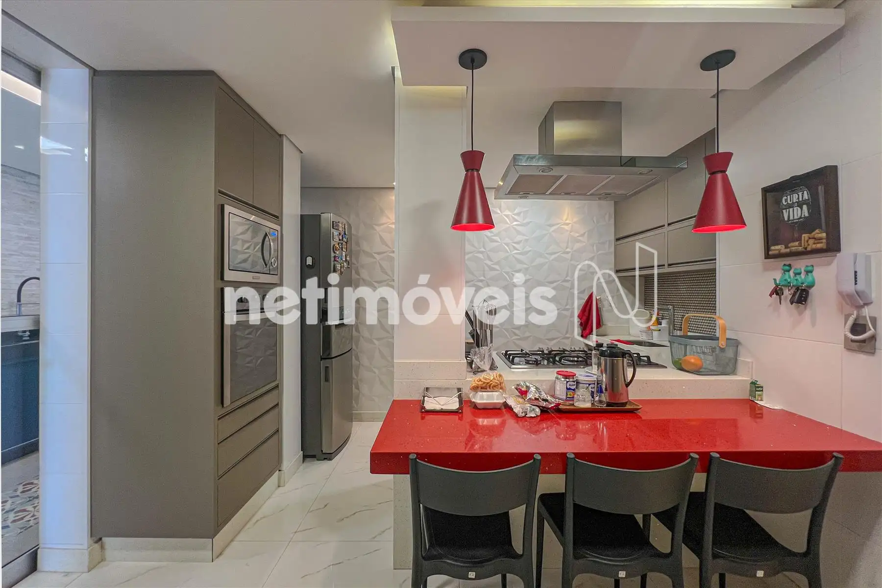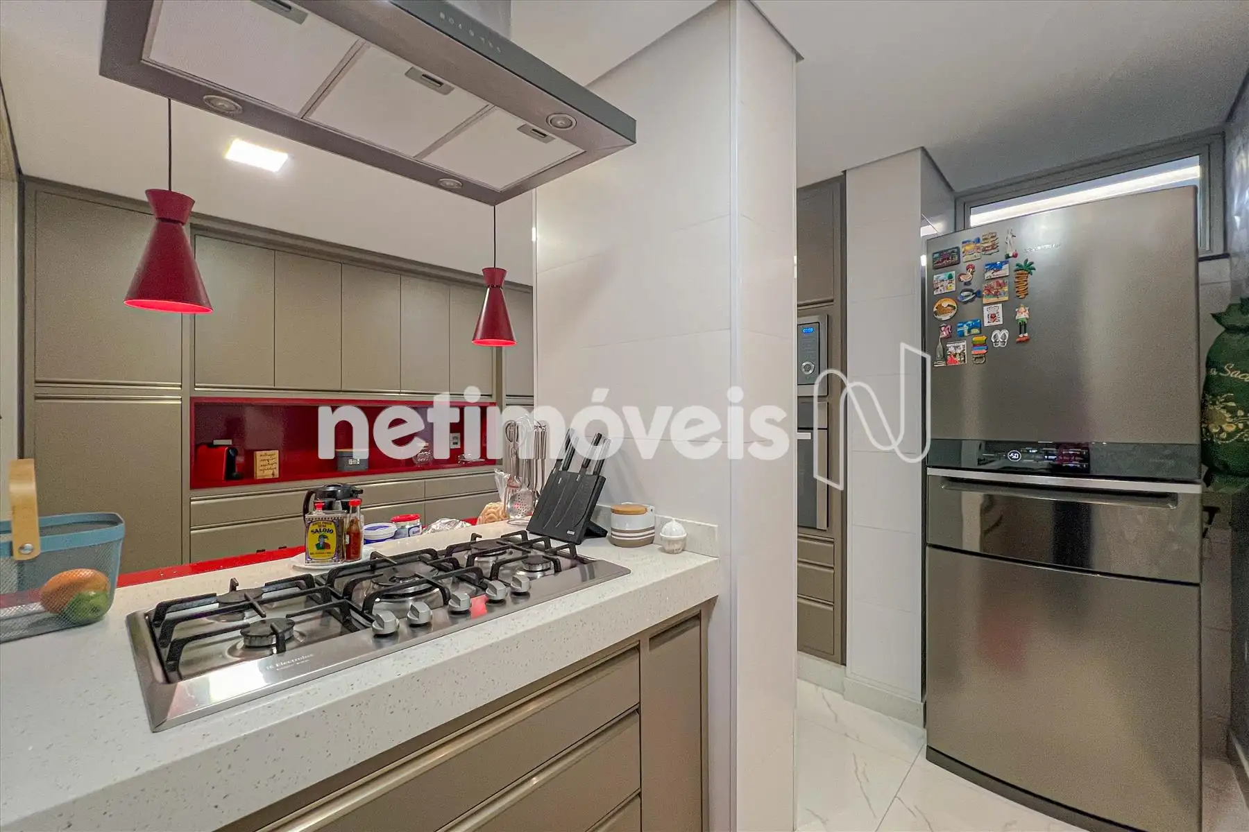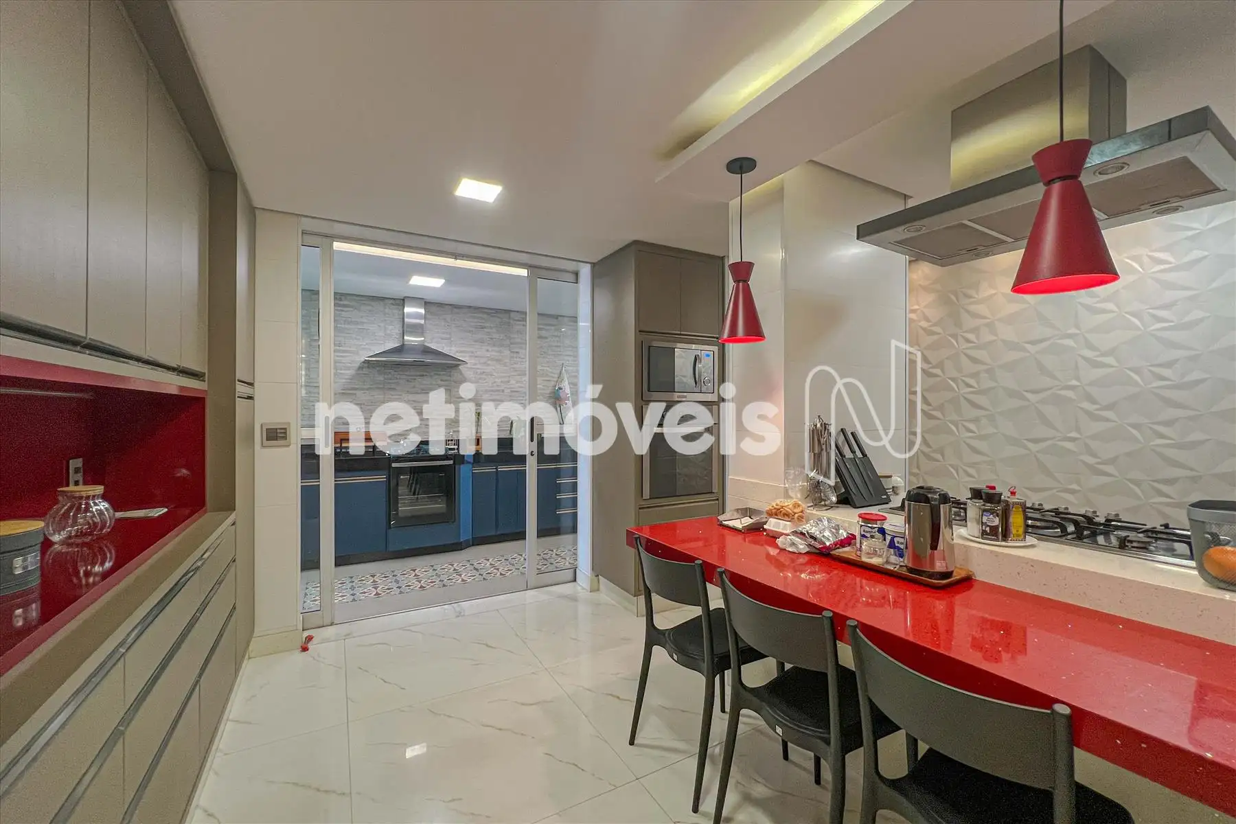 - Cozinha americana, rica em armários planejados, ilha com fogão cooktop, exaustor, forno, microondas;