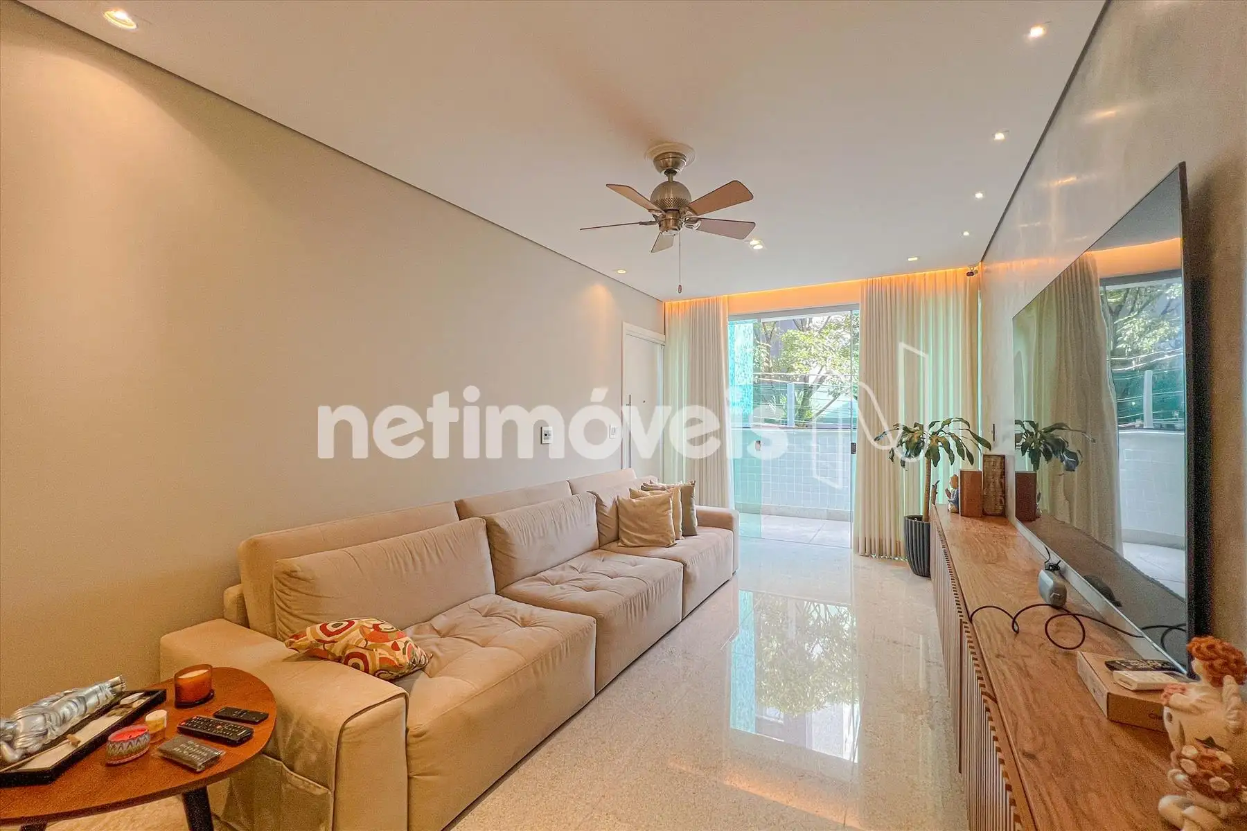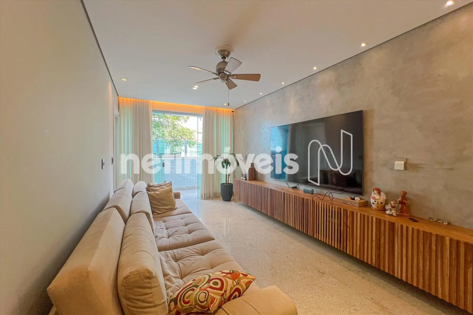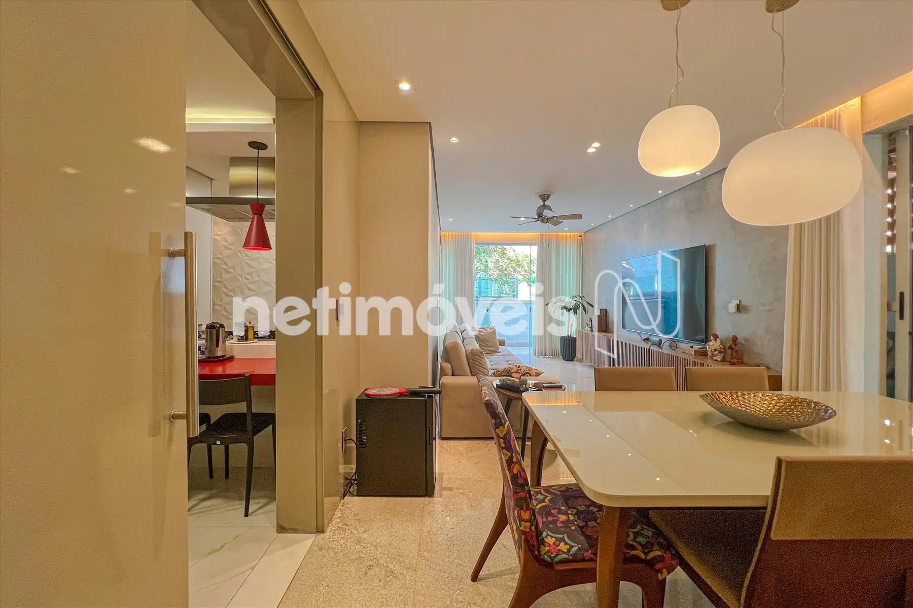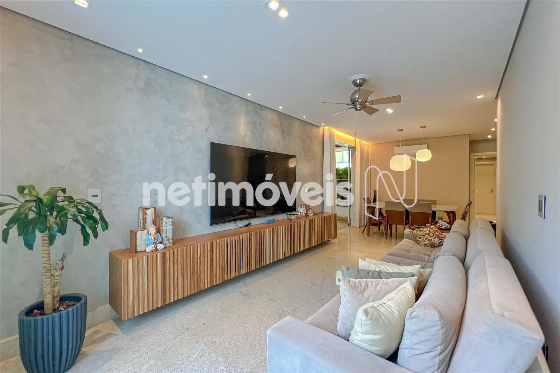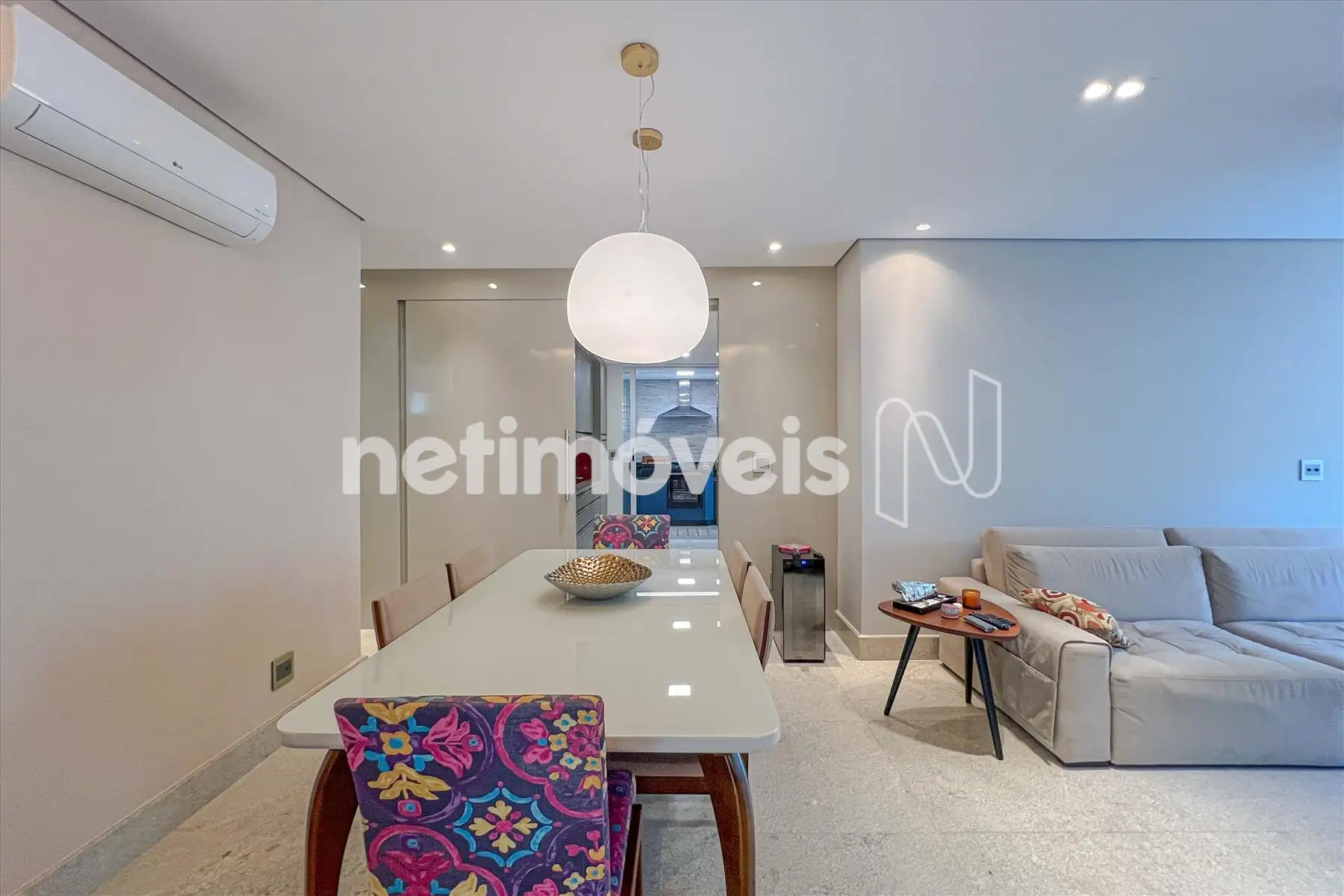 - Ampla sala para 02 ambientes com piso em granito, teto rebaixado com luzes indiretas