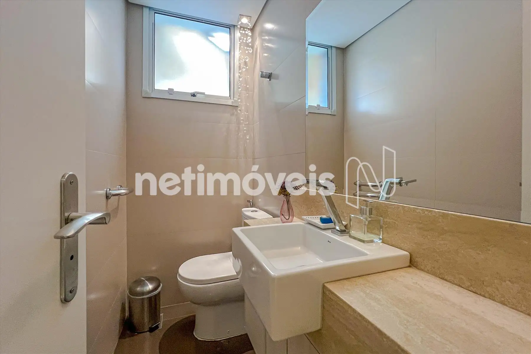 - Lavabo com piso em porcelanato, pia com bancada em mármore com Cuba sobreposta;