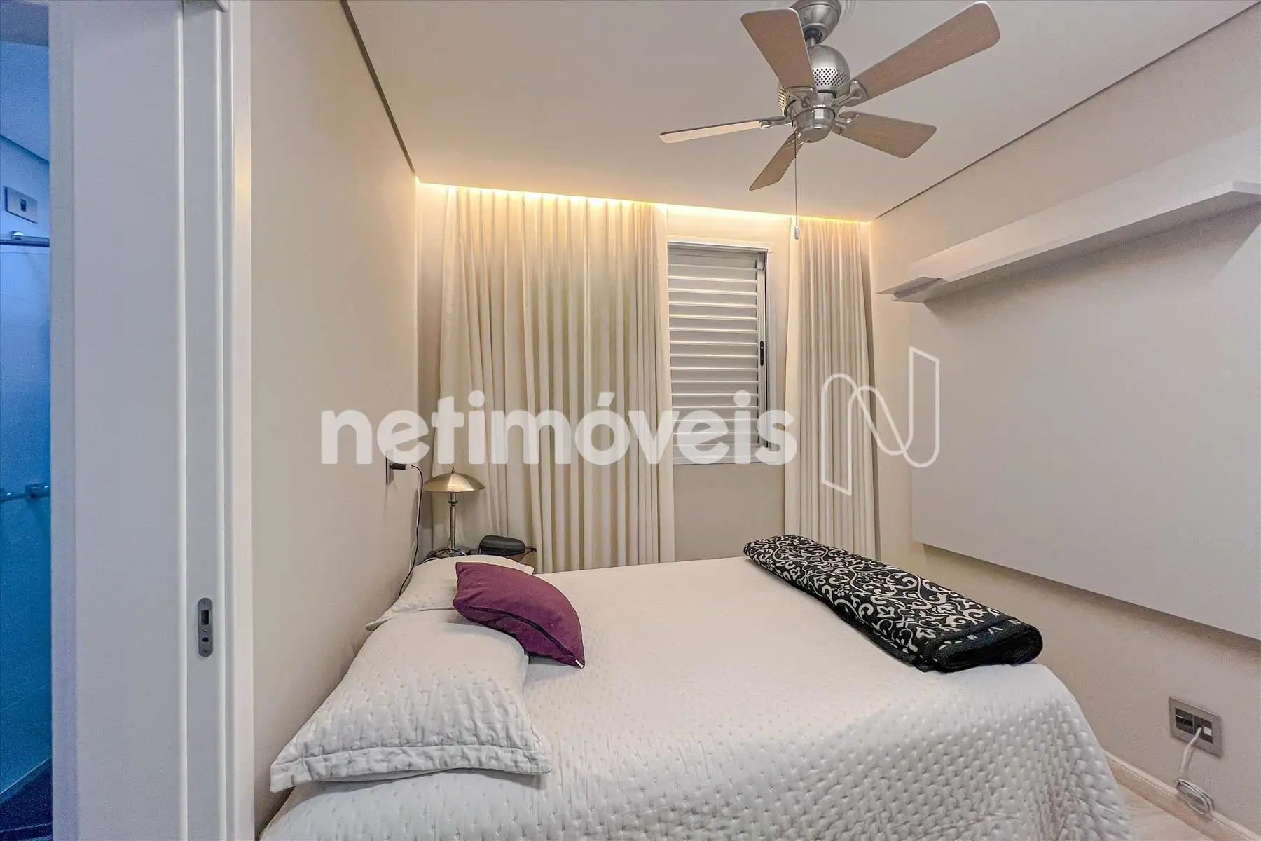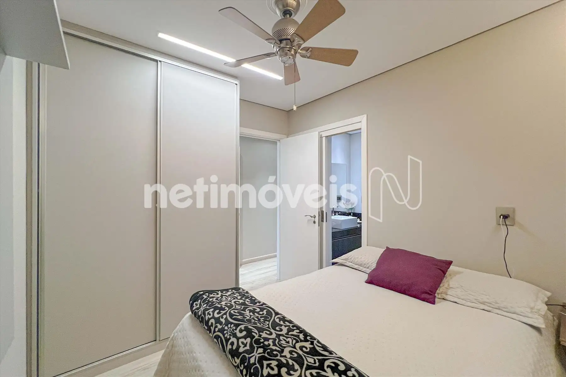 - Suíte Júnior com piso e bancada em granito com armário, espelho e box em vidro temperado;