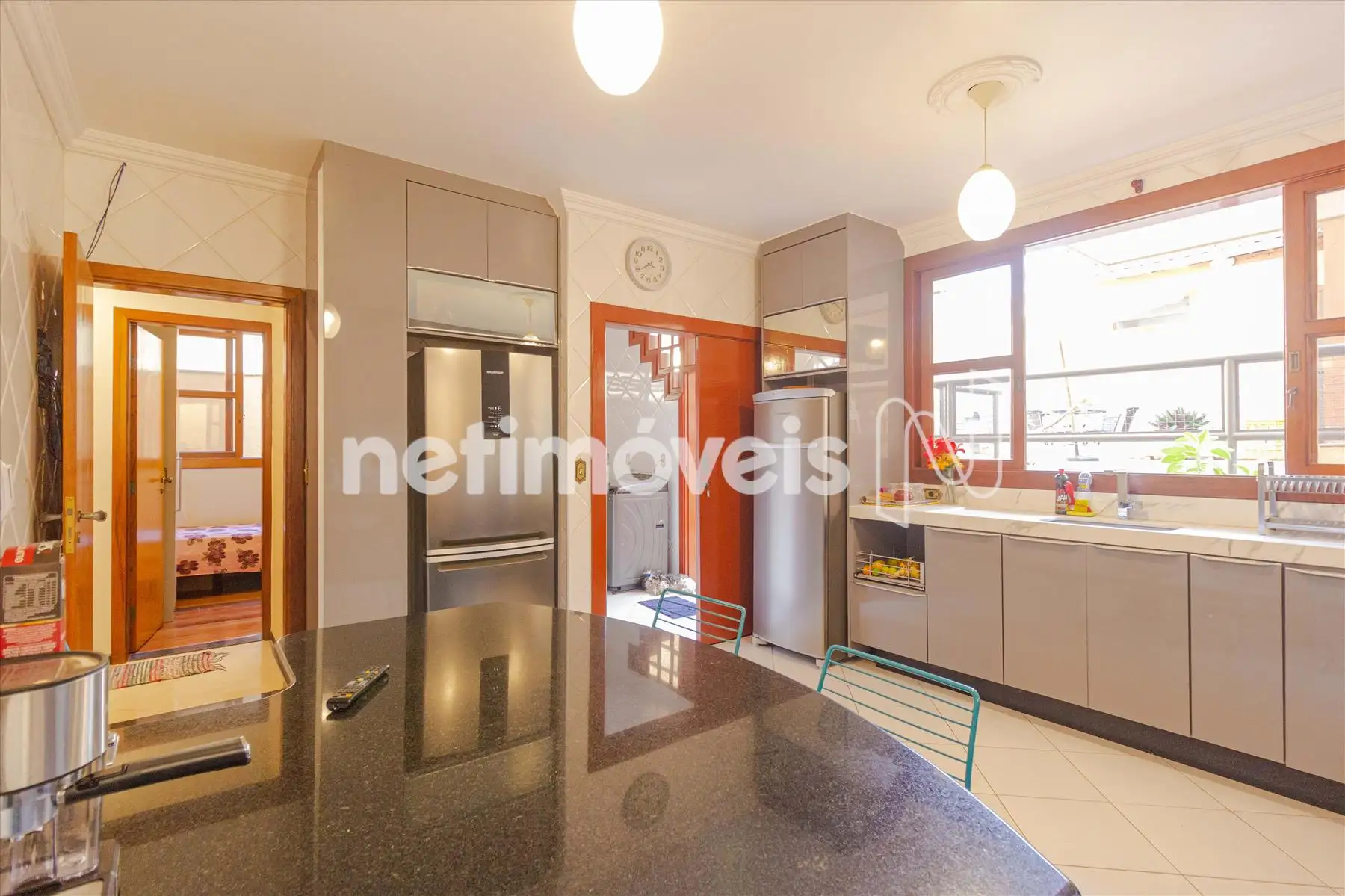 - O imóvel dispõe ainda de escritório, despensa, cozinha moderna com armários planejados, além de lavanderia espaçosa e totalmente funcional. A área externa é um verdadeiro Espaço Gourmet completo, com piscina com cascata, sauna, churrasqueira, cozinha de apoio com armários e banheiro social, perfeita para momentos de lazer e confraternização.