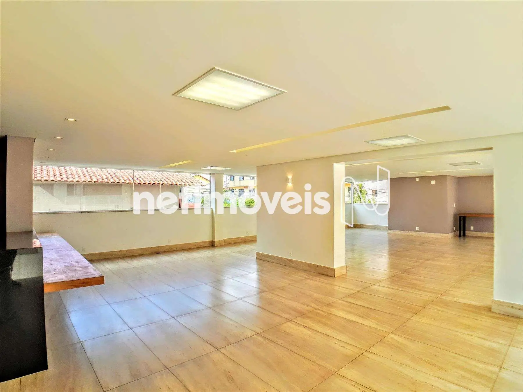 Sala ampla para dois ambientes com piso em porcelanato;