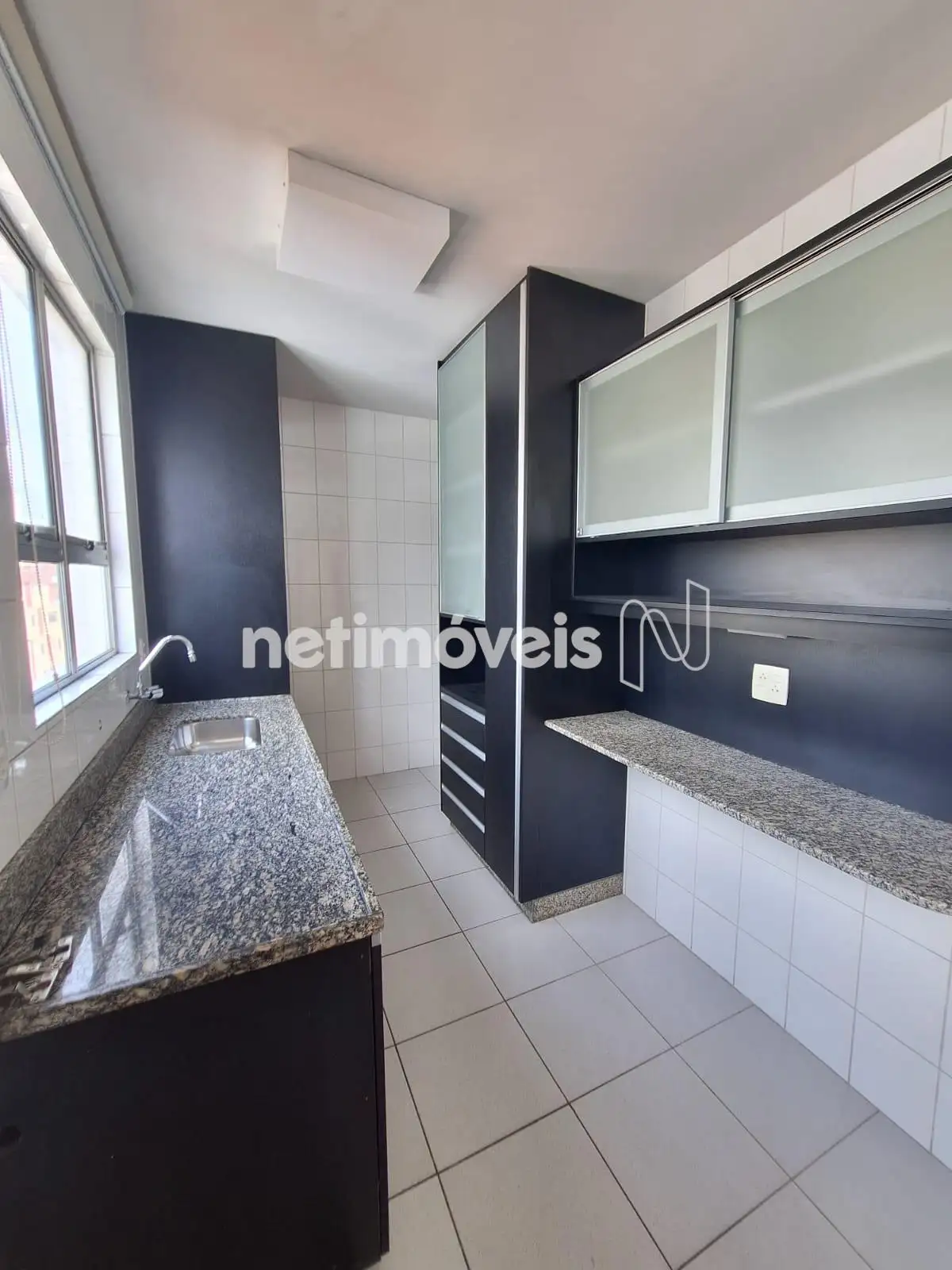 Cozinha com bancadas granito, toda montada com armários planejados;