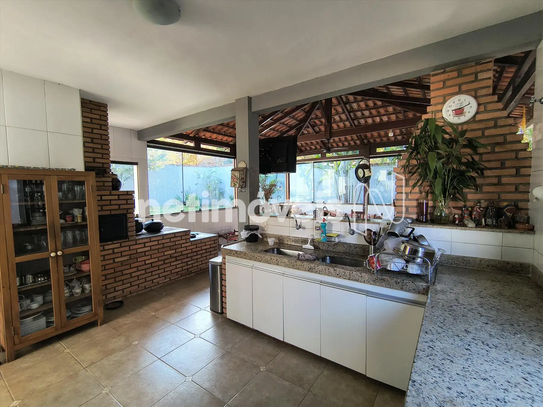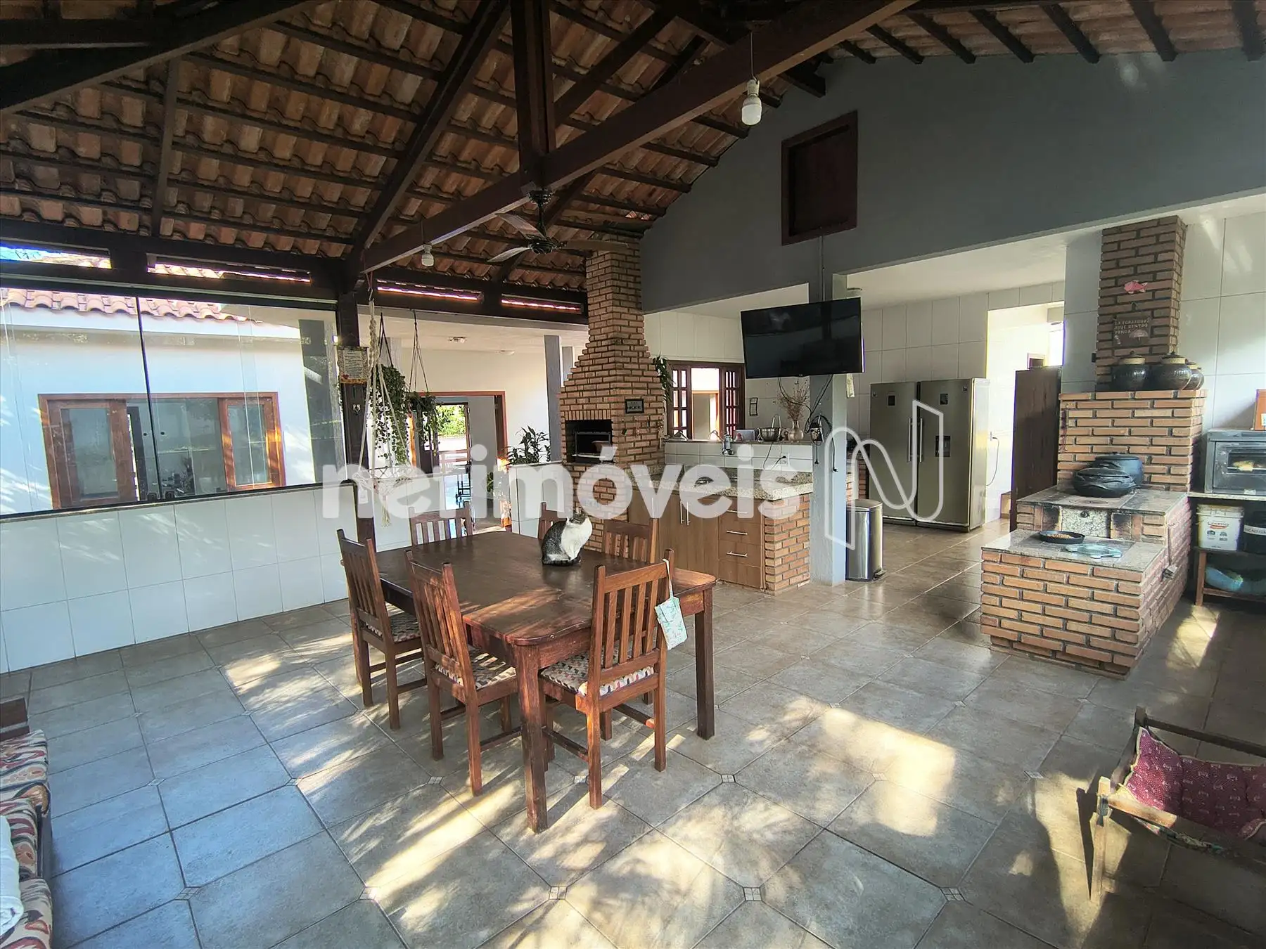 Quiosque com fogão a lenha e forno.
