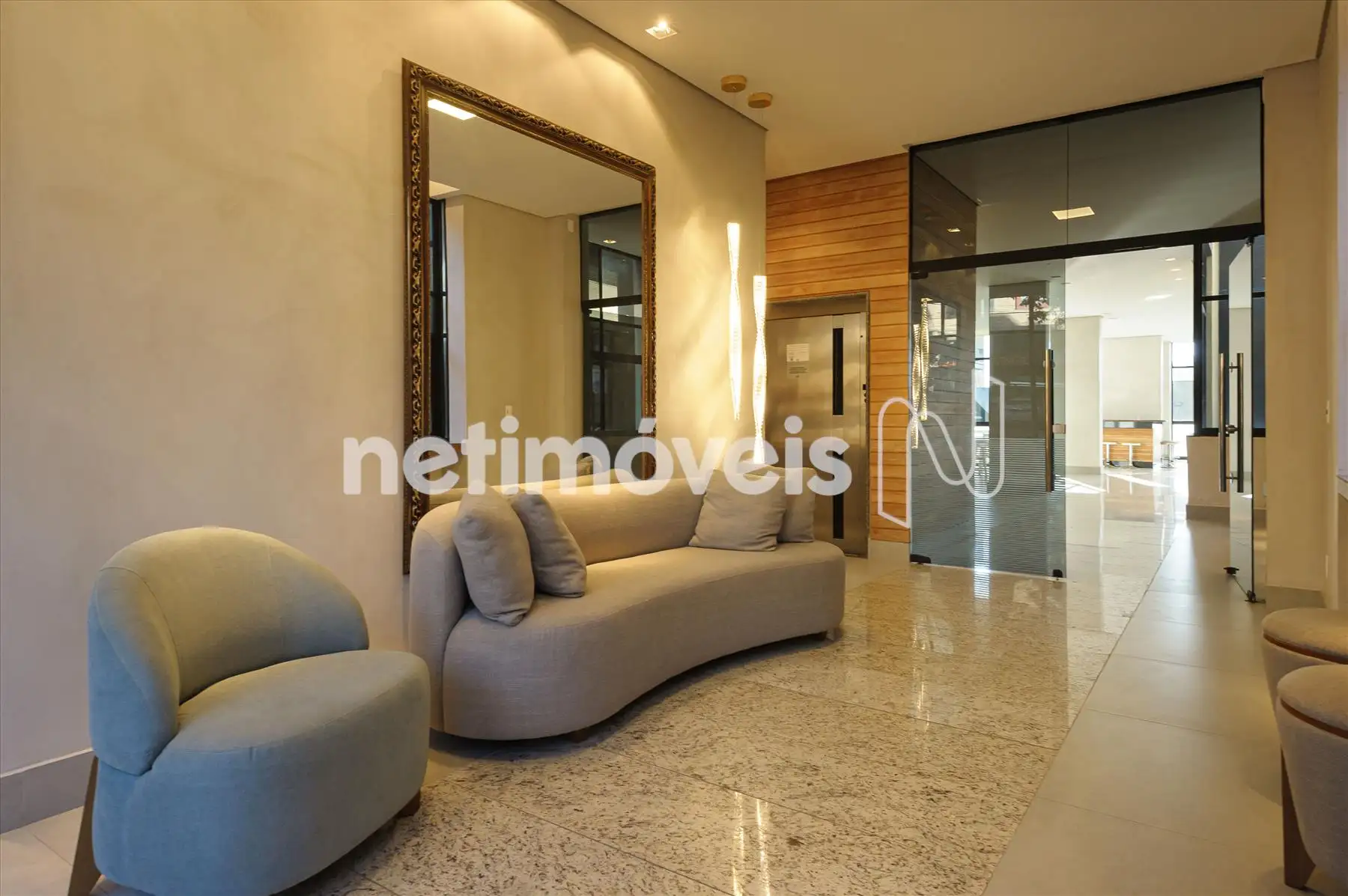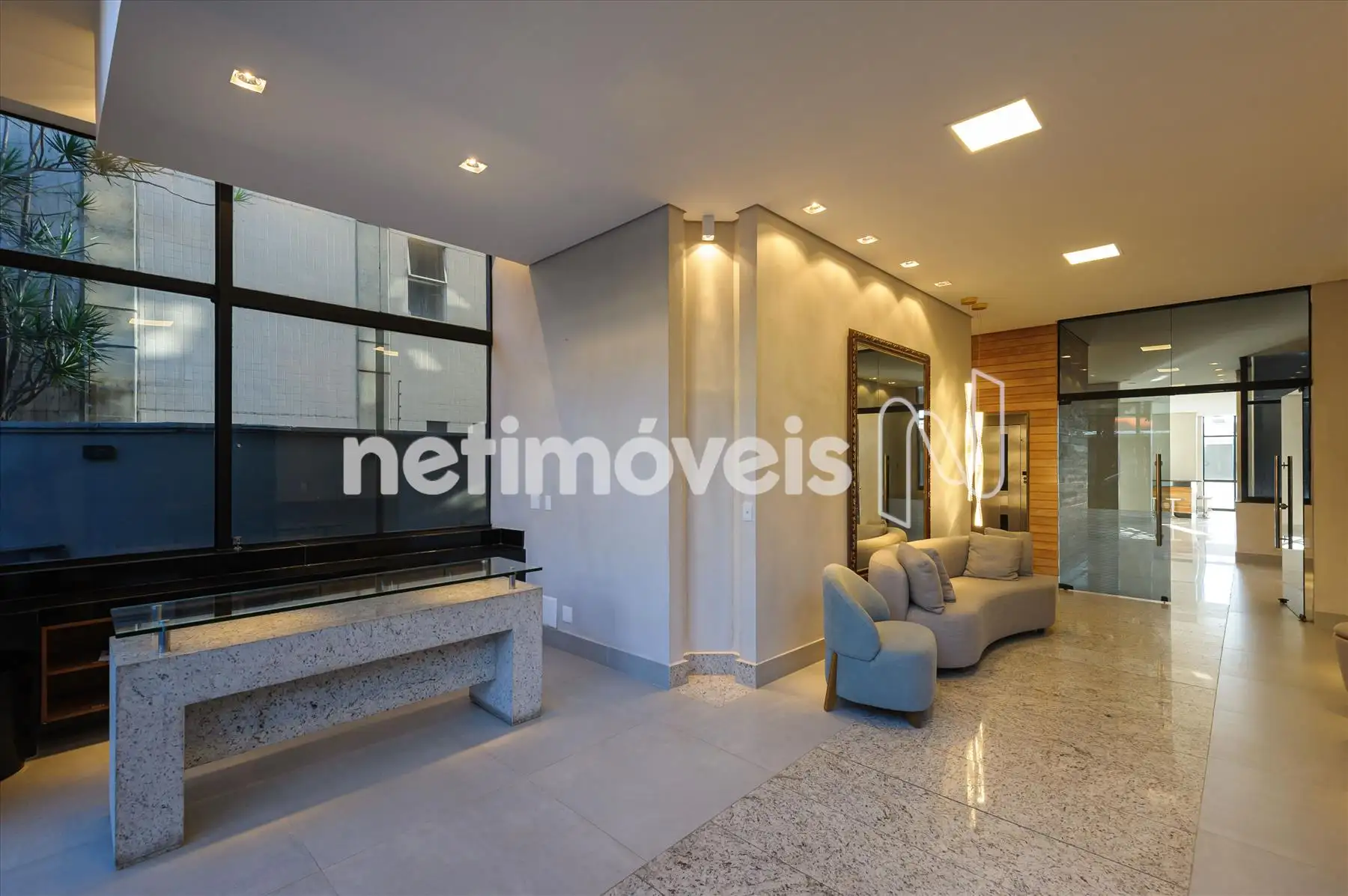 - Prédio recuado, revestido em granito e pastilhas, ajardinado, hall social decorado e elevadores.