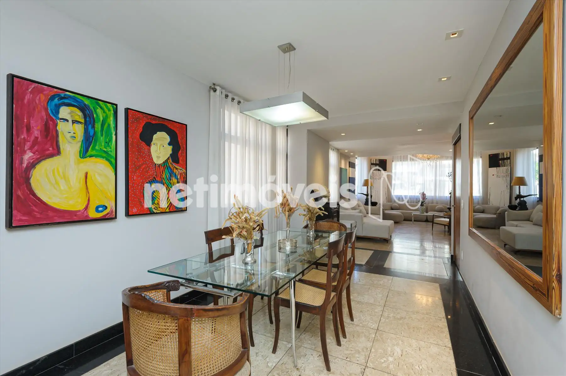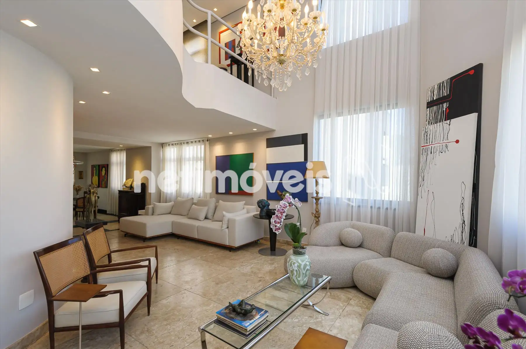 - São três salas muito amplas, claras e arejadas, pé direito duplo, piso em mármore, projeto luminotécnico de muito bom gosto. Lavabo.
