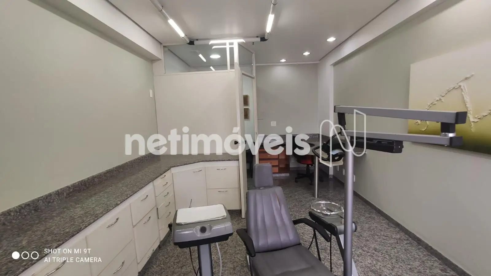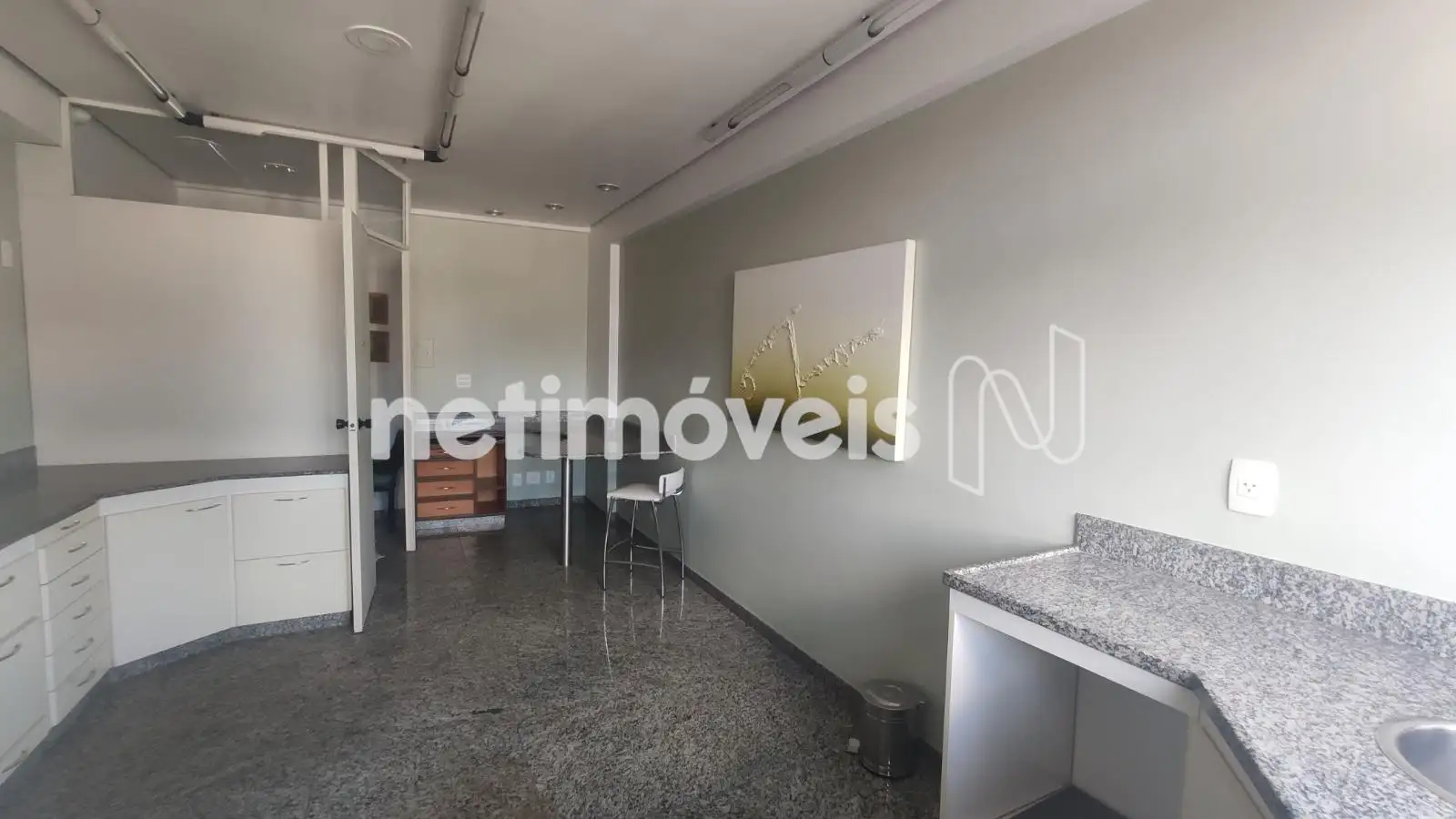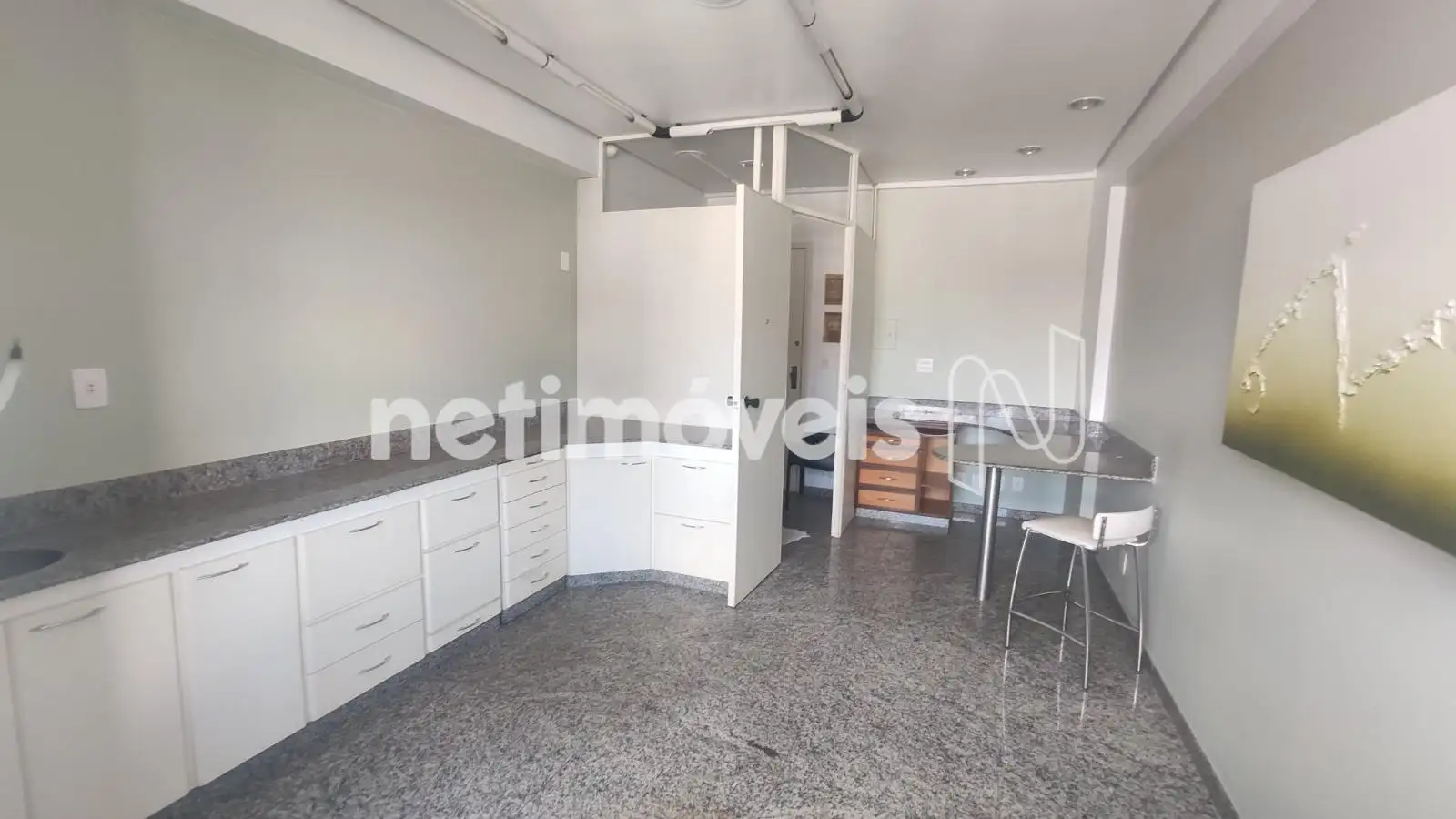 - Sala com 23,54m² de área real privativa, antessala separada por divisória. Extensa bancada em granito, com armários de ótima qualidade, iluminação de Lead.