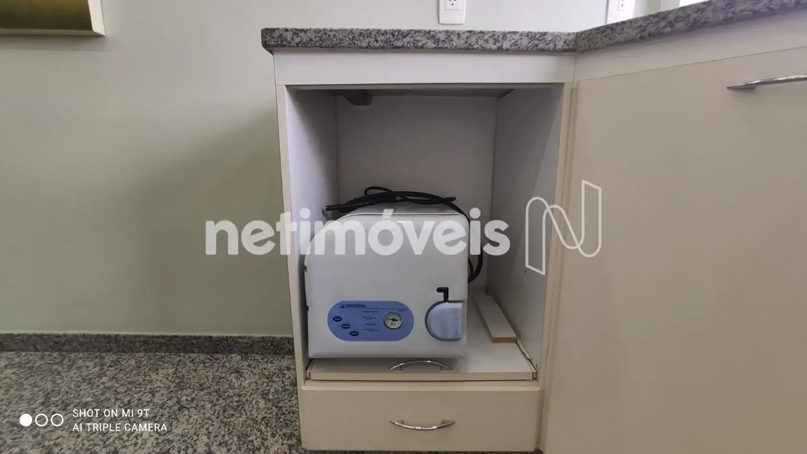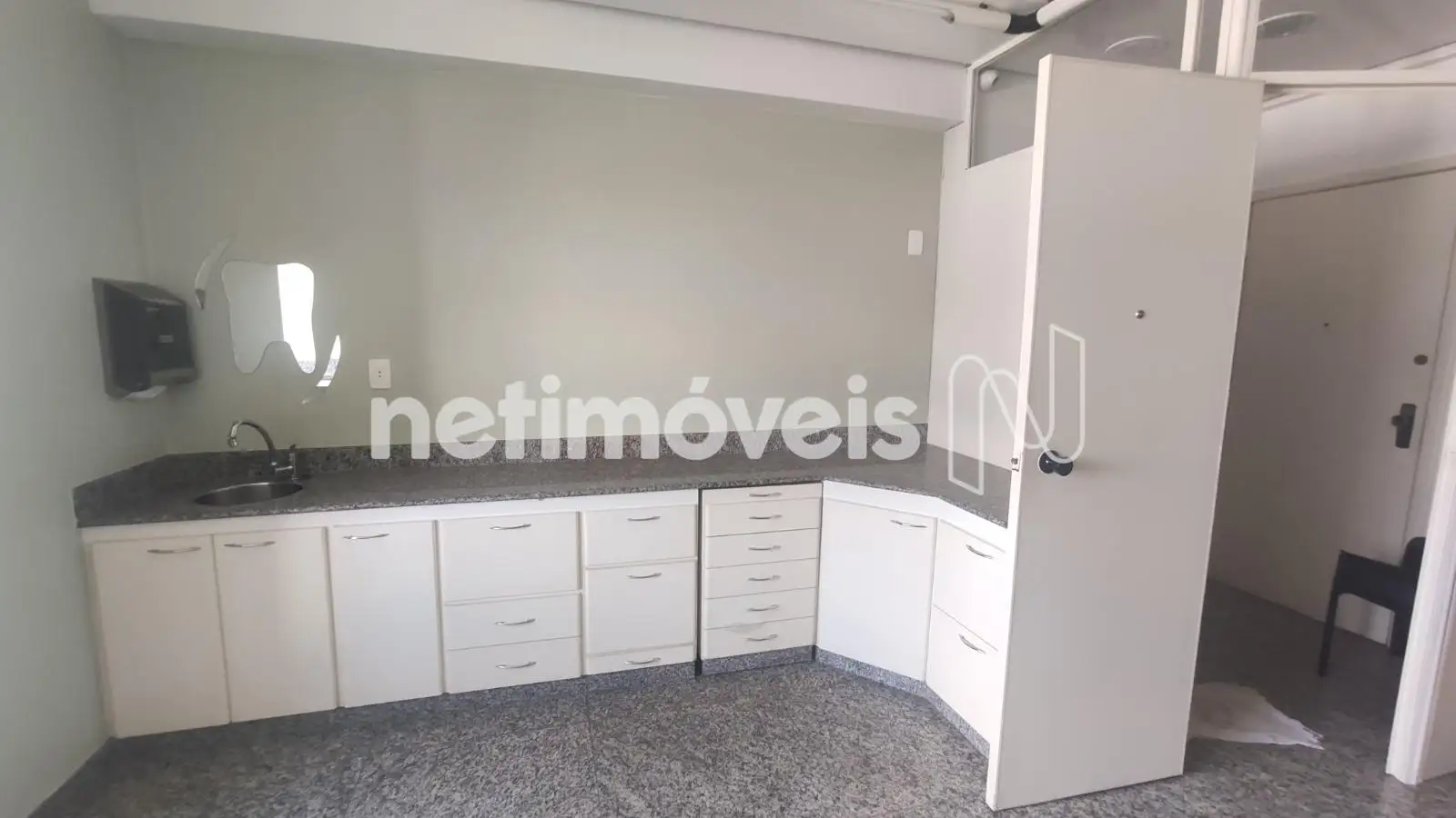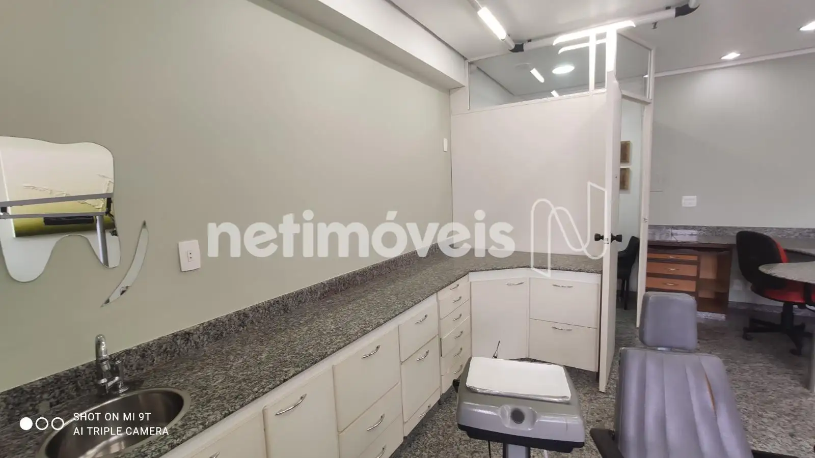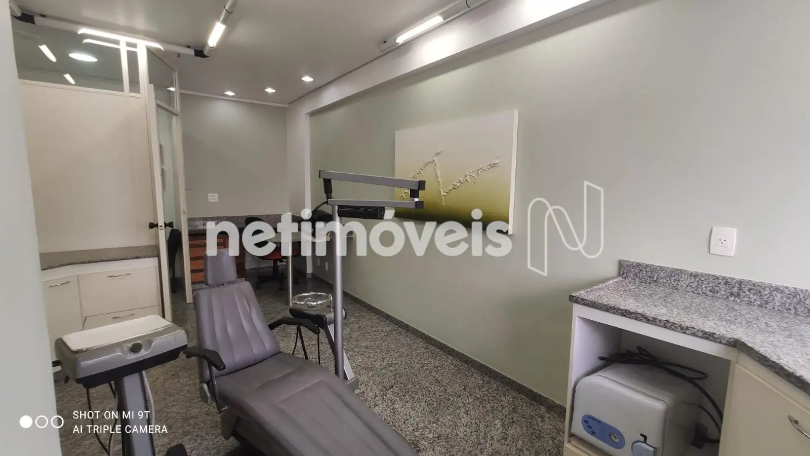 - Sala com 23,54m² de área real privativa, antessala separada por divisória. Extensa bancada em granito, com armários de ótima qualidade, iluminação de Lead.