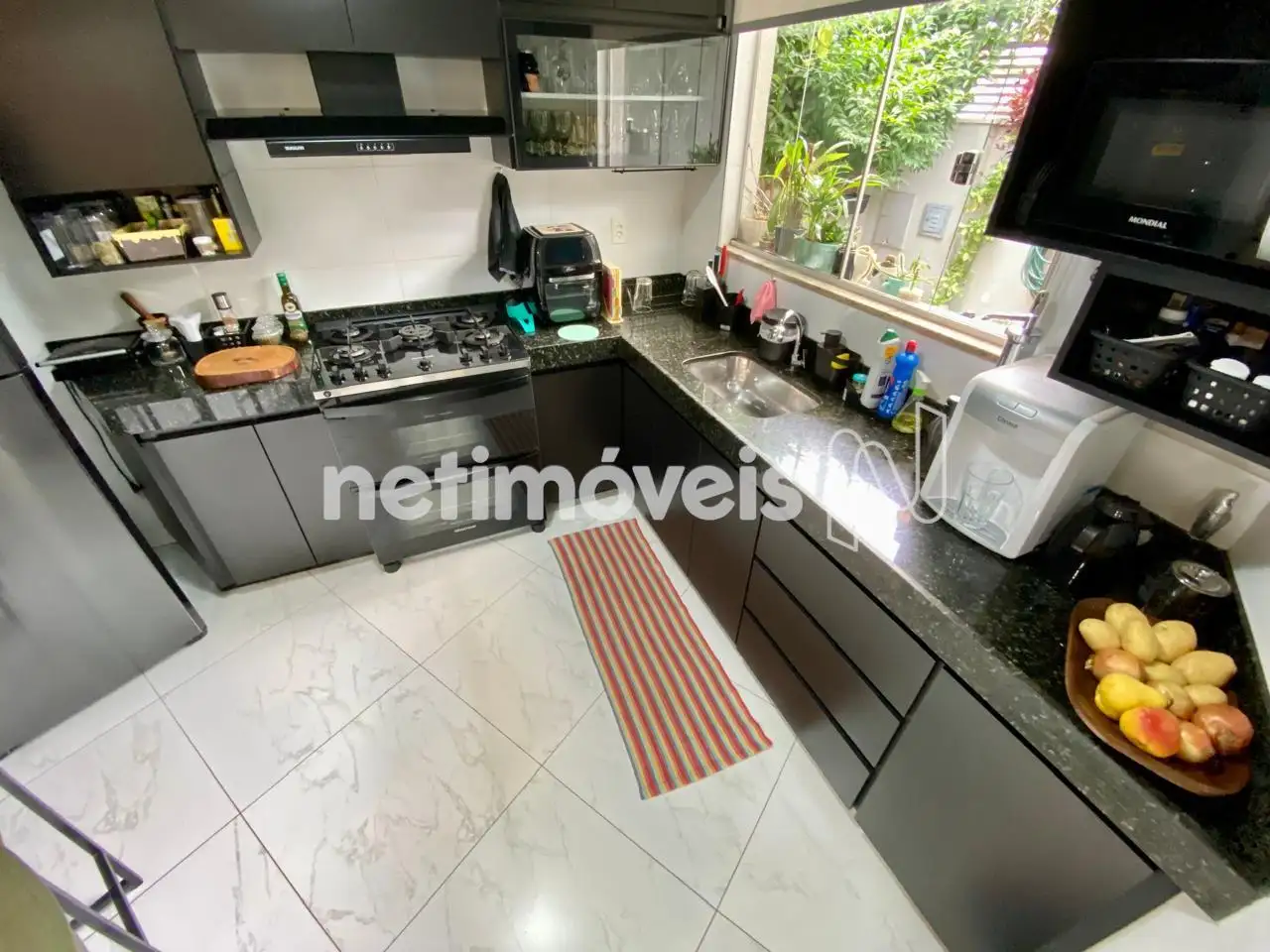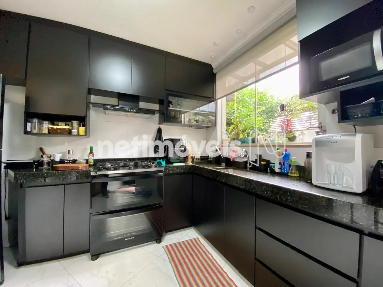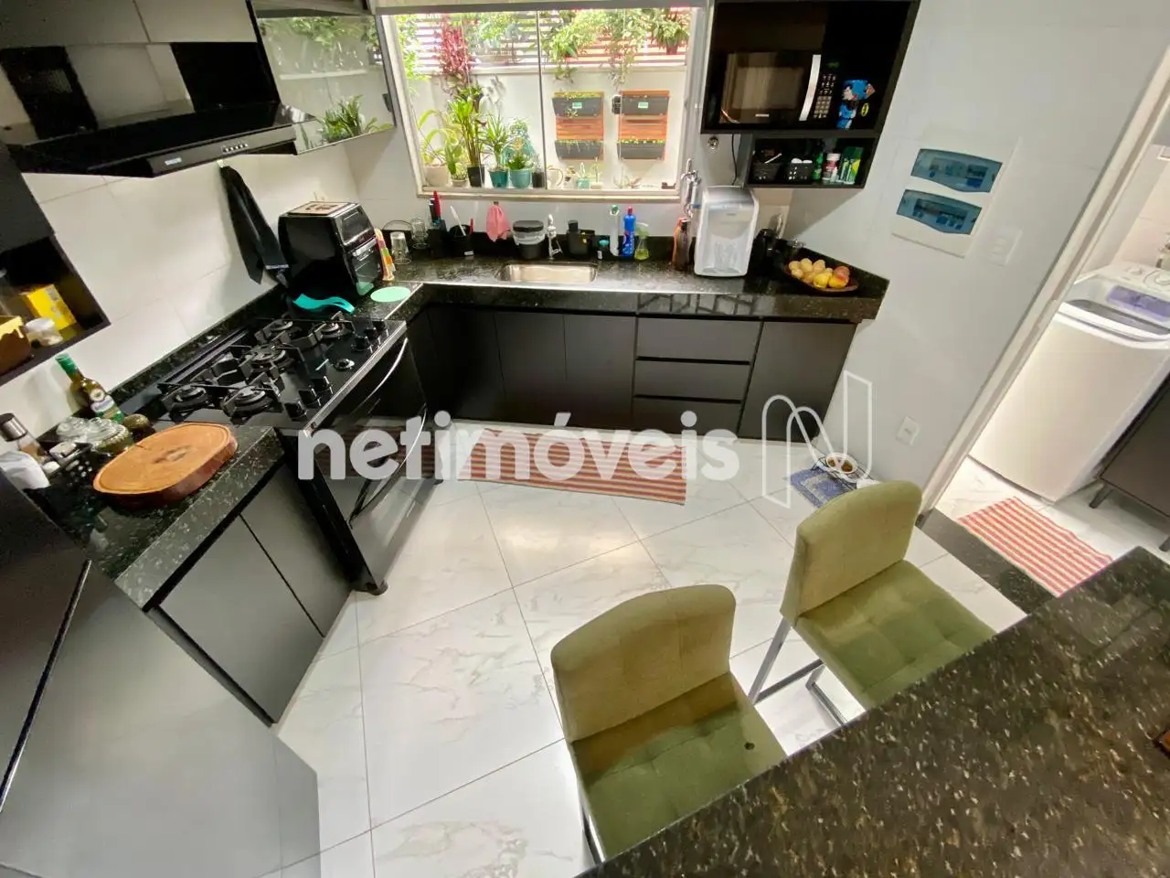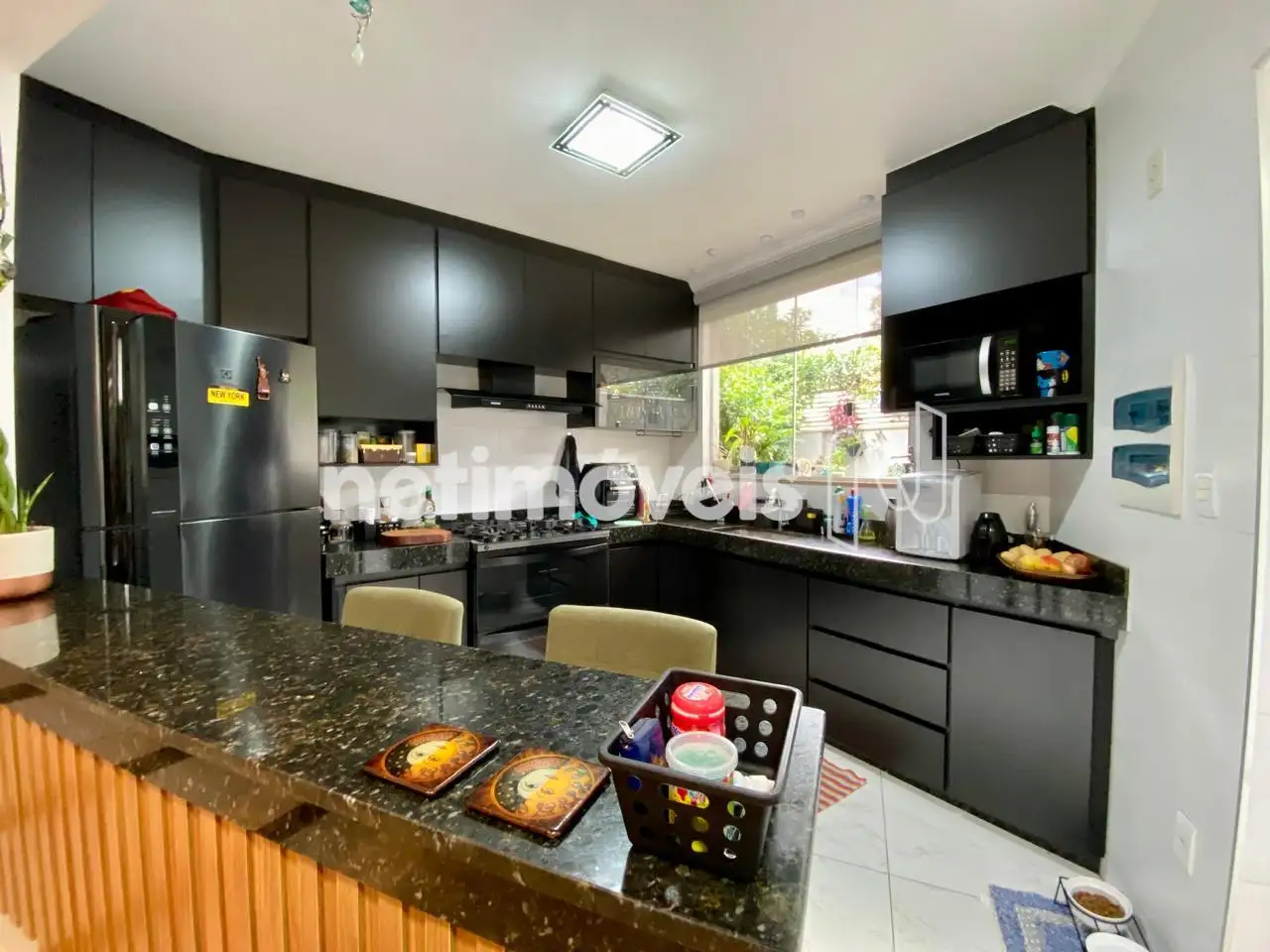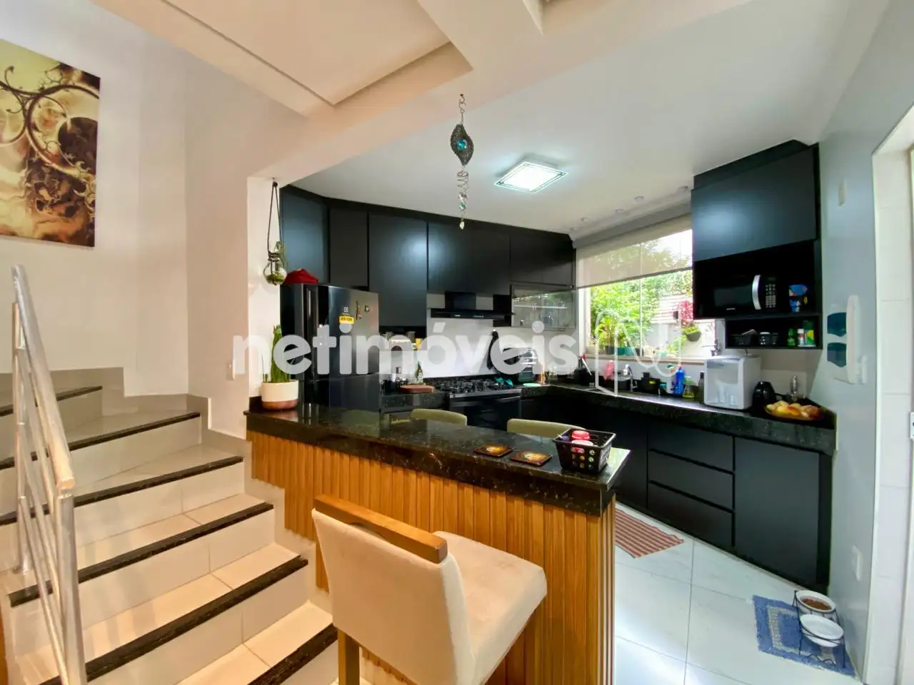 Cozinha Americana: Bancadas em granito e armários planejados de qualidade.