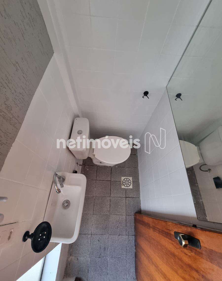 - Banheiro com piso de cerâmica, espelho, bebedouro