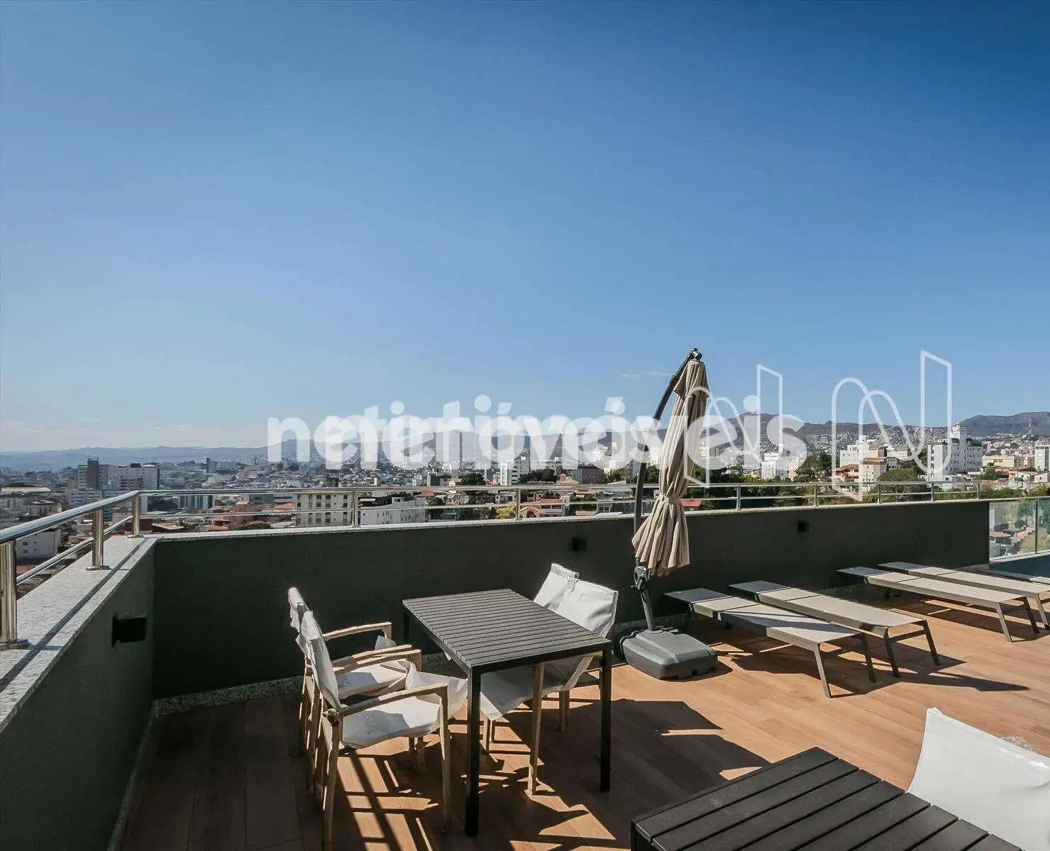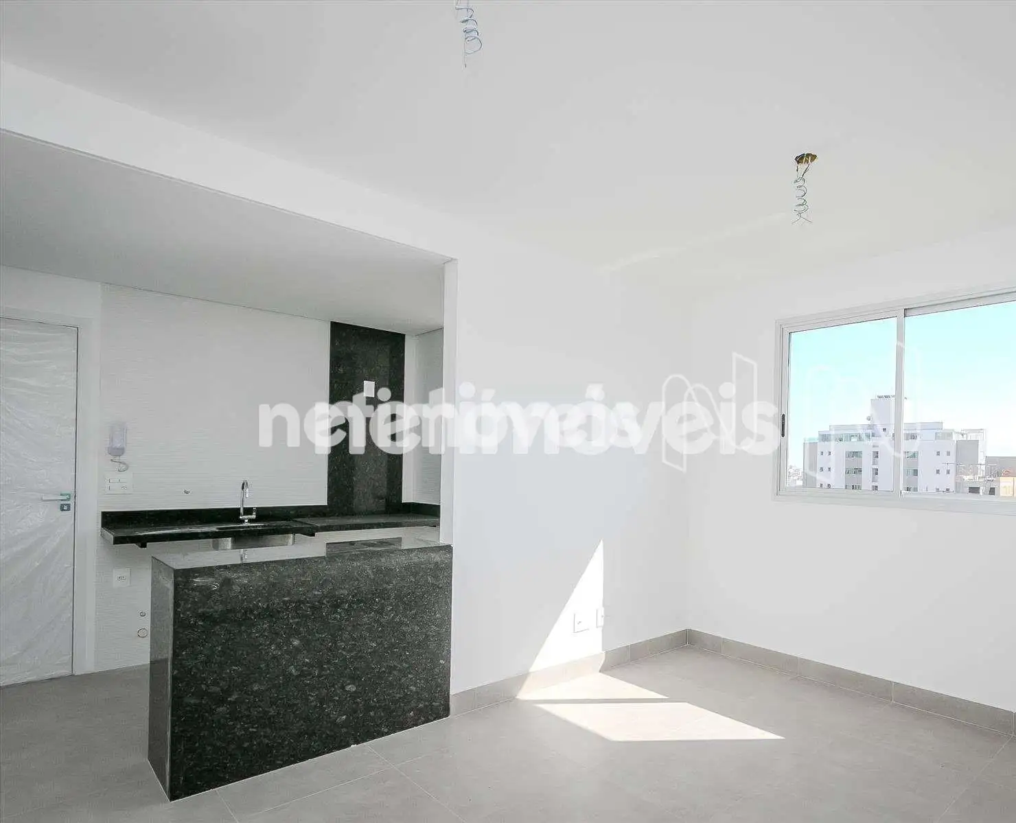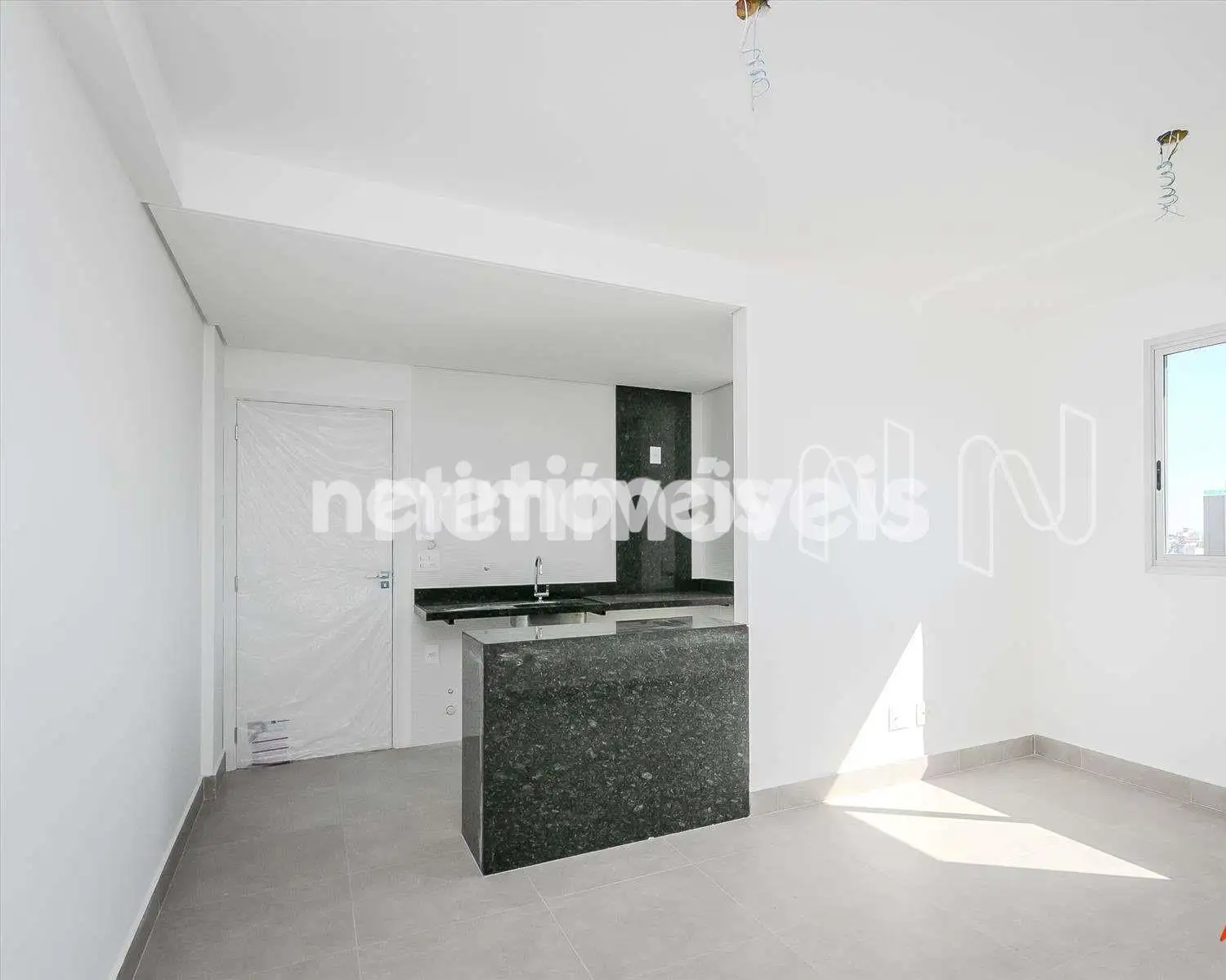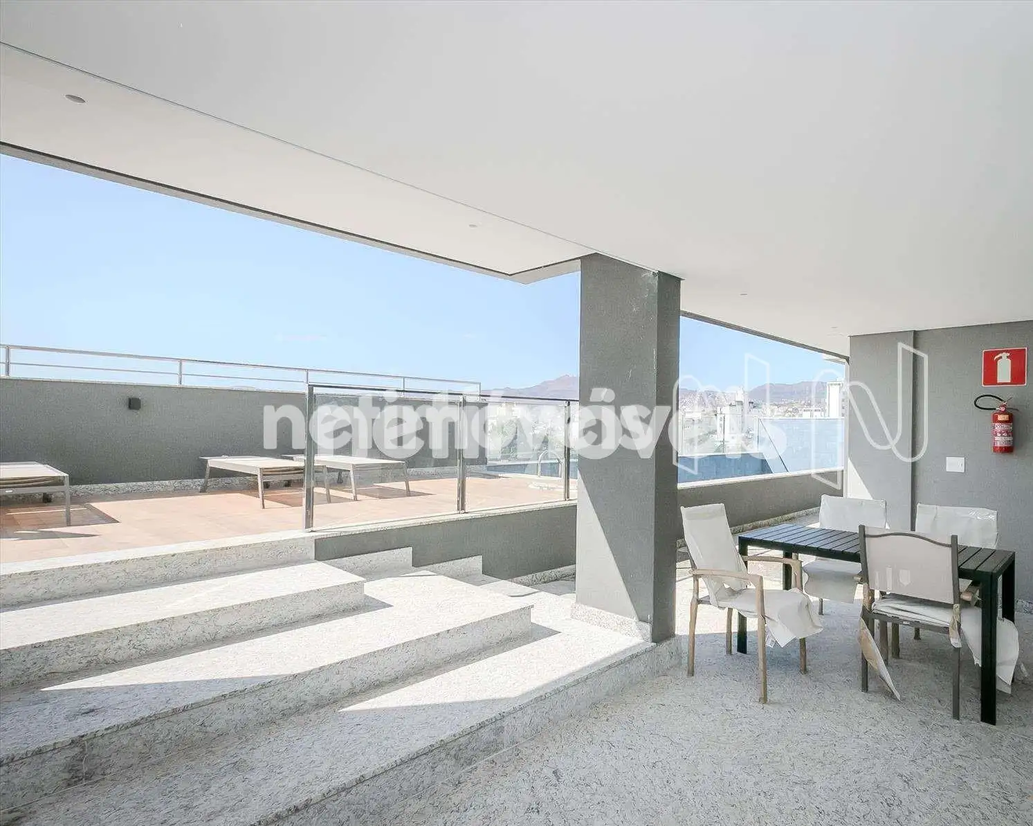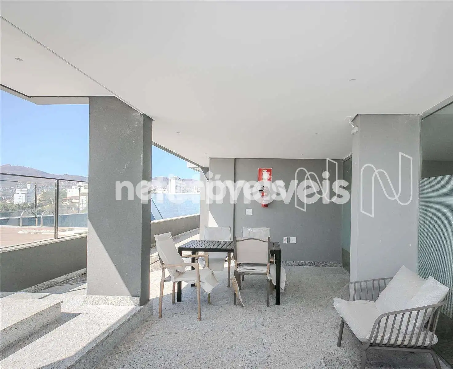 Boa varanda com porcelanato em concreto.