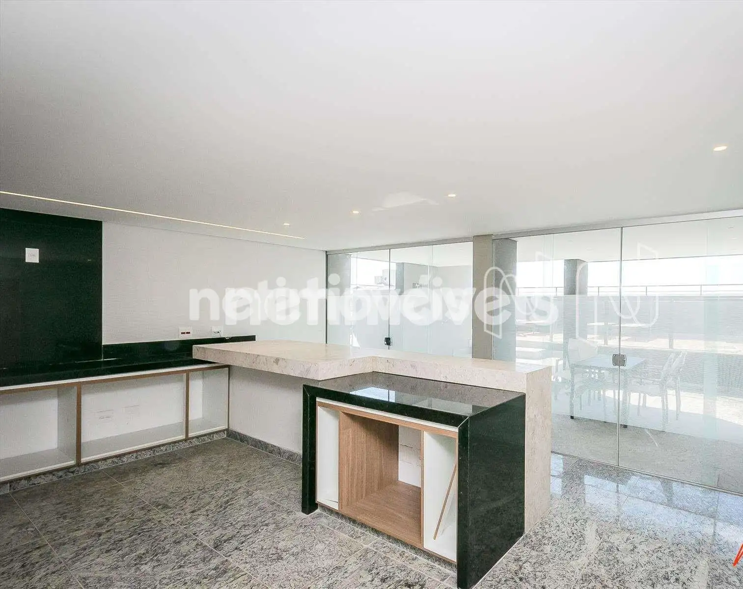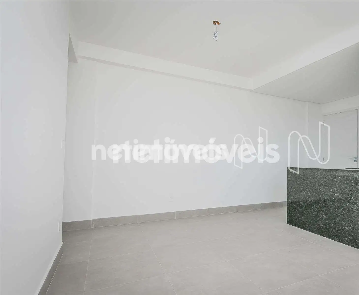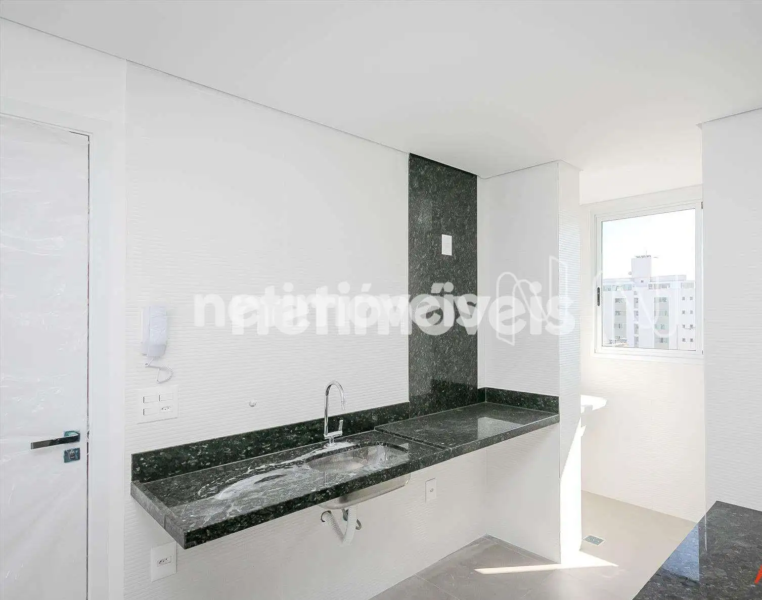 Cozinha com área serviço, piso em porcelanato.