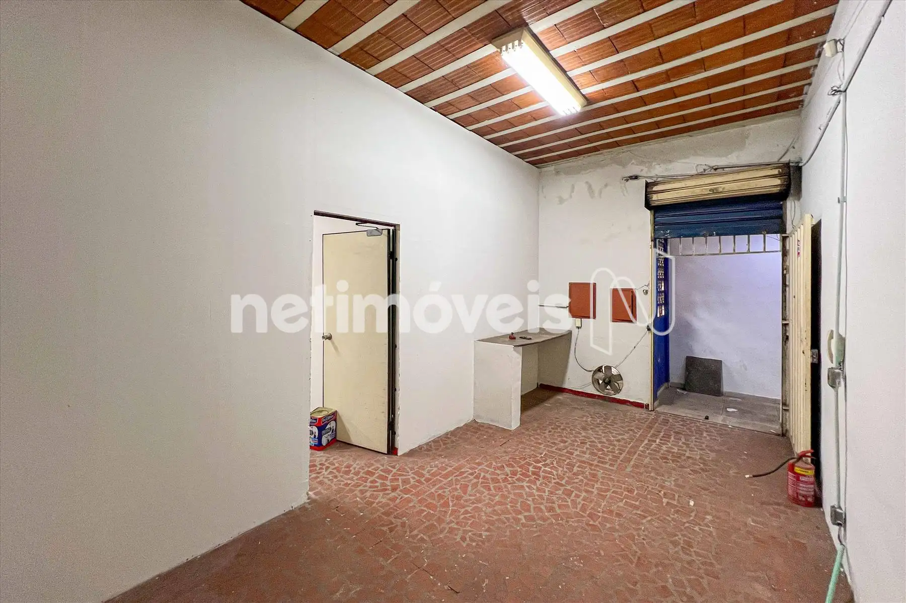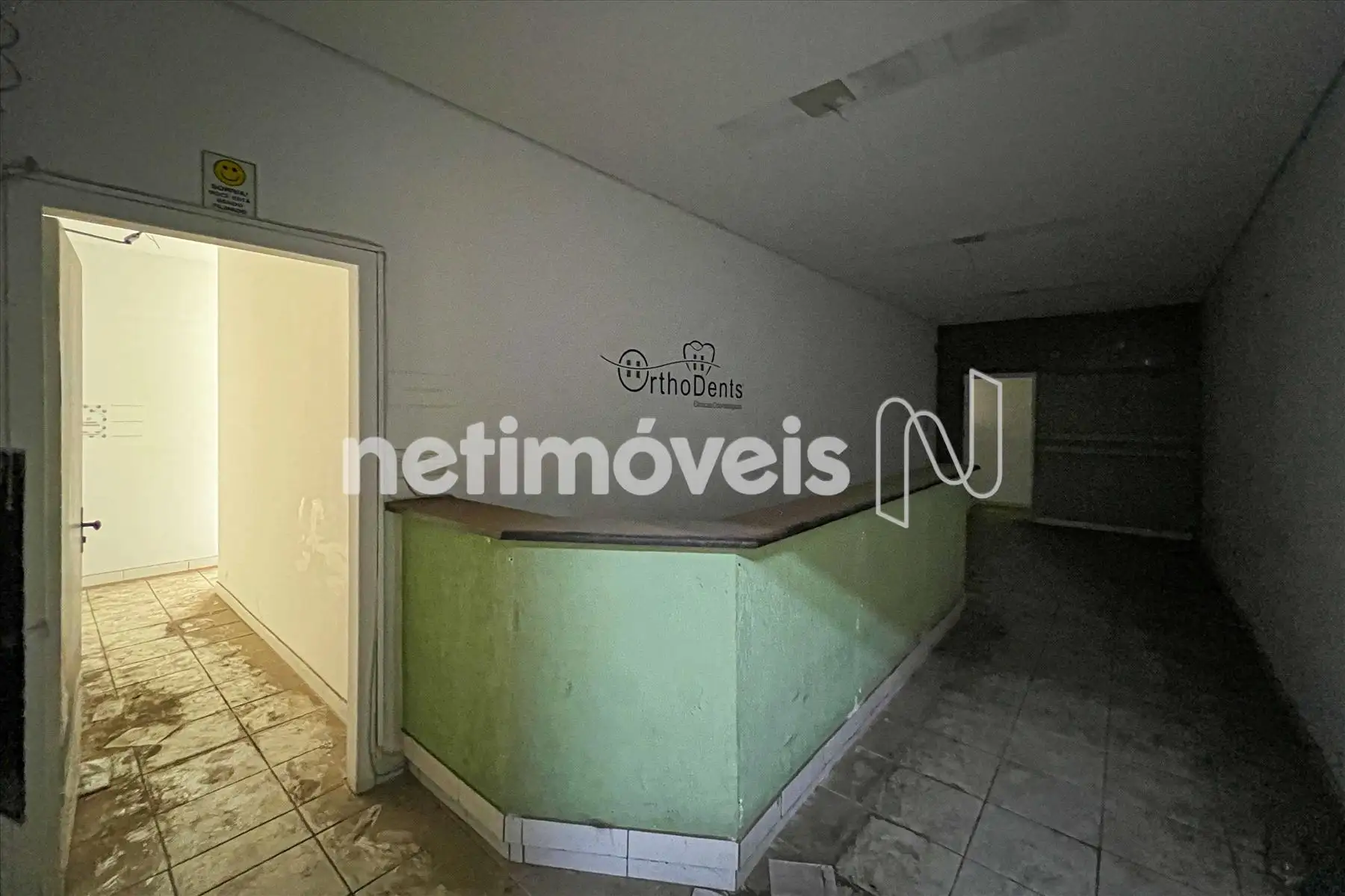 Ampla recepção com bancada de atendimento e estrutura para ar-condicionado