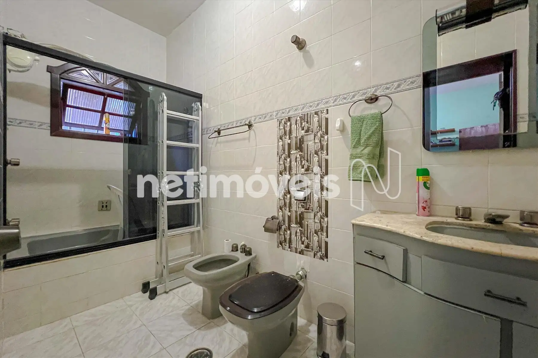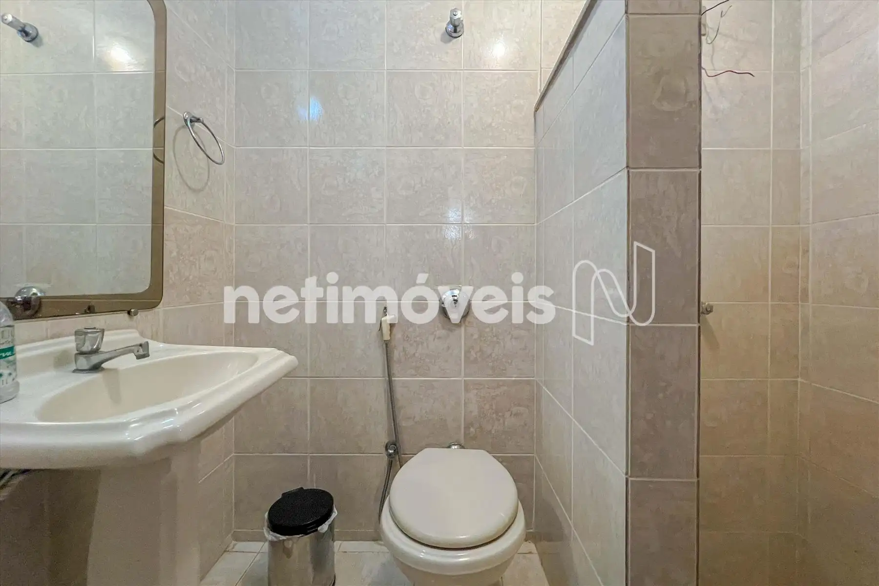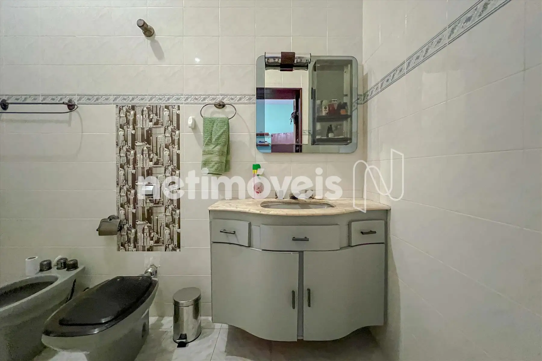 - Banho social completo com armário, box blindex e espelho;