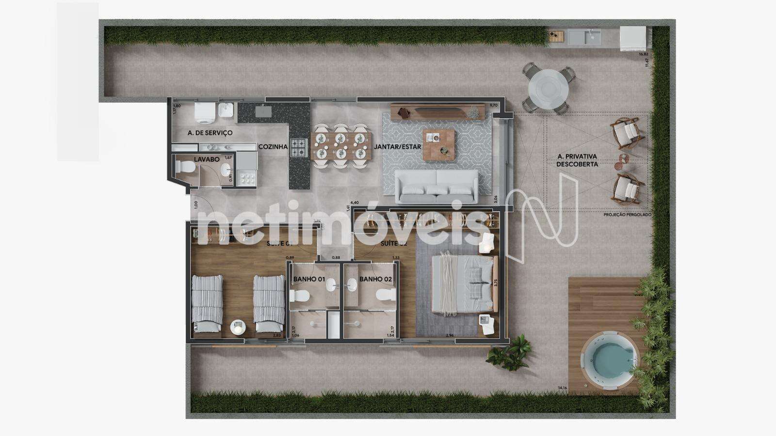 Área Privativa 2 Quartos Serra 184m²