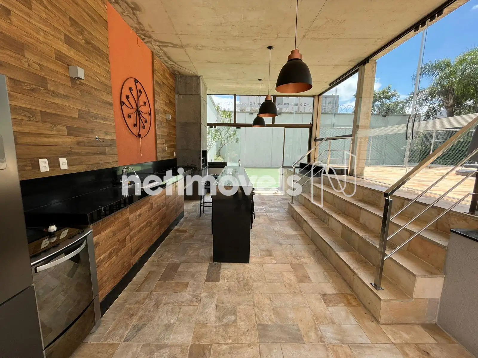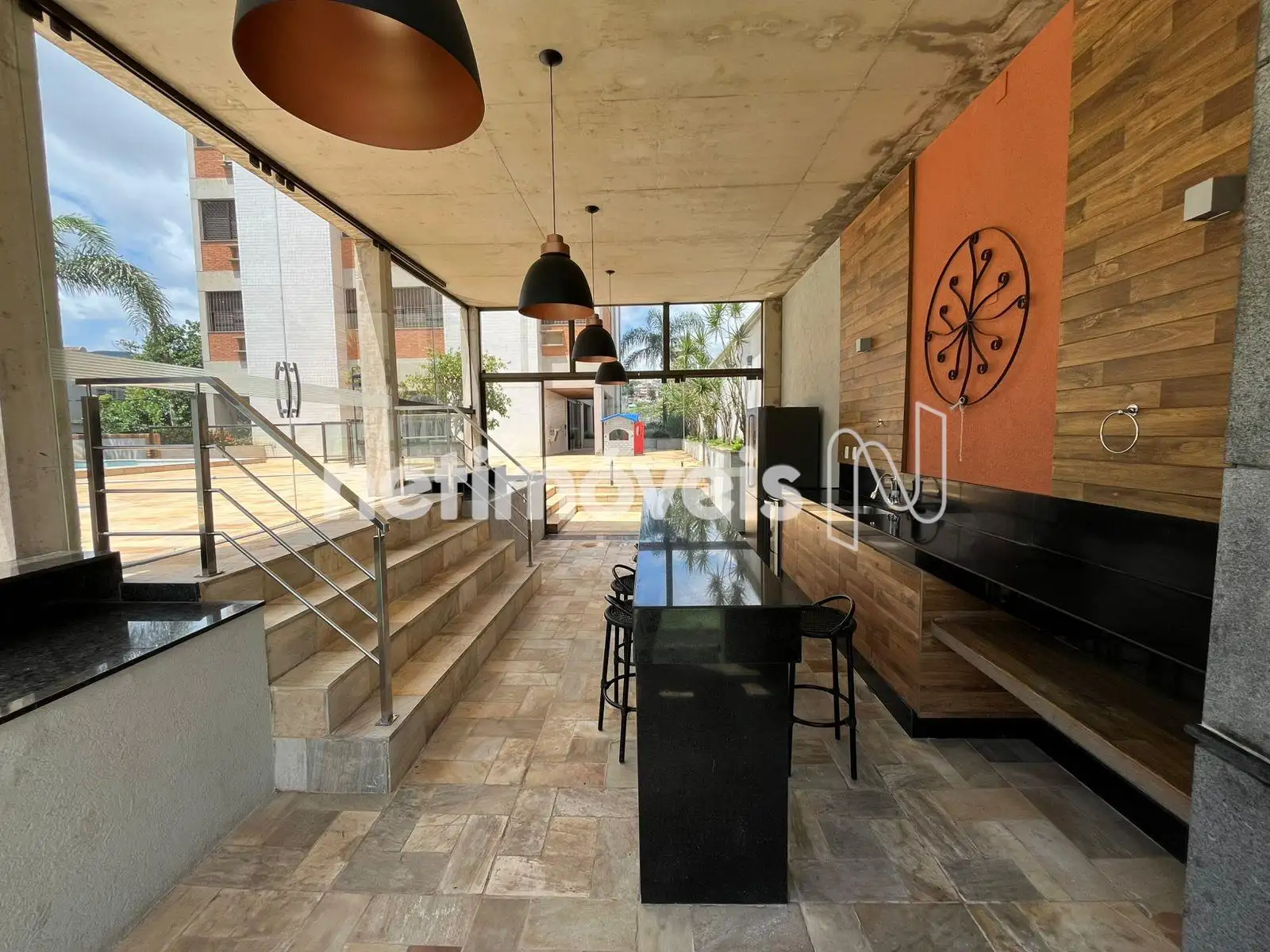 Área externa com piso em pedra São Tomé.