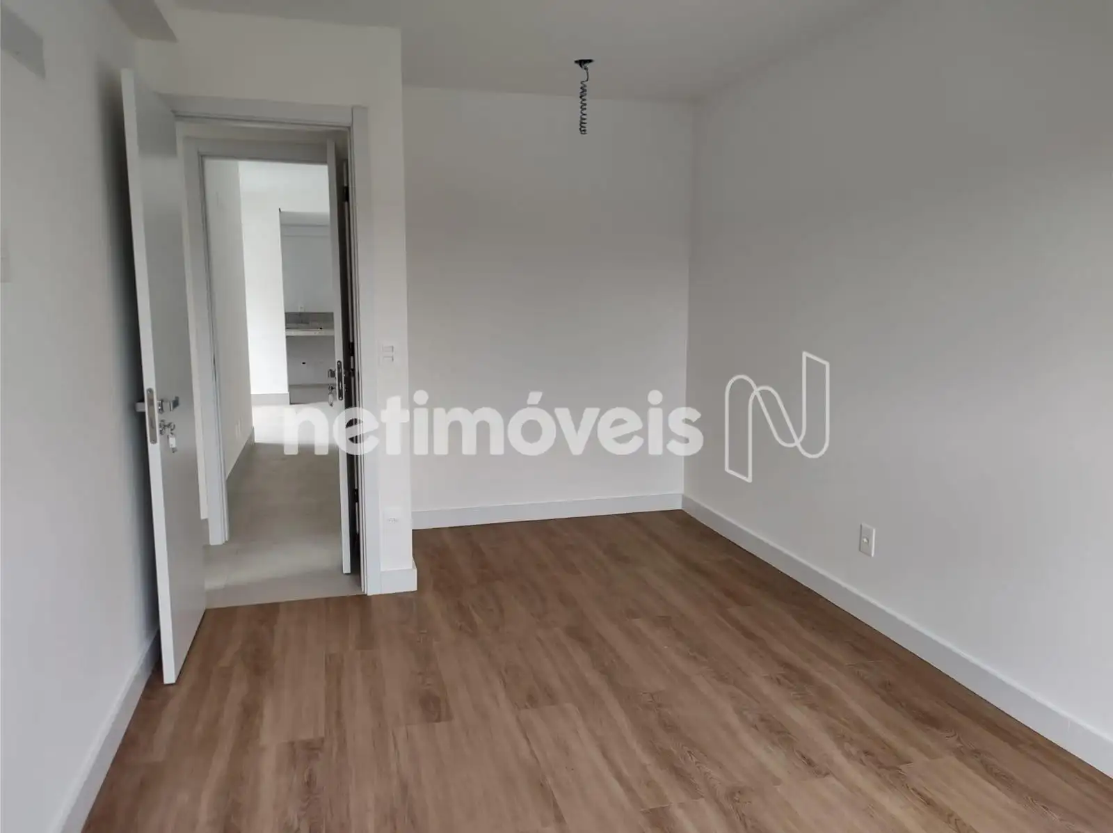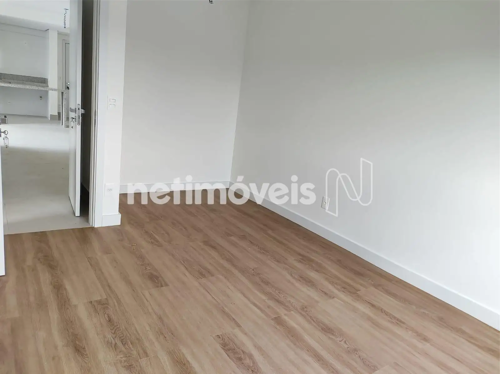 Sala com varanda incorporada e piso em laminado;