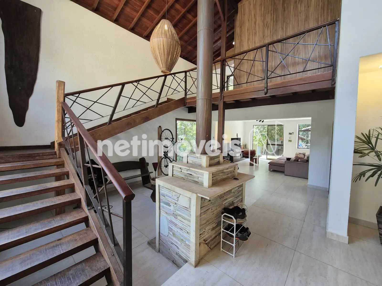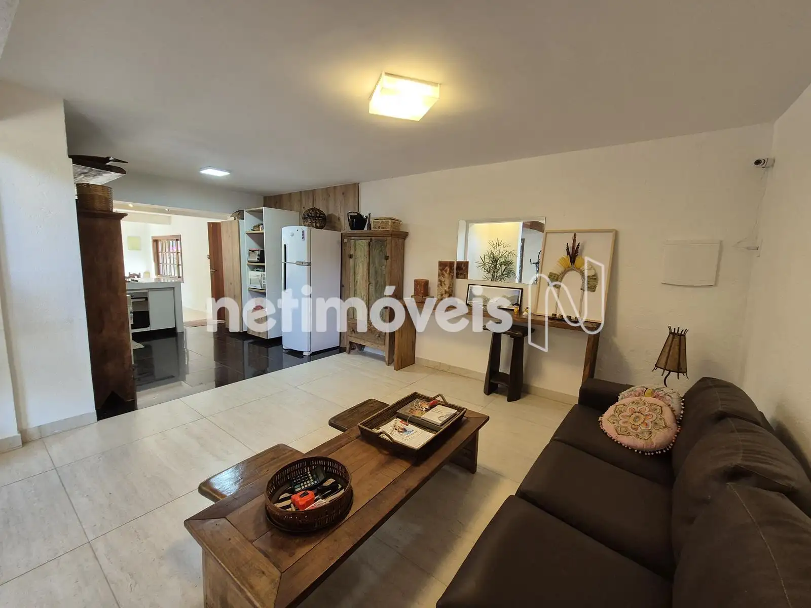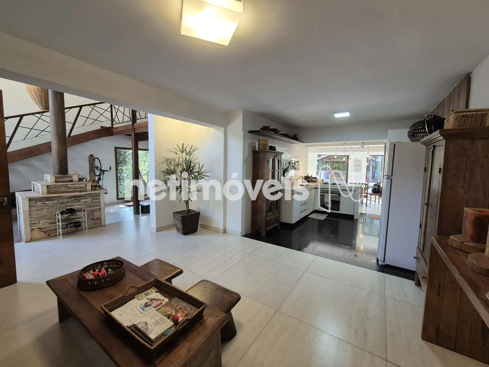 - 01 Sala ampla para 03 ambientes com piso em porcelanato, pé direito duplo, lareira