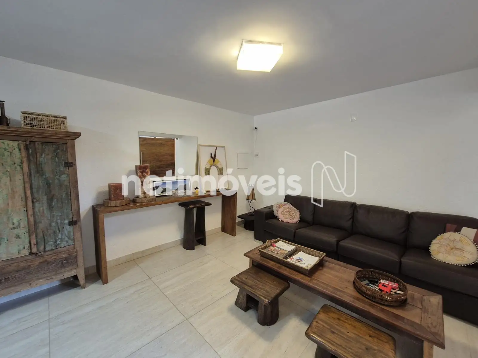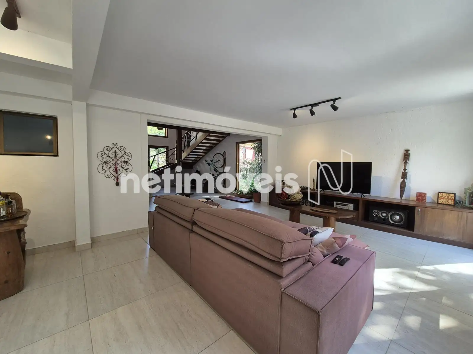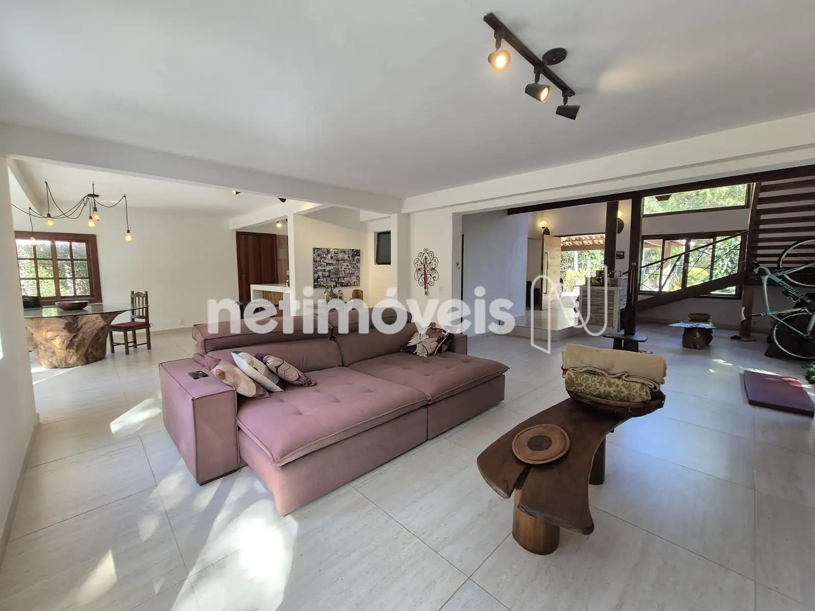 - 01 Sala ampla para 03 ambientes com piso em porcelanato, pé direito duplo, lareira
