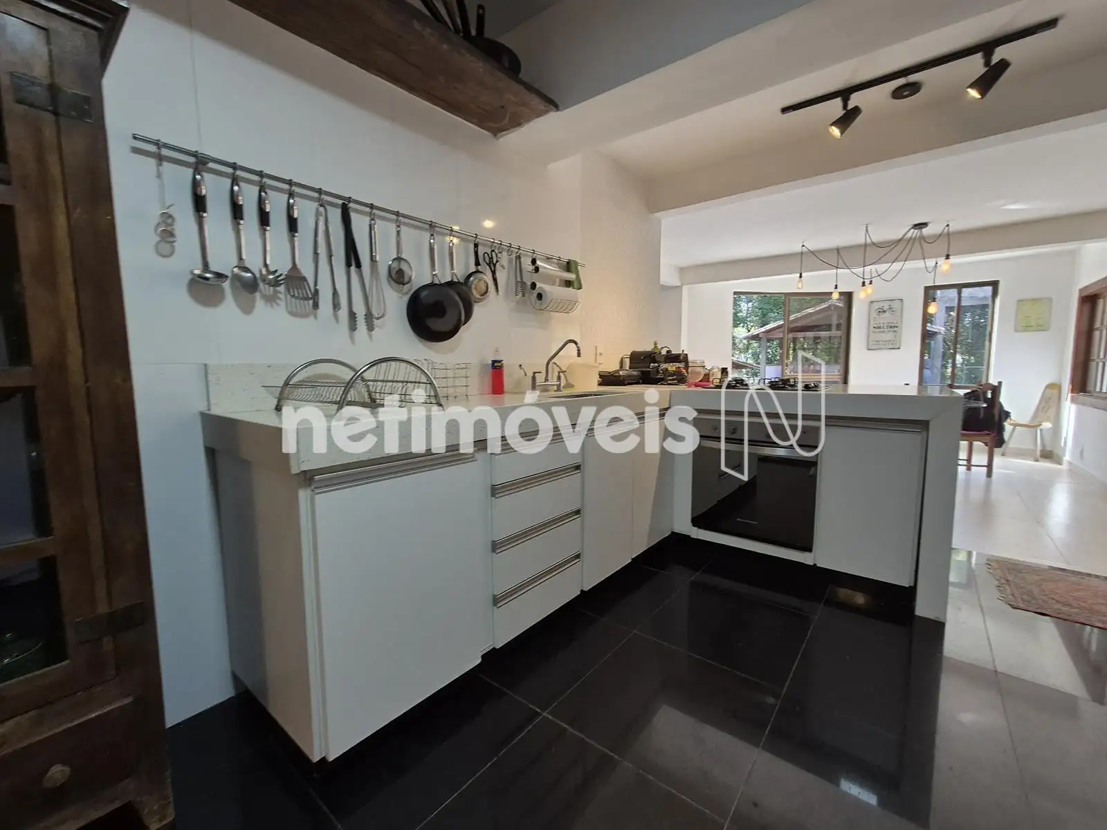 - Cozinha americana com bancadas de granito, fogão cooktop, forno embutido, armários