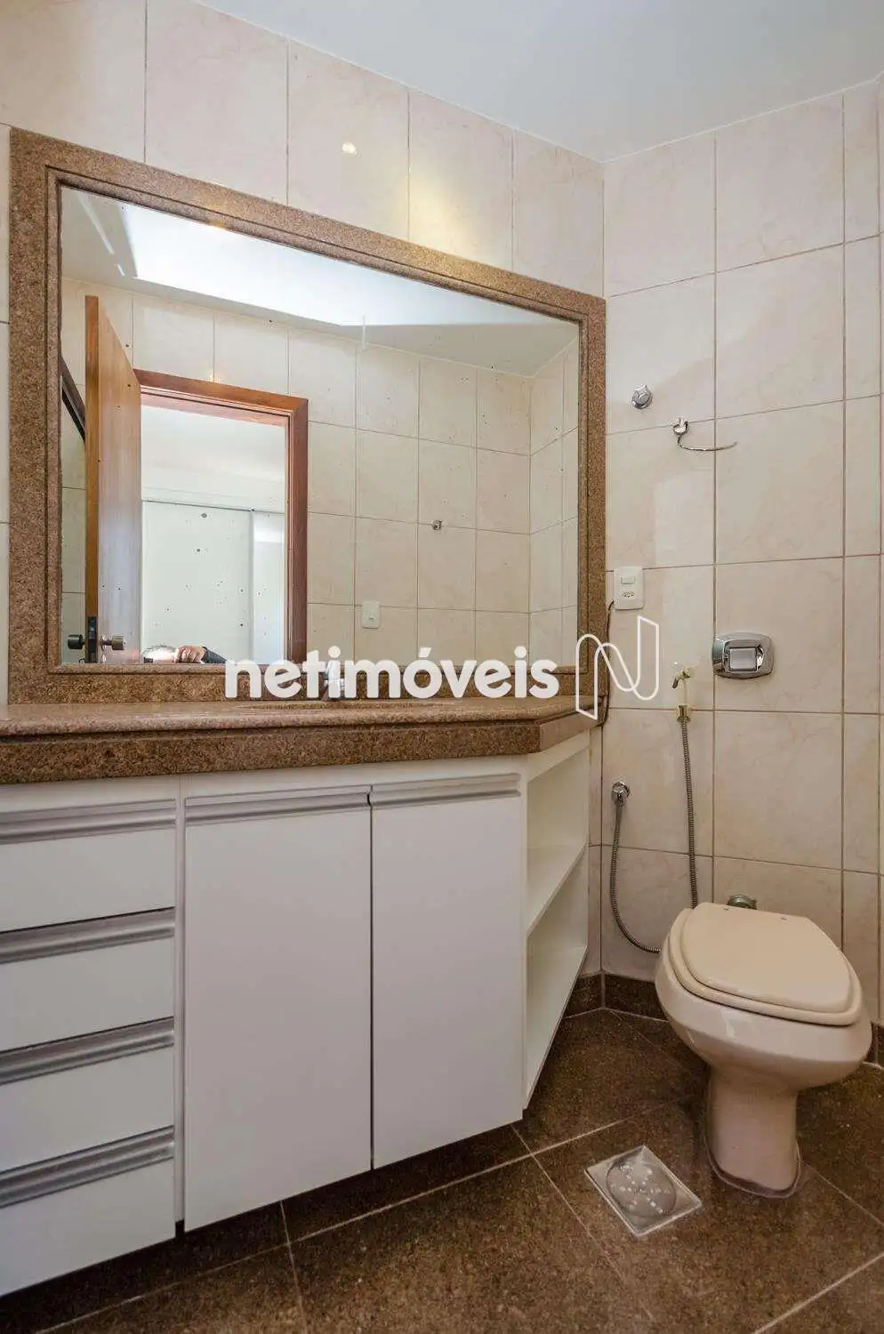 - Banhos social e suíte com as mesmas características: Bancadas em granito, box blindex espelhos.