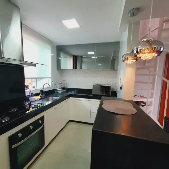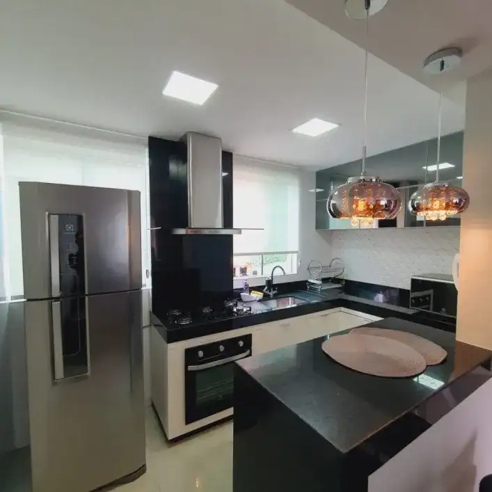 Todo o piso em porcelanato, armários na cozinha, quartos e banheiros.