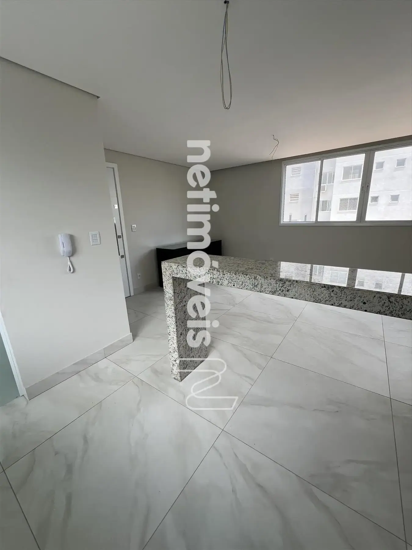 O apartamento é novo (nunca habitado) e conta com uma planta inteligente. A sala ampla para dois ambientes possui piso em porcelanato de alta qualidade. A cozinha, com bancada em granito, é funcional e prática, seguida de uma área de serviço separada.