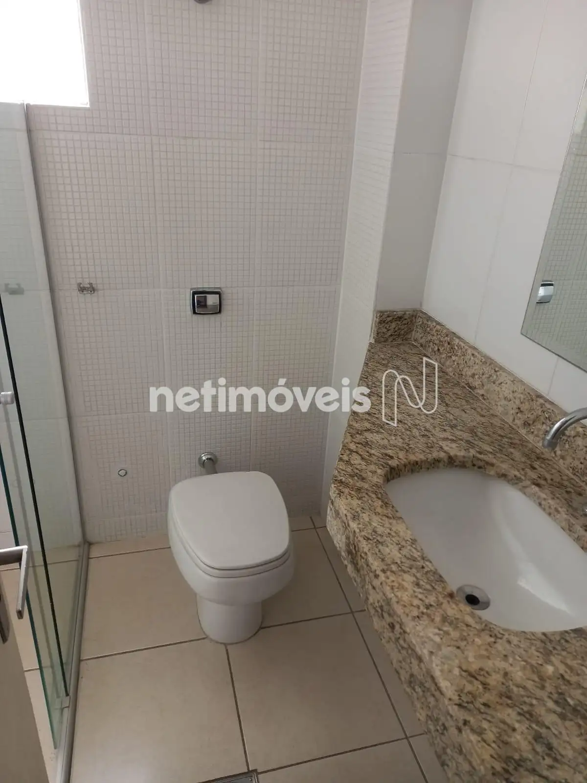 Banho social com box blindex, piso cerâmica e bancada em granito.