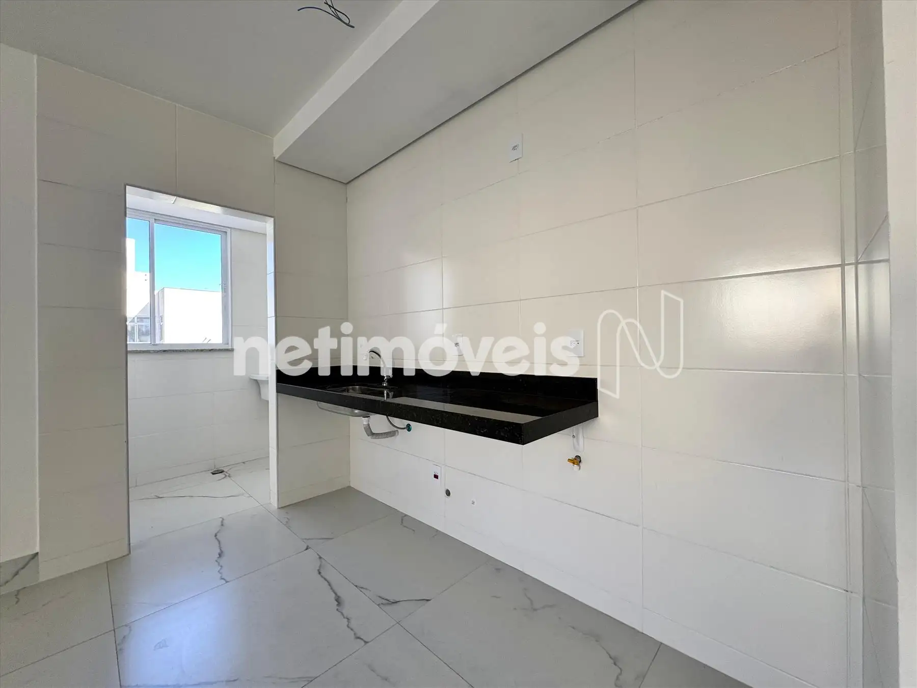 Cozinha americana clara e bem ventilada, com bancada em granito;