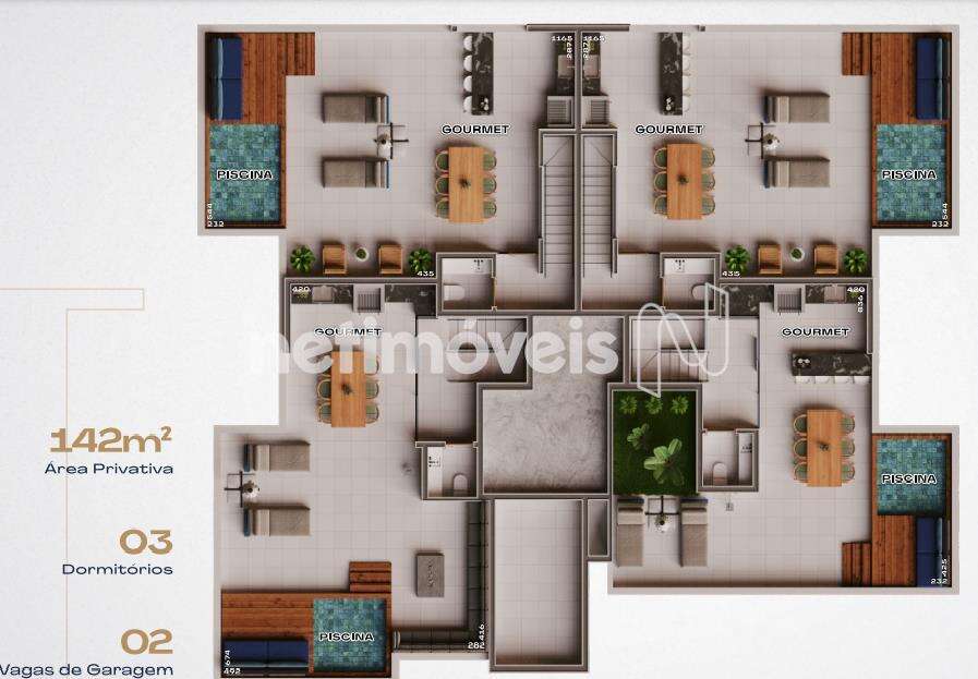 +-142m² sendo +-84m² de área útil e cobertura com +-58m², 03 ótimos quartos, sendo 01 com suíte, 01 sala para 02 ambientes, cozinha estilo americana, banho social e área de serviços.