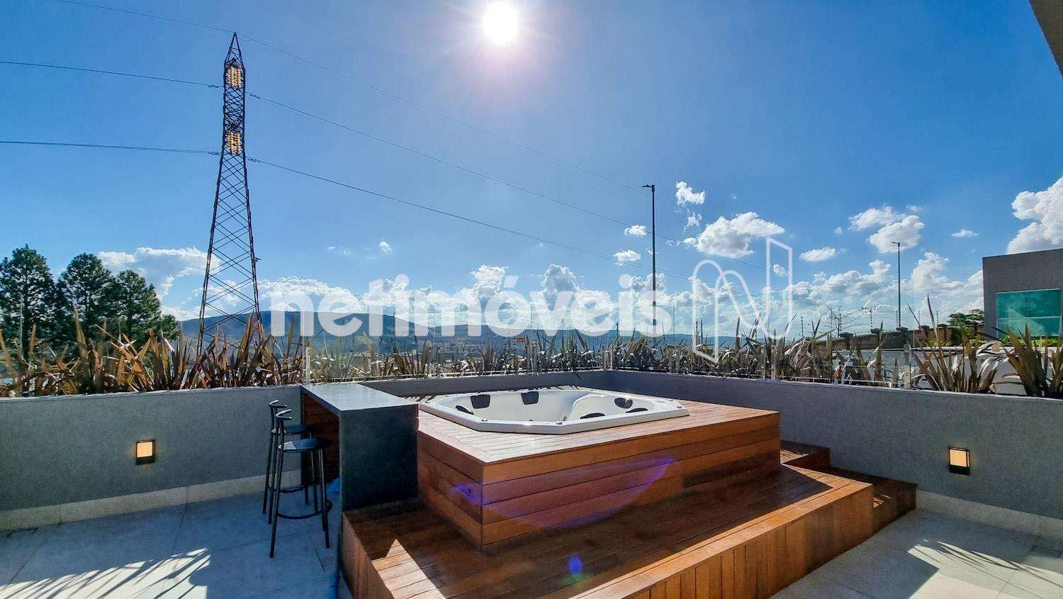 Energia foto voltáica e piscina aquecida.