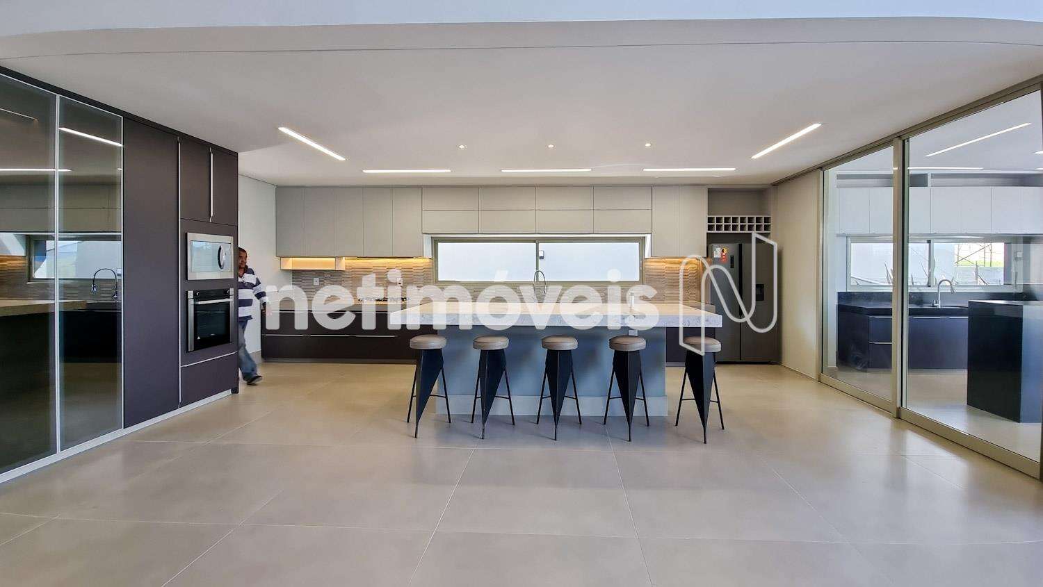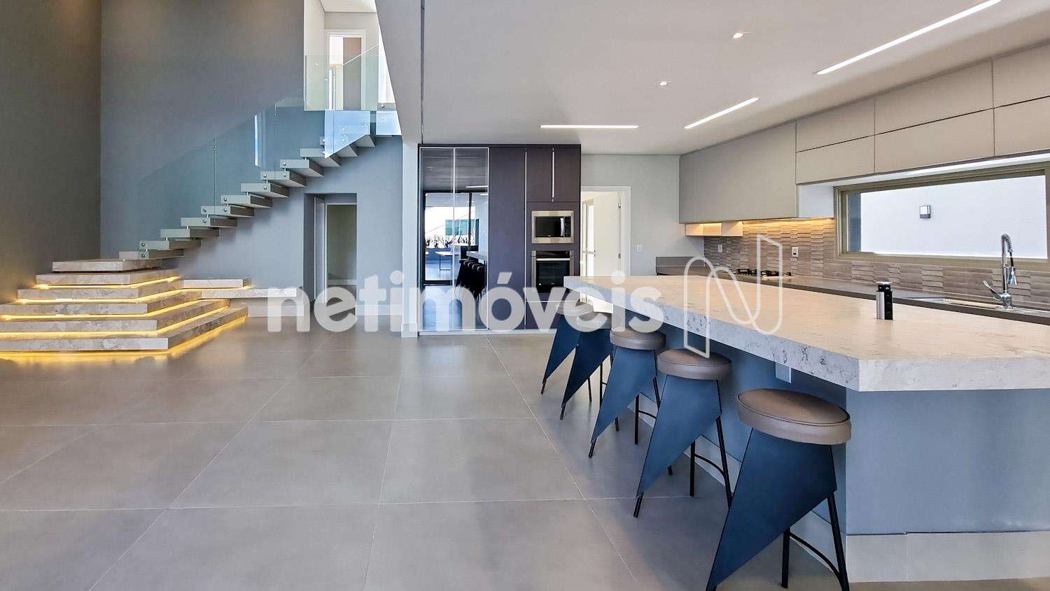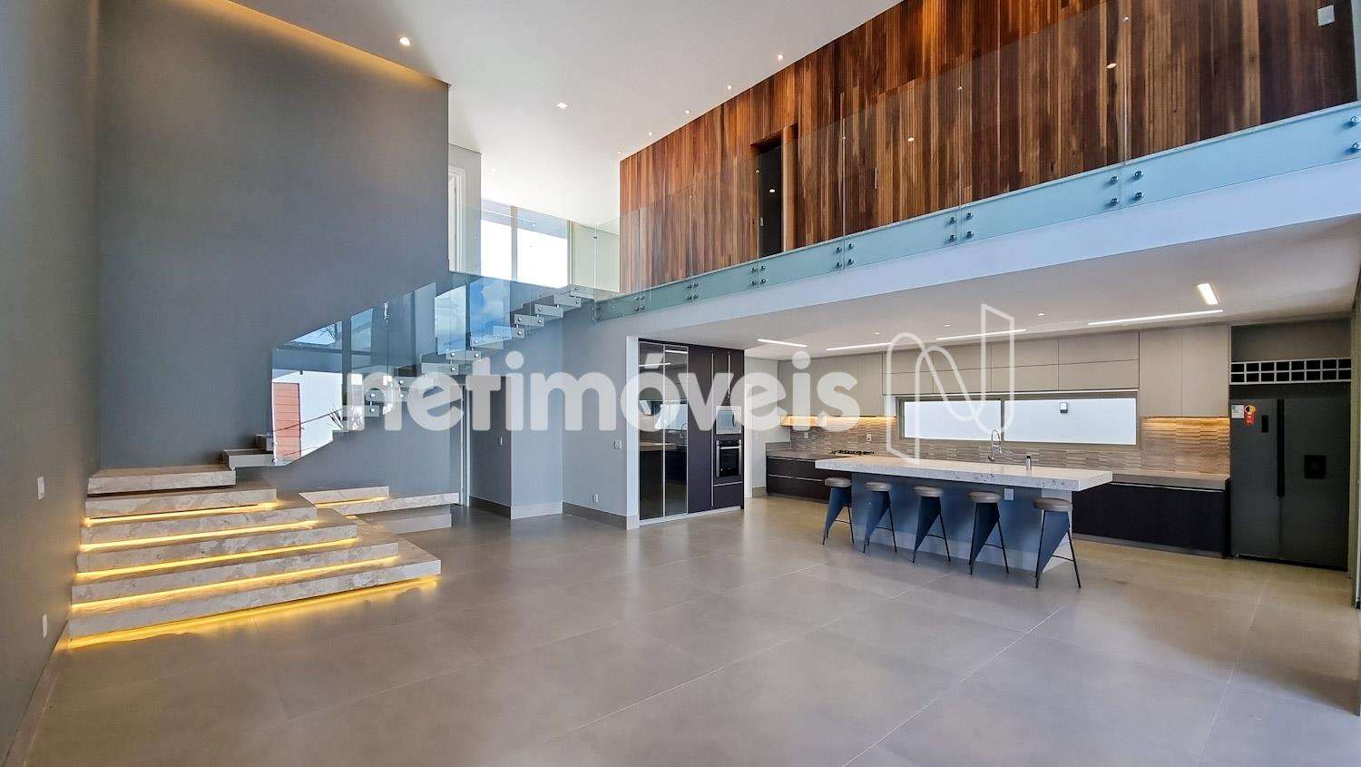 Ampla sala de estar e jantar, integrada com a cozinha;