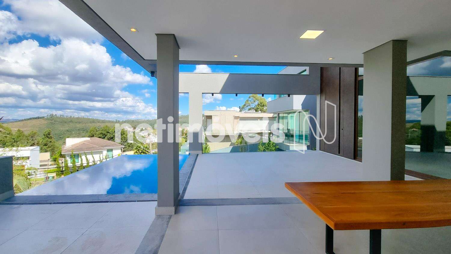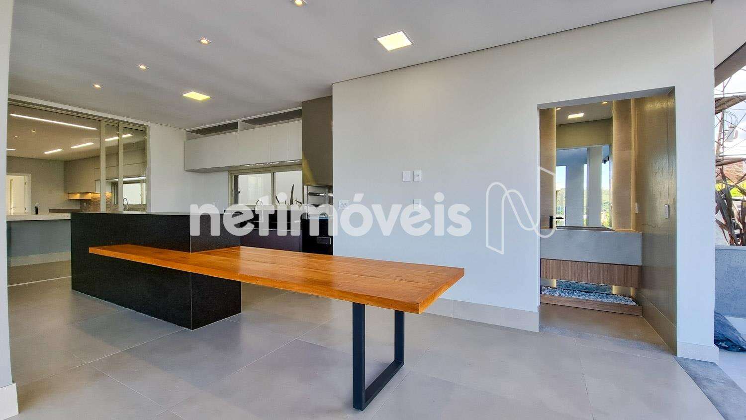 Espaço Gourmet com piscina de borda infinita e lavabo;