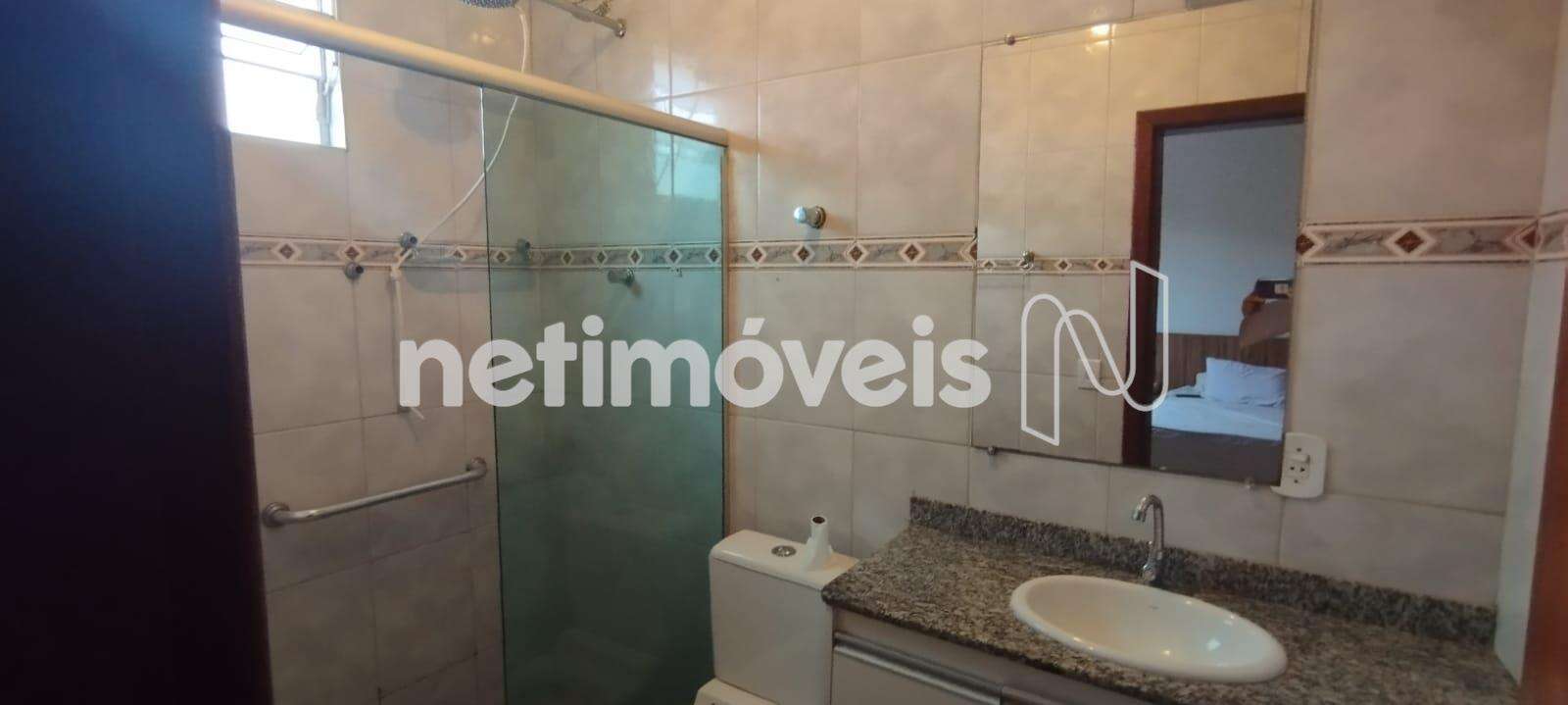 01 banheiro social e suíte com box em blindex, espelho, e armários sob bancada.