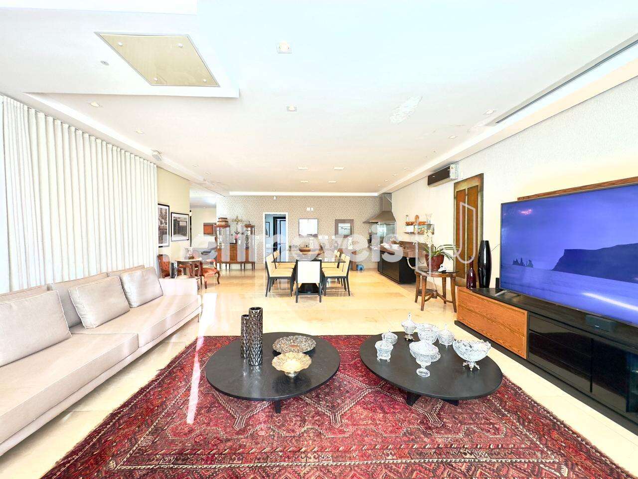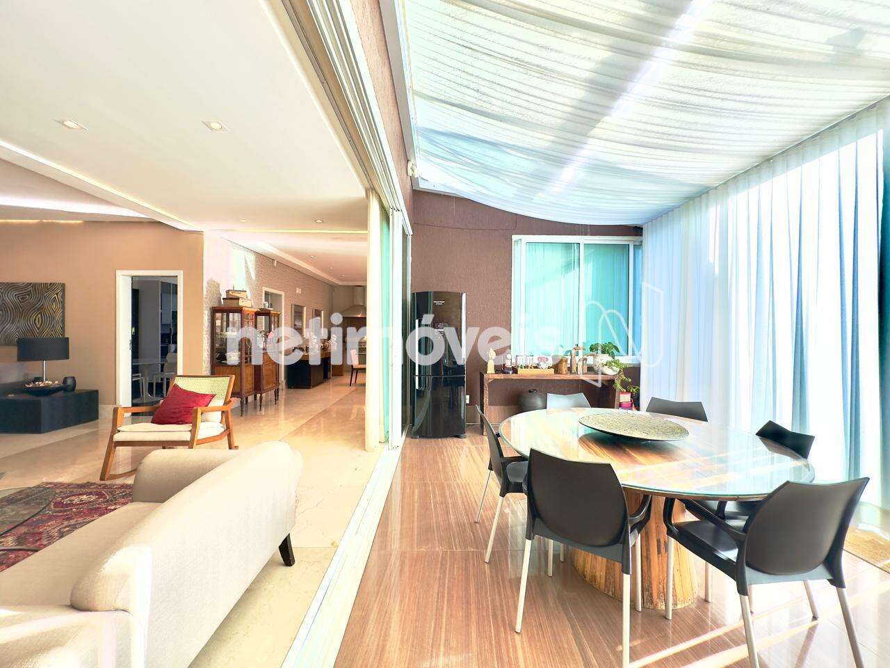Sala de estar para 06 ambientes integrados, incluindo Varanda Contemplativa, Espetacular Gourmet indoor, Home Theather, com Piso em mármore Crema Marfil, Sistema de Automação e Ar Condicionado. Charmoso Lavabo e 01 Suíte Térrea.