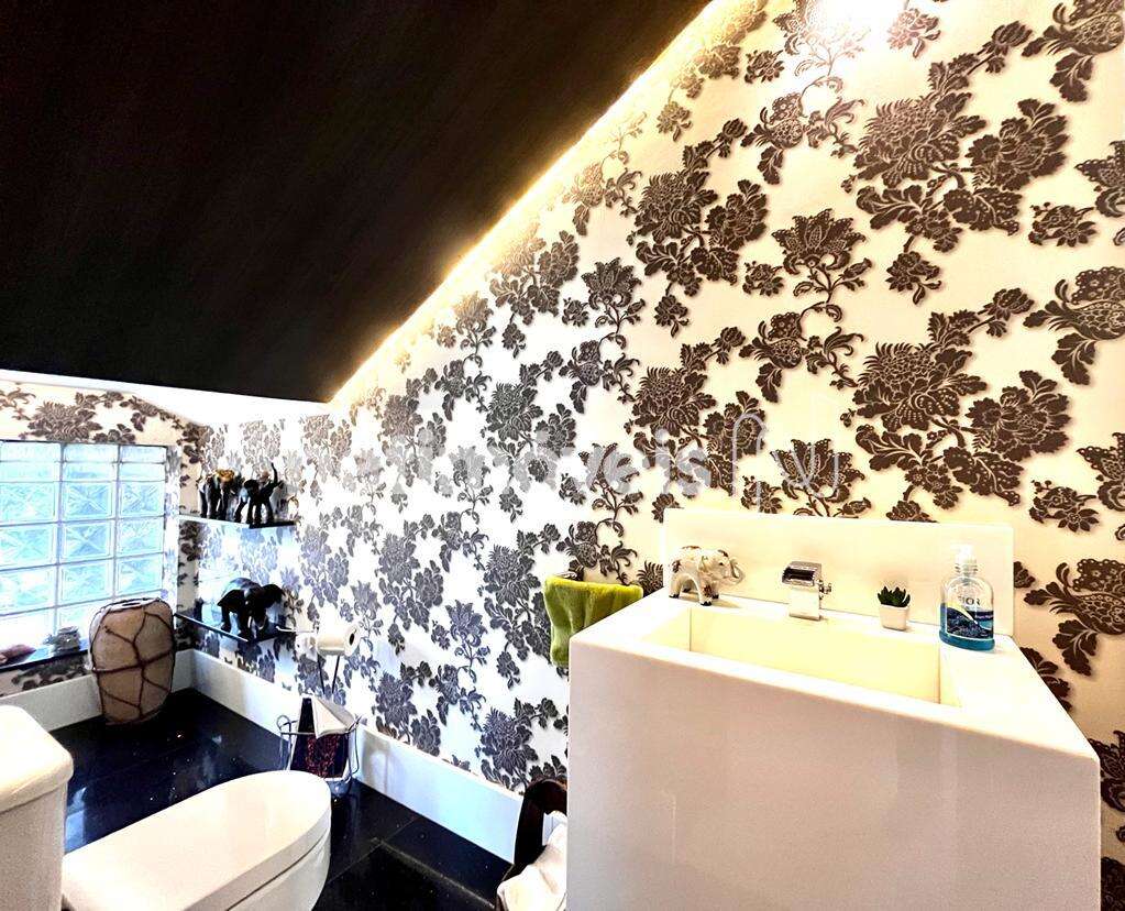 No Piso Superior temos 4 quartos, sendo 02 suítes com closet ( a máster com banho em mármore / banheira de hidromassagem) e 02 semi suítes, todas com venezianas automatizadas e ar condicionado. Confortável Estar Intimo, Varandão panorâmico e Rouparia.