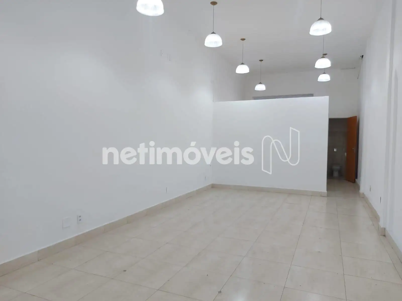 66,58 metros quadrados sendo. Salão aberto com pé direito duplo. Divisória com mais uma sala. Um lavabo. Área aberta para cozinha e mais uma área de tanque com mais um banheiro. Piso em cerâmica clara. Fechamento em blindex e 2 portas de aço.
