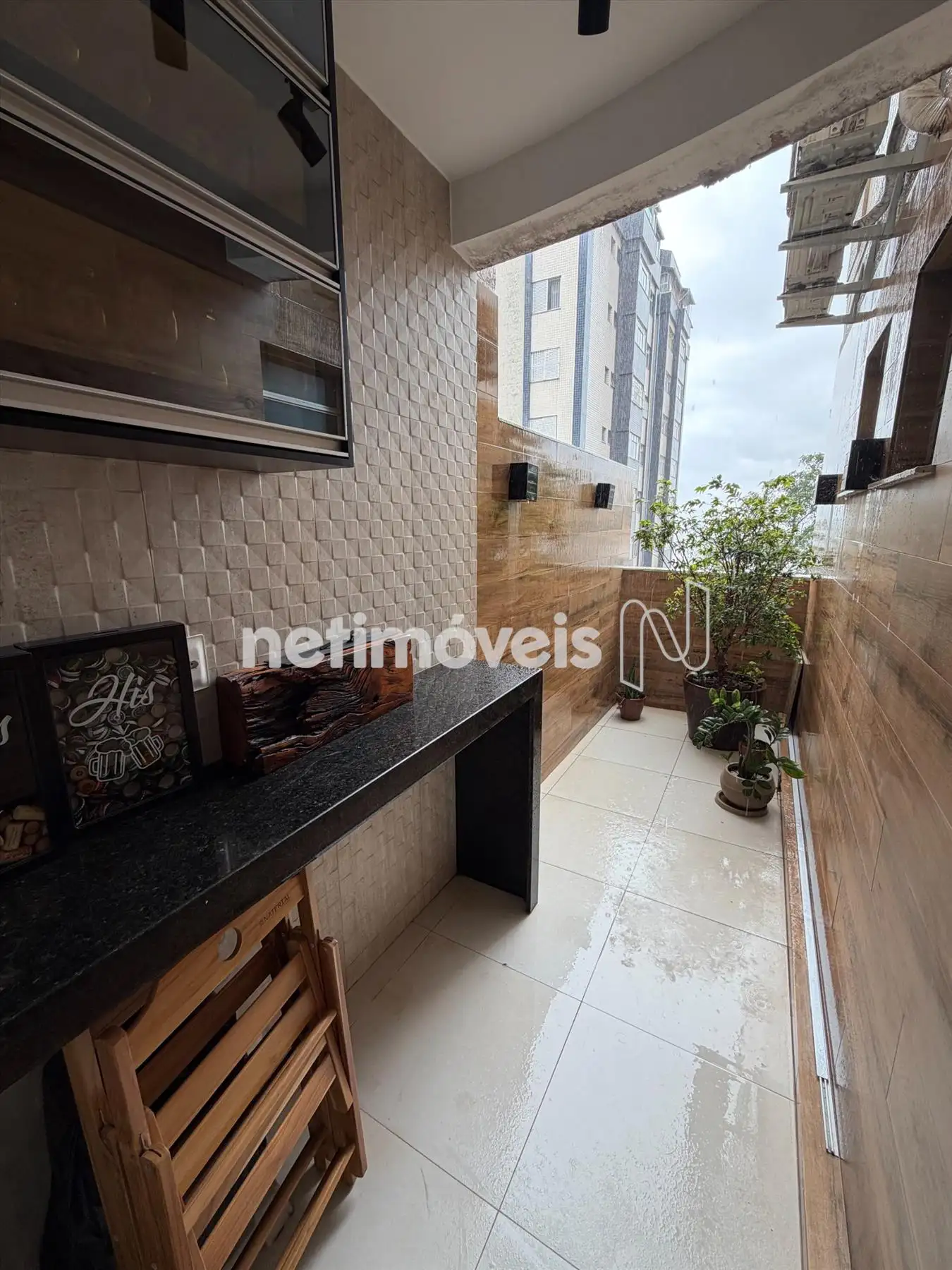 - Área privativa com piso em porcelanato, bancada em granito e armário planejado