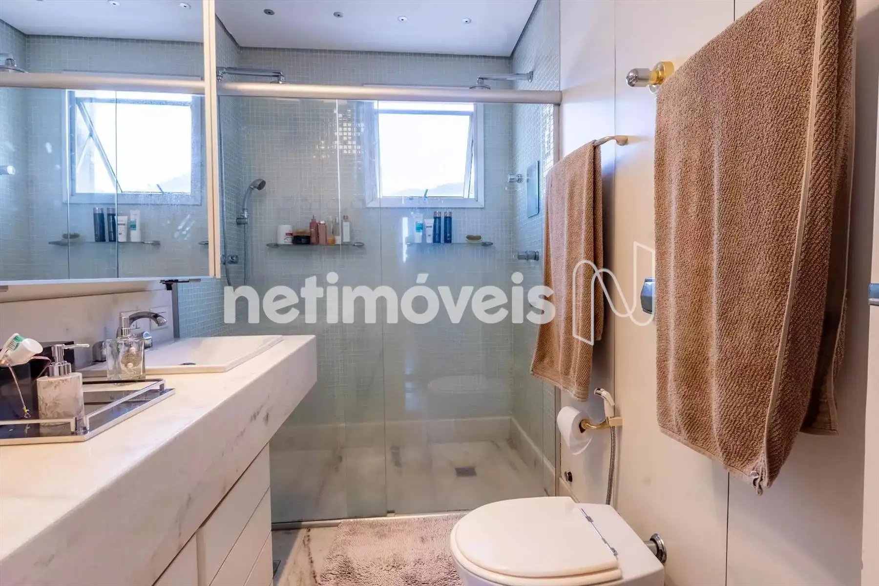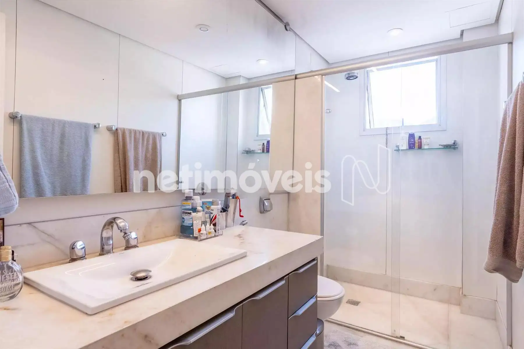 3 quartos, sendo 1 suíte master com dois closets e banho com cuba e chuveiro duplos