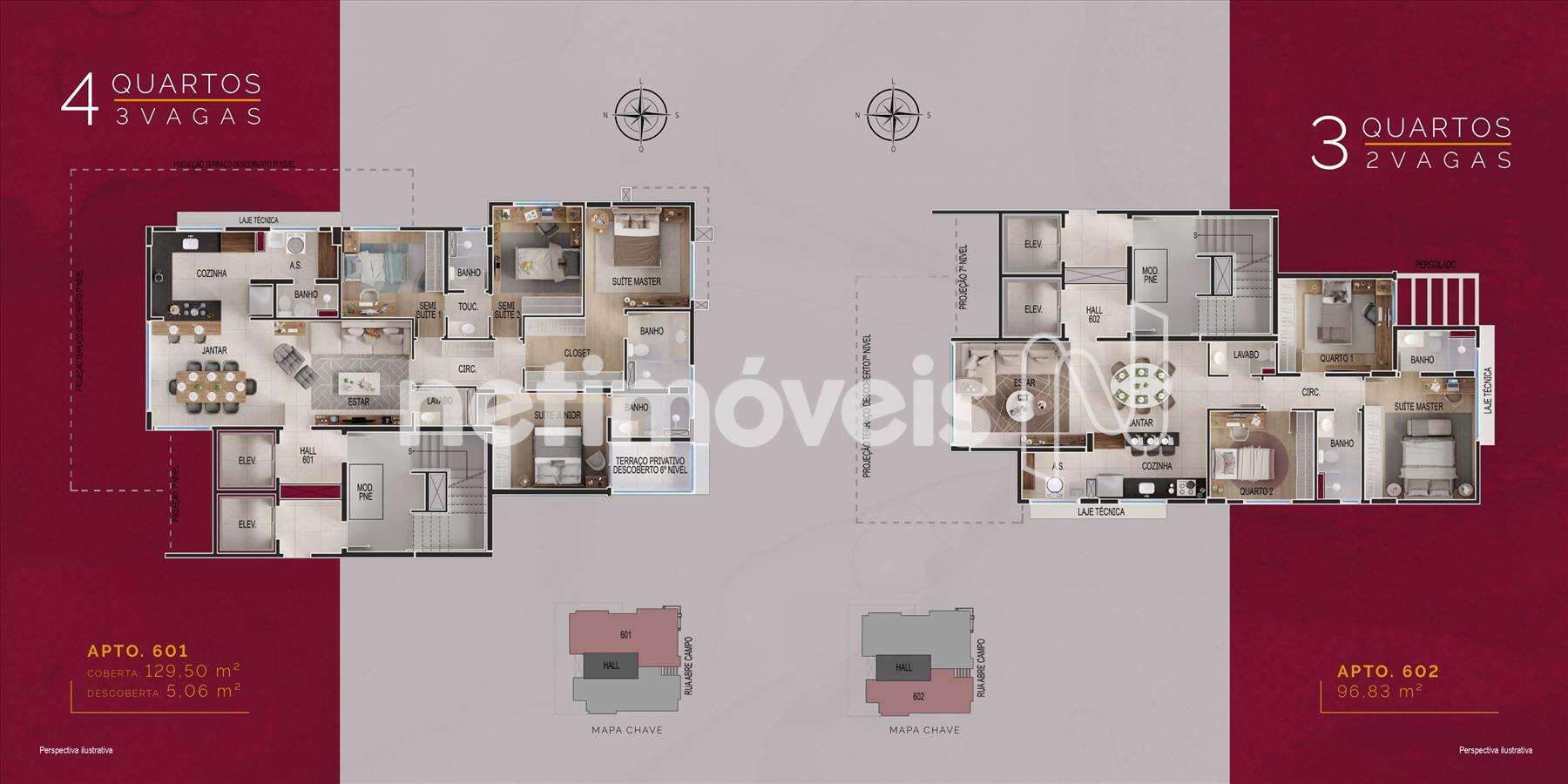 1.080 m² de área total do terreno, 11 pavimentos, 2 unidades por andar com hall individual, 17 unidades no total, 9 unidades de 4 quartos, 8 unidades de 3 quartos, 2 coberturas, 2 elevadores sociais.