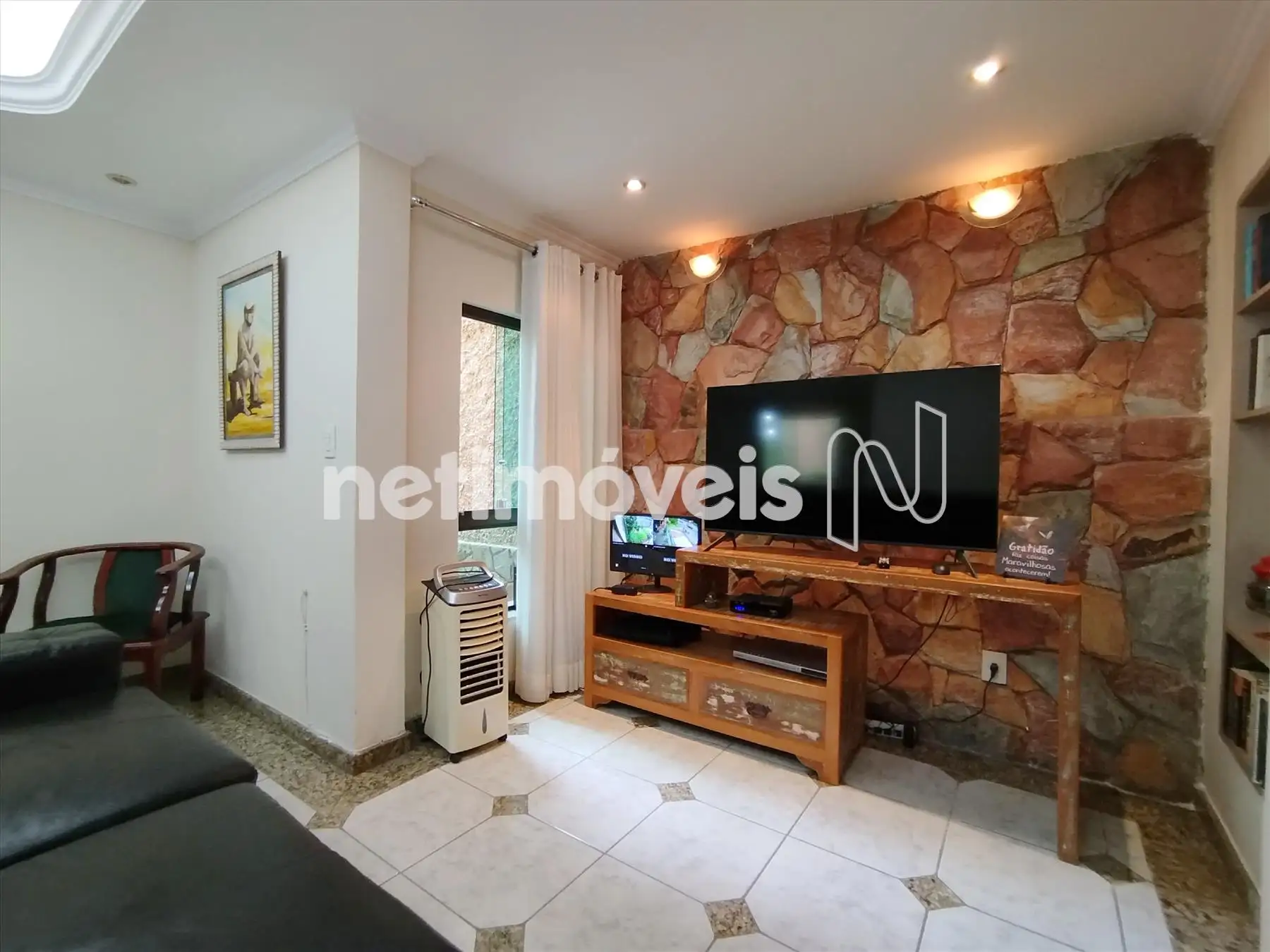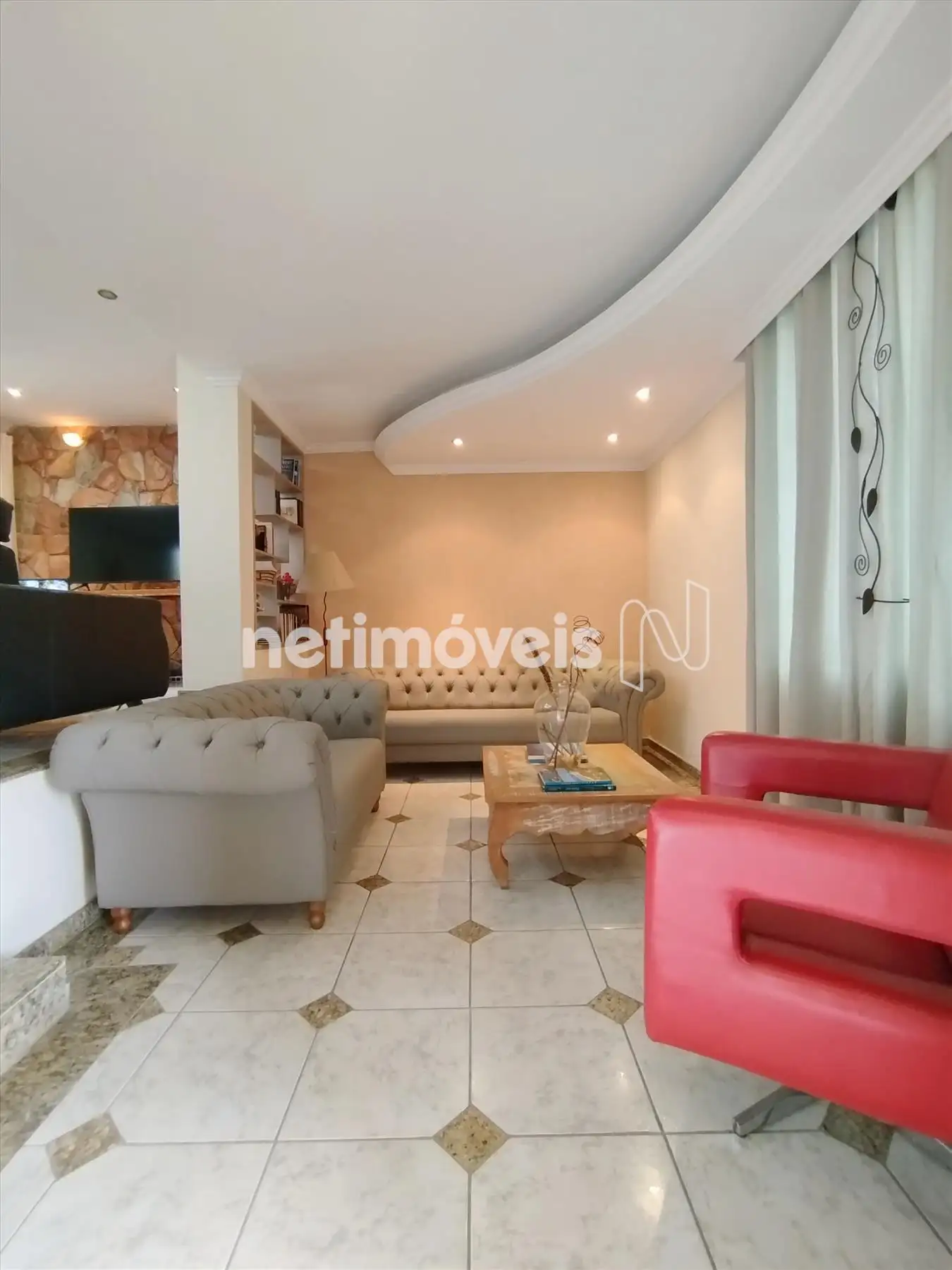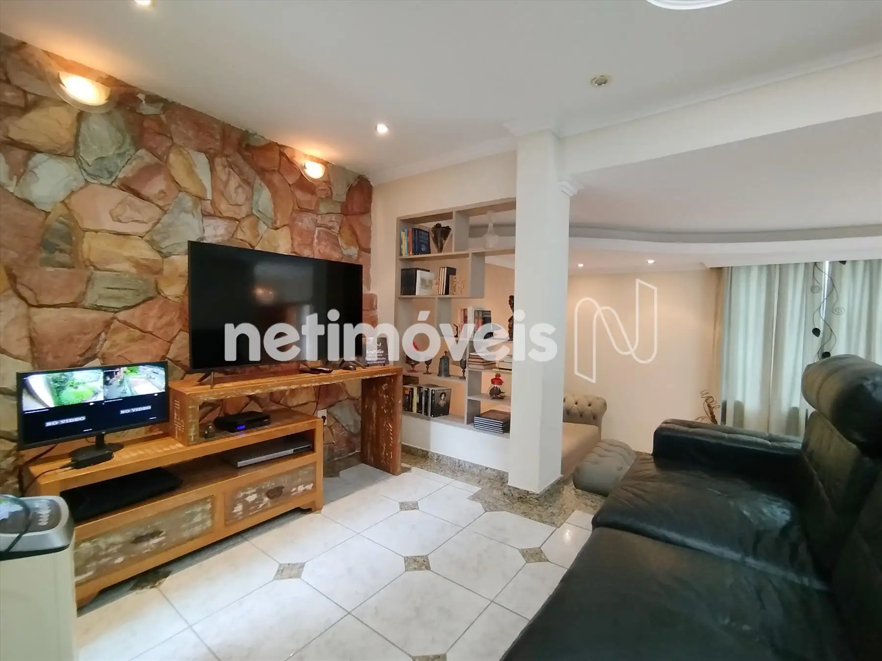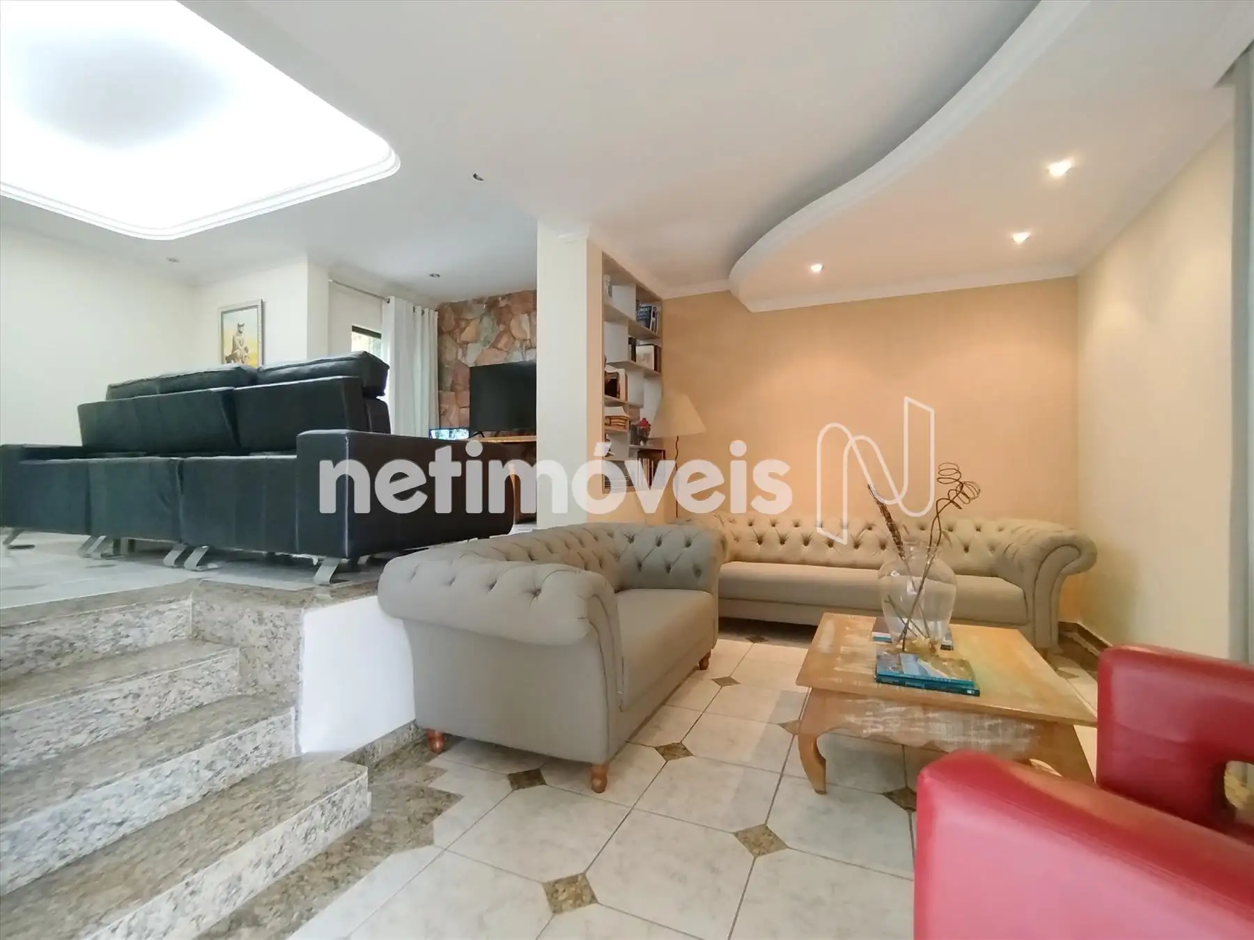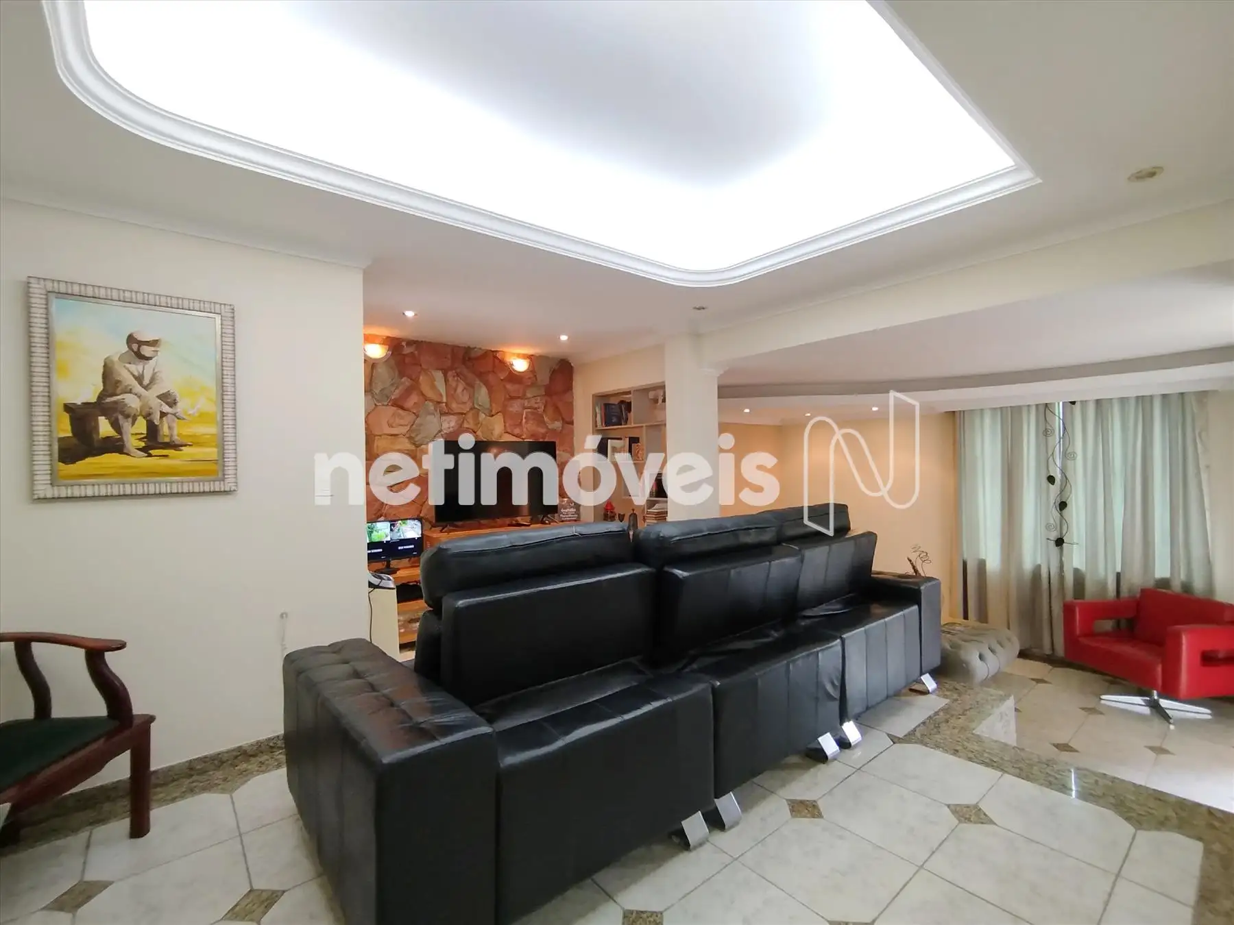 Sala de TV, ambas com teto rebaixado e iluminação embutida,