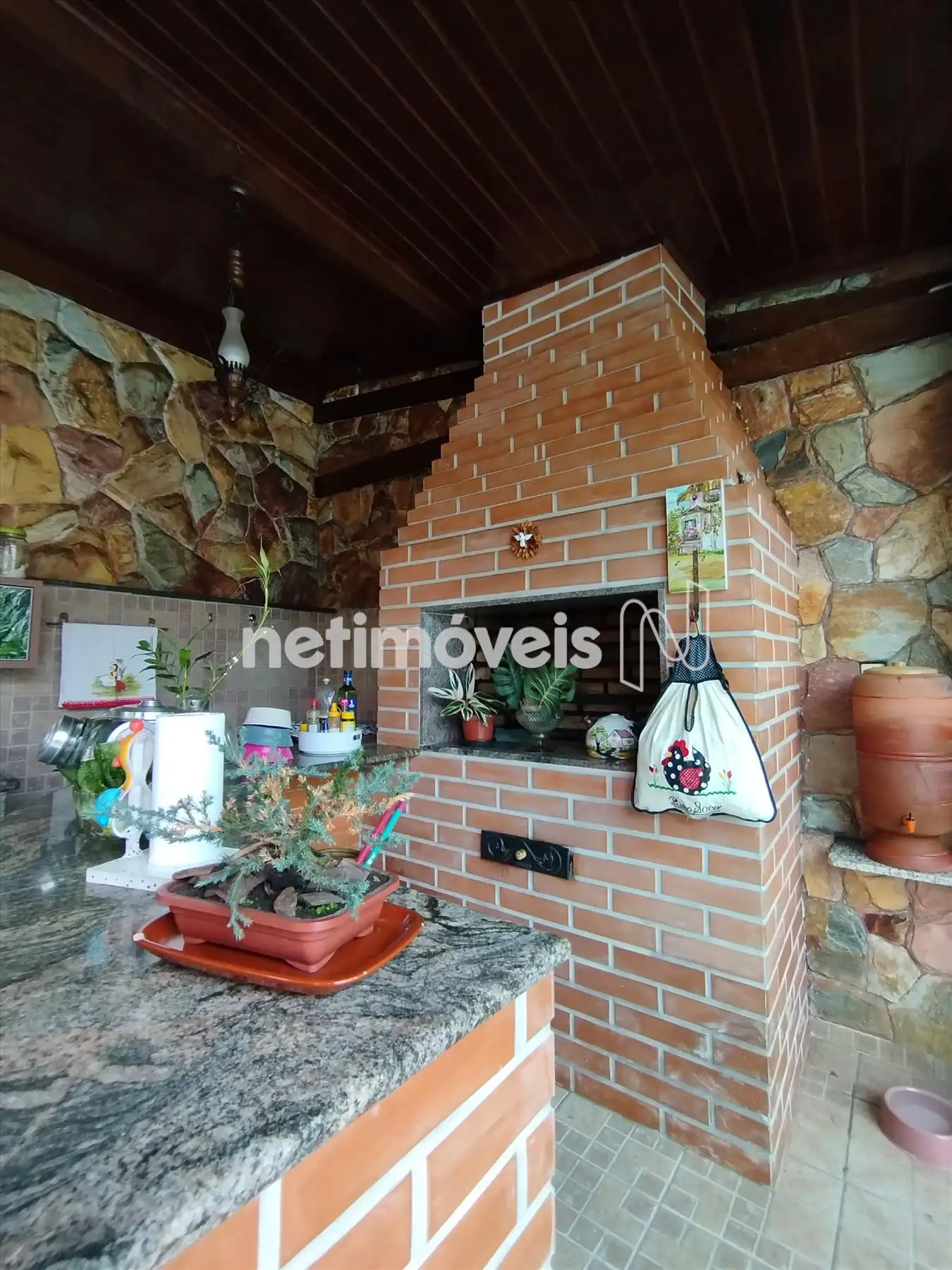 bancada em granito e Churrasqueira.