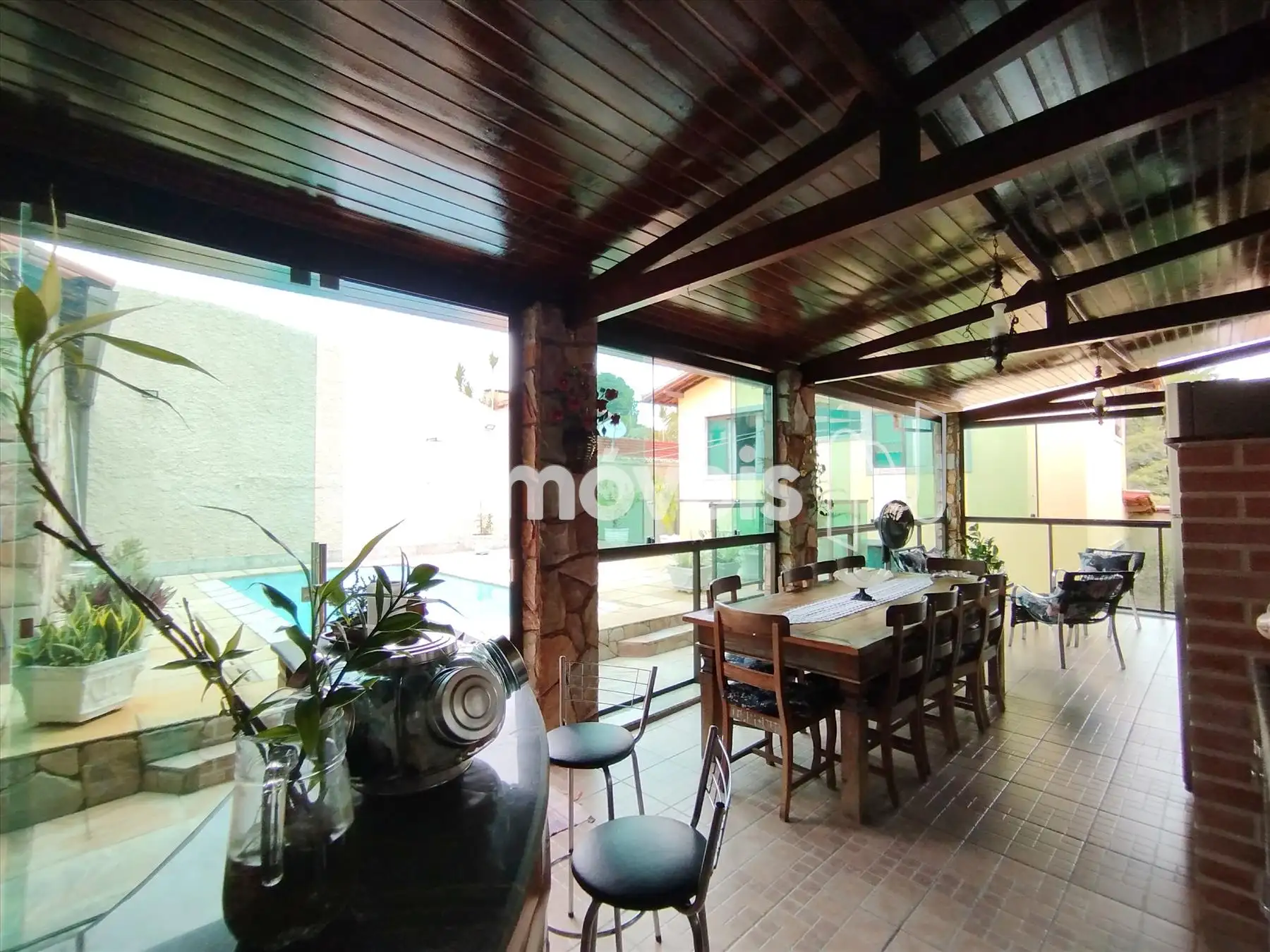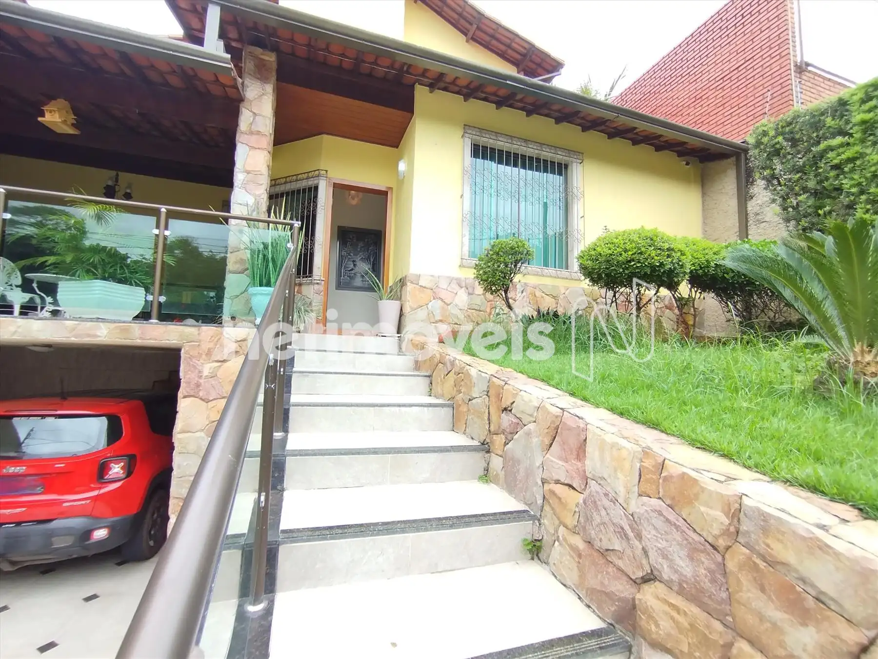 A casa possui um varandão de frente prá rua e garagem para até 5 carros.