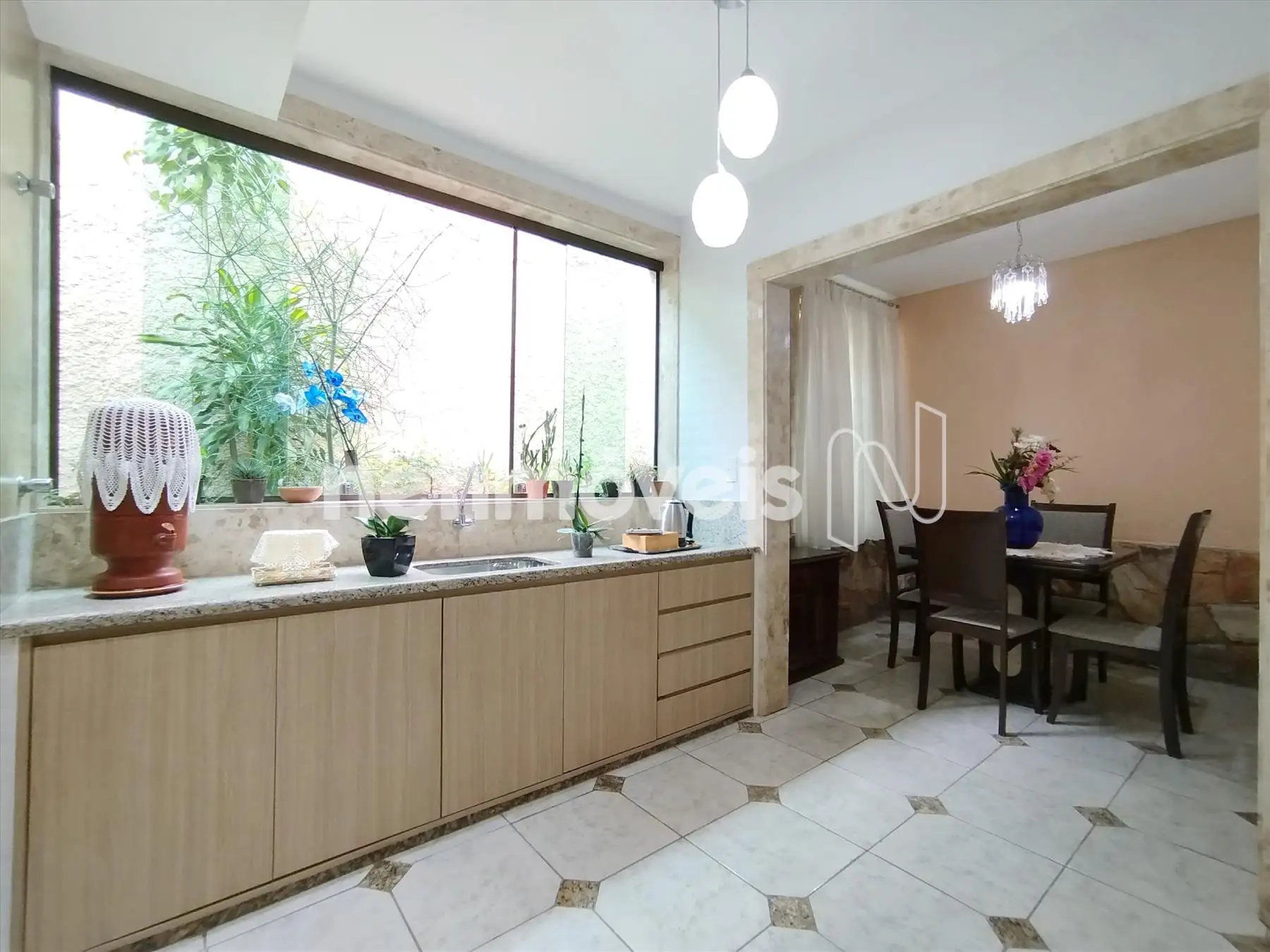 Cozinha completa, ampla, com janelões em blindex,